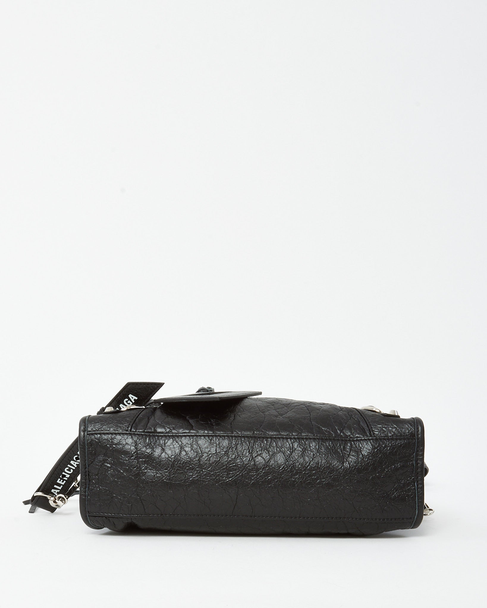 Black Arena Lambskin Leather Small Motorcycle City Bag with Logo Strap