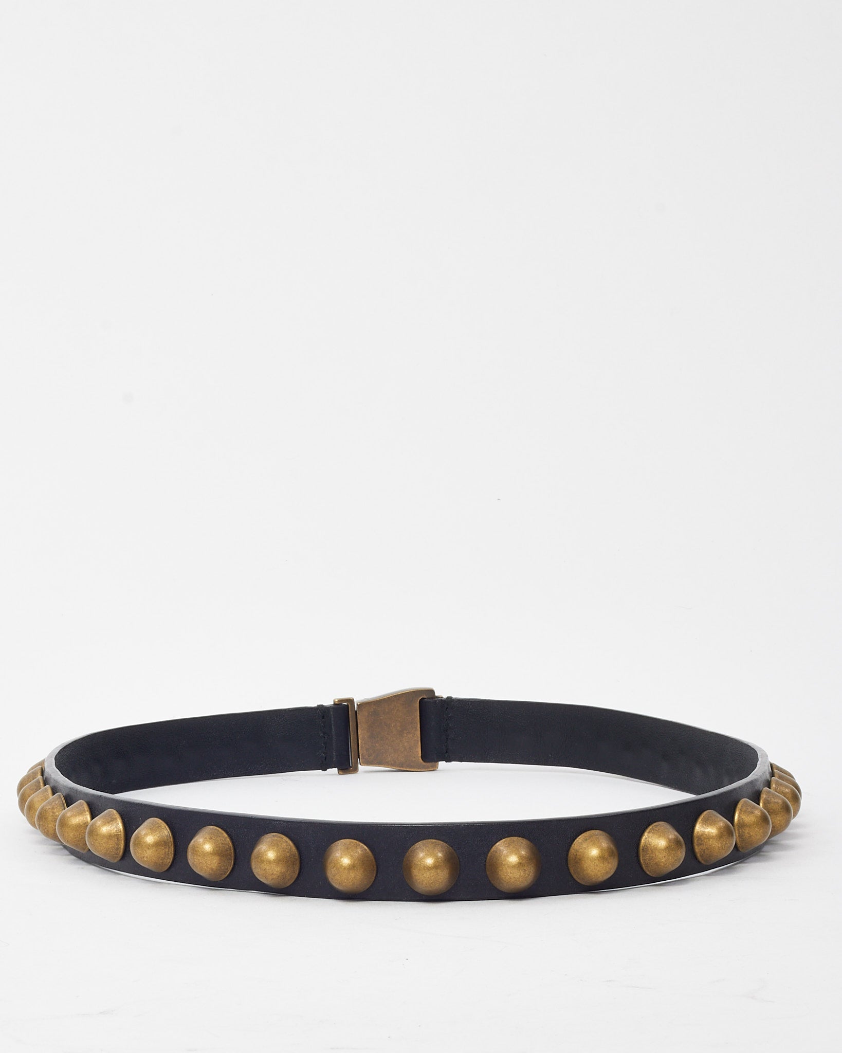 Black Leather Brushed Gold Studded Belt - 70/28