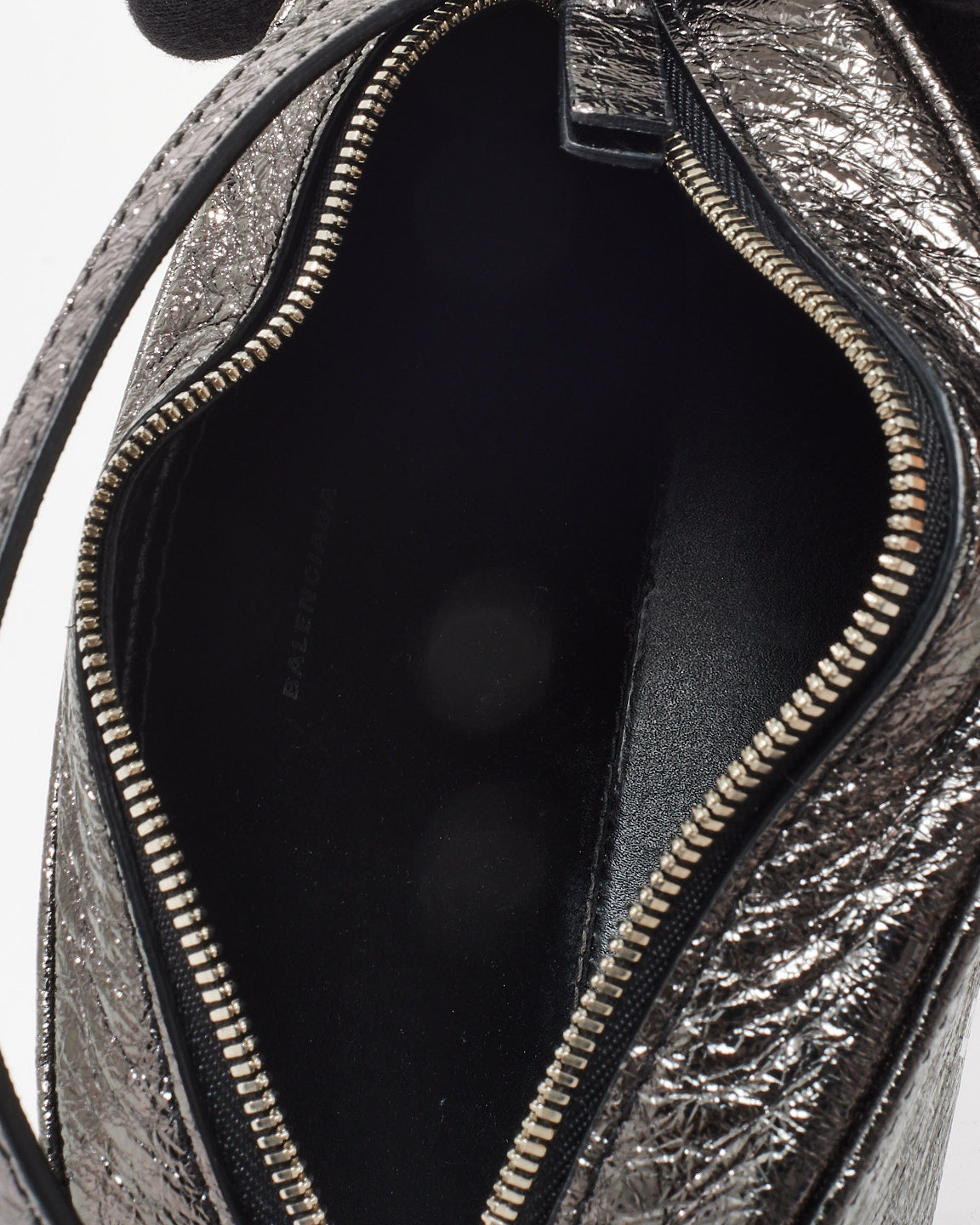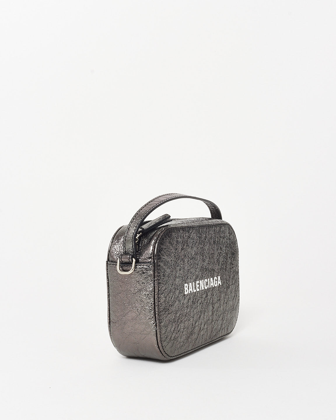 Black Metallic Textured Calfskin Leather Everyday XS Camera Bag