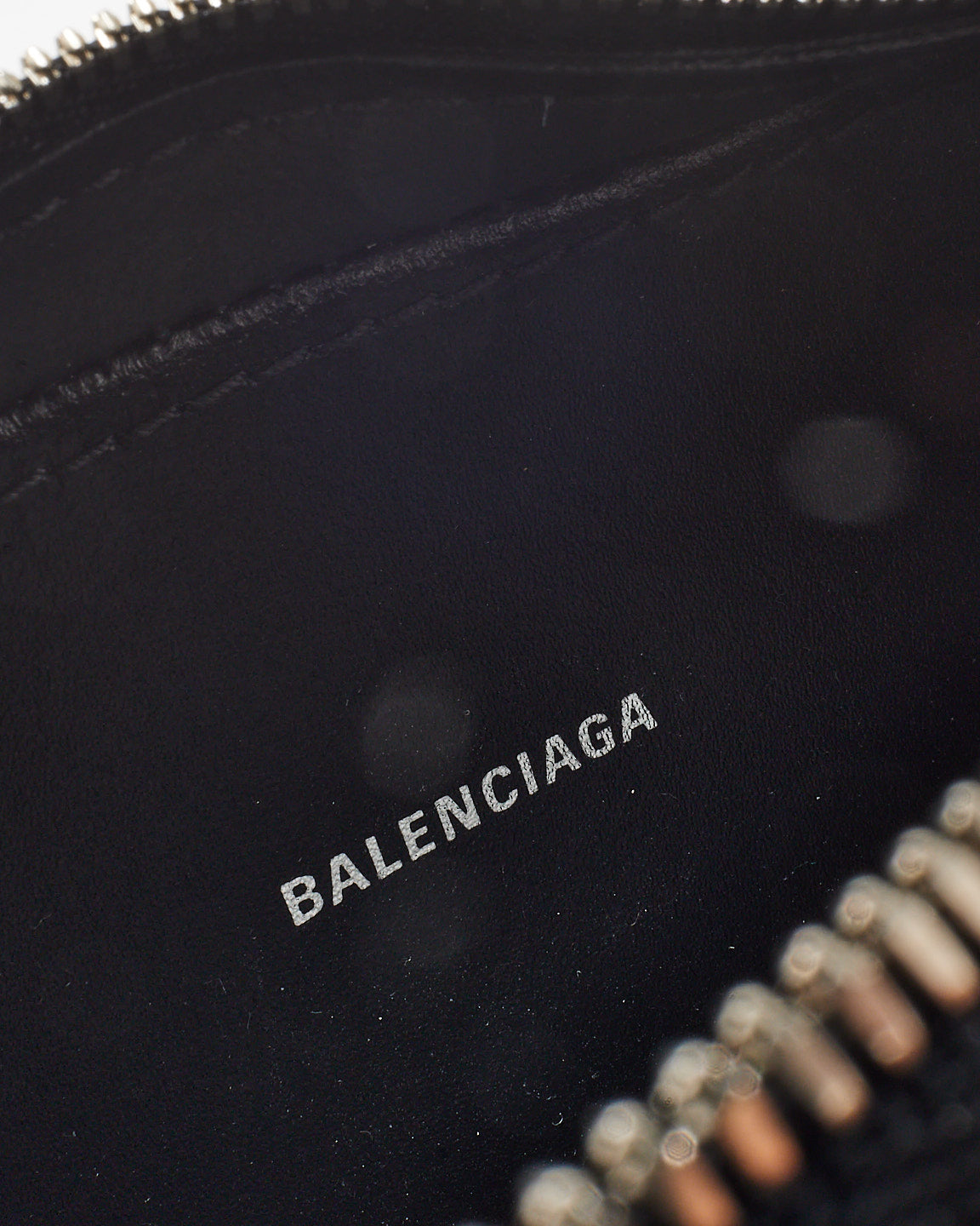 The contrasting white Balenciaga logo print on the front delivers bold brand recognition, while the adjustable leather crossbody strap ensures versatile and comfortable wear. The zip-top closure secures the spacious interior, making it perfect for carrying essentials while maintaining a lightweight feel.