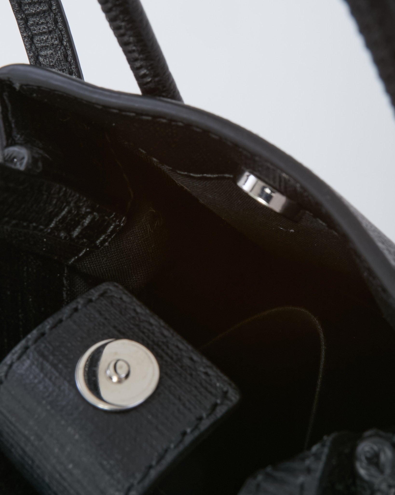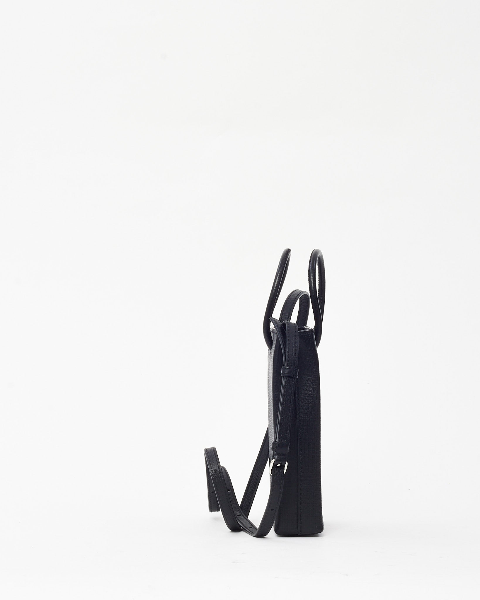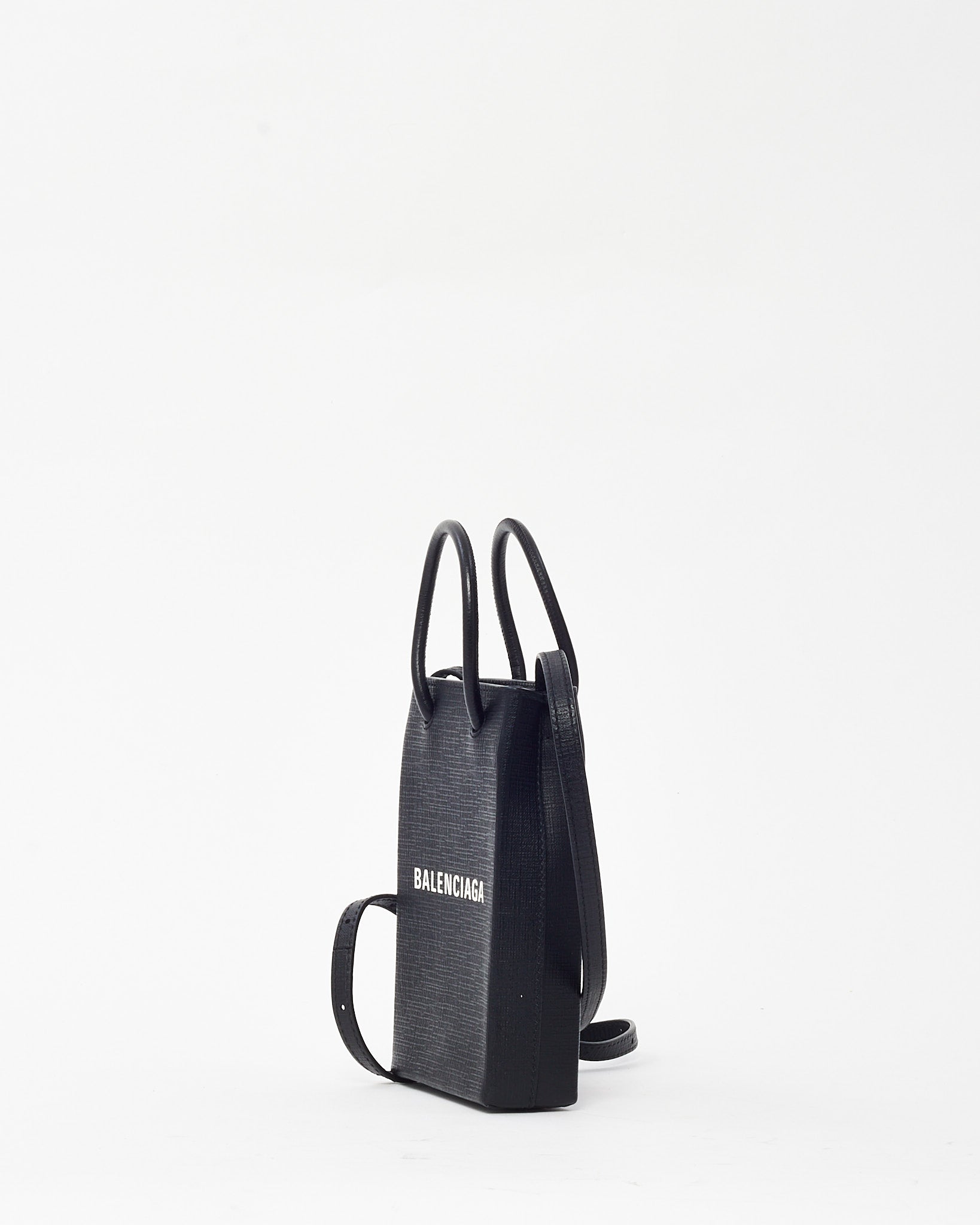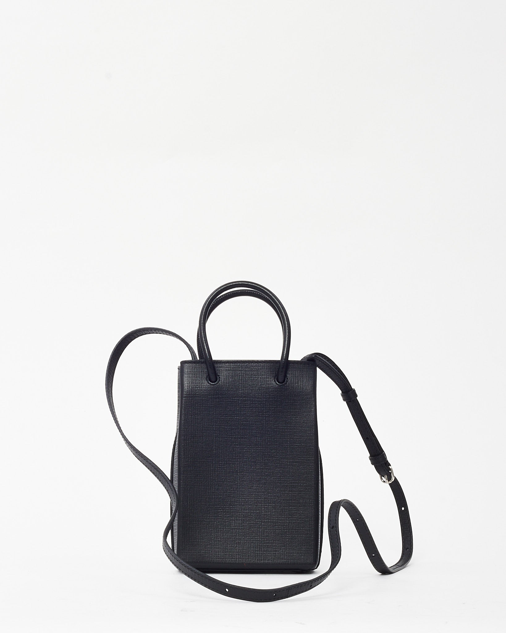 Black Textured Leather Logo-Print Mini Shopping Phone Case Crossbody Bag