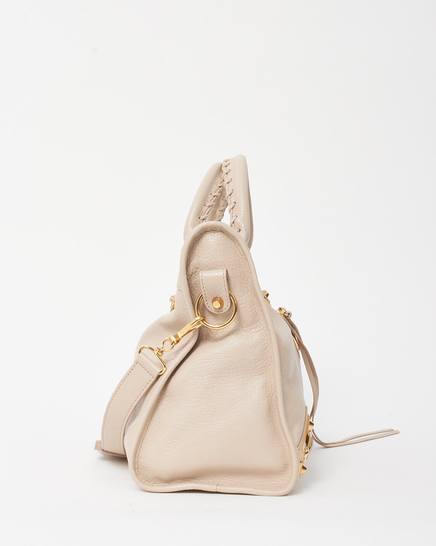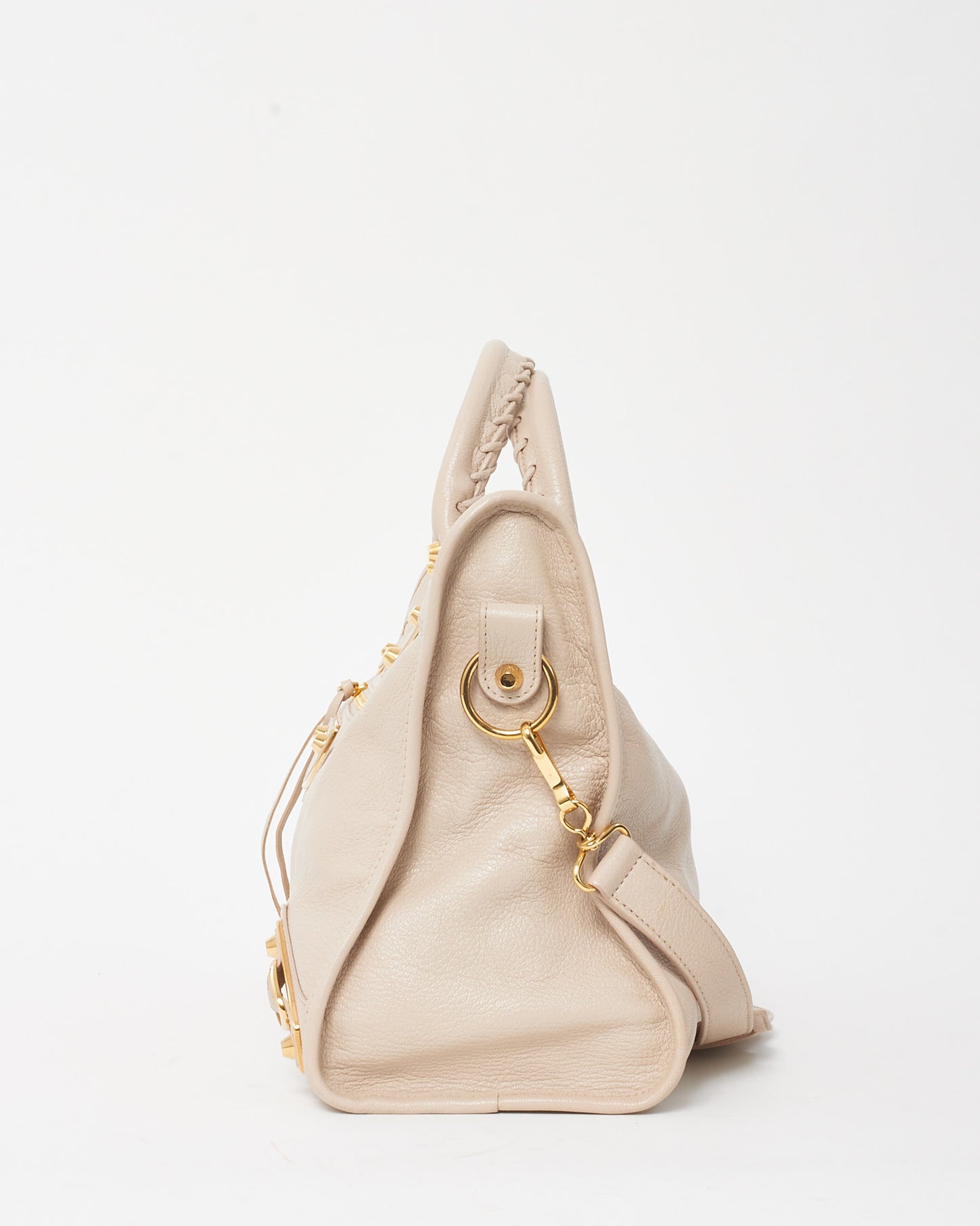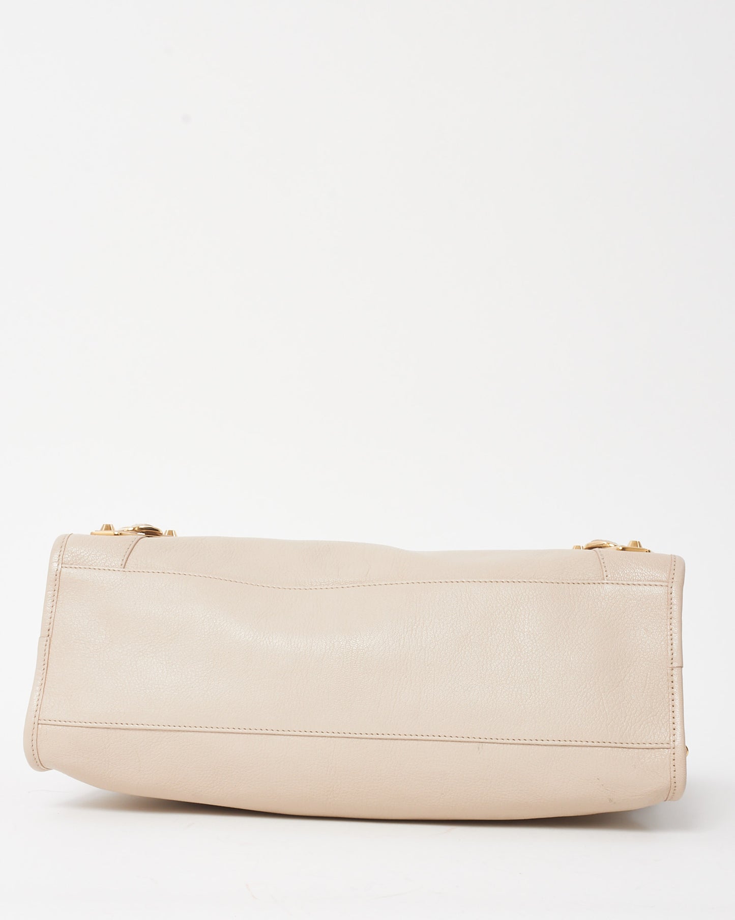Blush Pink Beige Praline Leather Gold Metallic Edge Moto City Bag