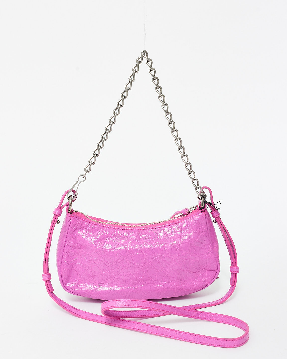 Explore Balenciaga's exquisite collection of handbags, featuring this certified pre-owned Fuchsia (Lipstick Pink) Leather Le Cagole Mini Shoulder Bag. Embodying timeless elegance and modern sustainability, each piece, including favorites like this, is authenticated by Retyche. Discover sustainable luxury — shop our current treasures or find inspiration for your next coveted find.