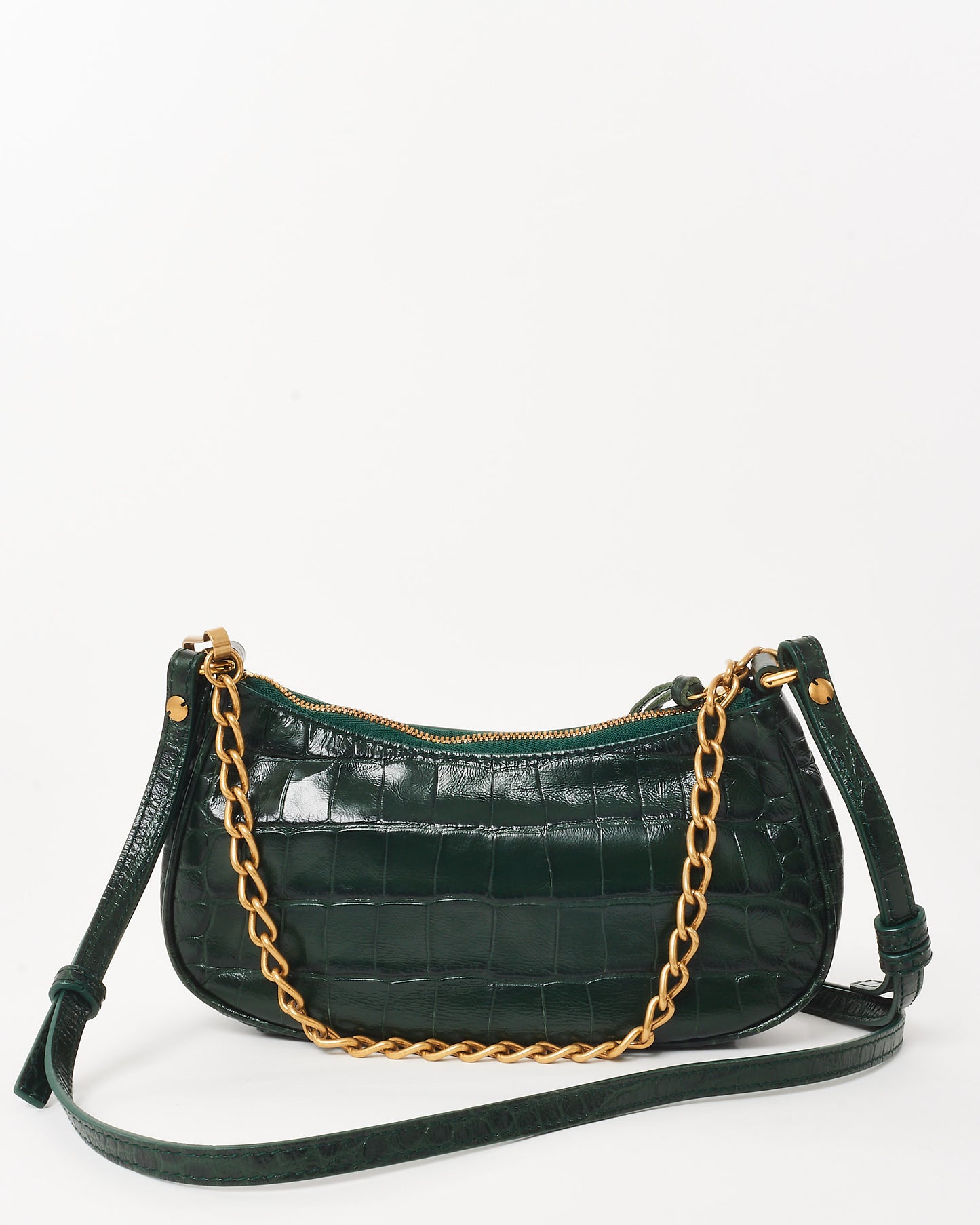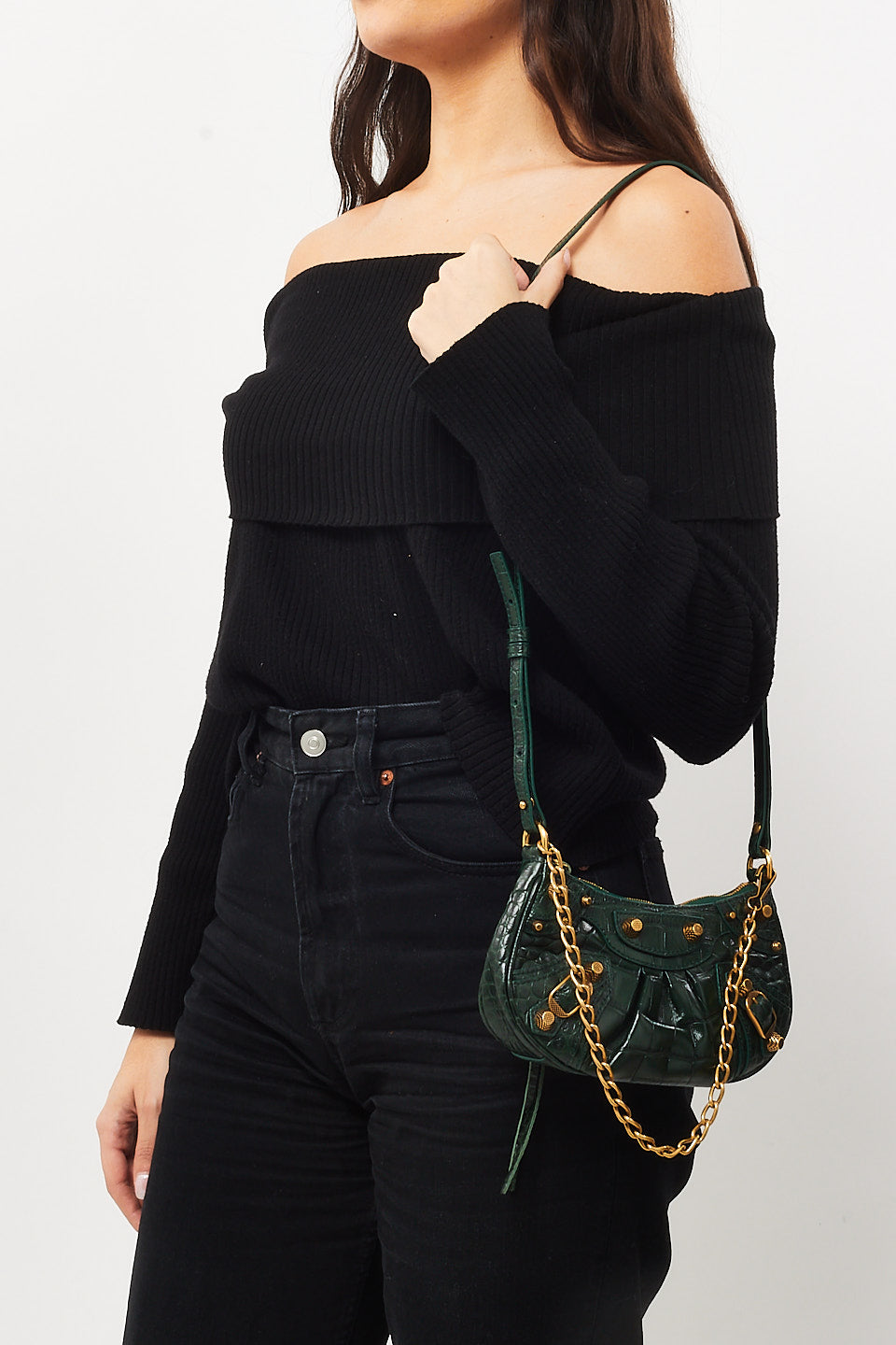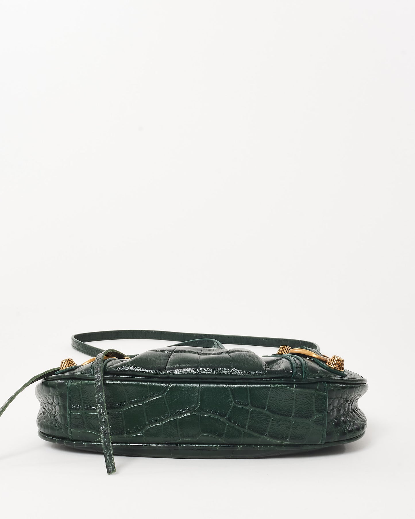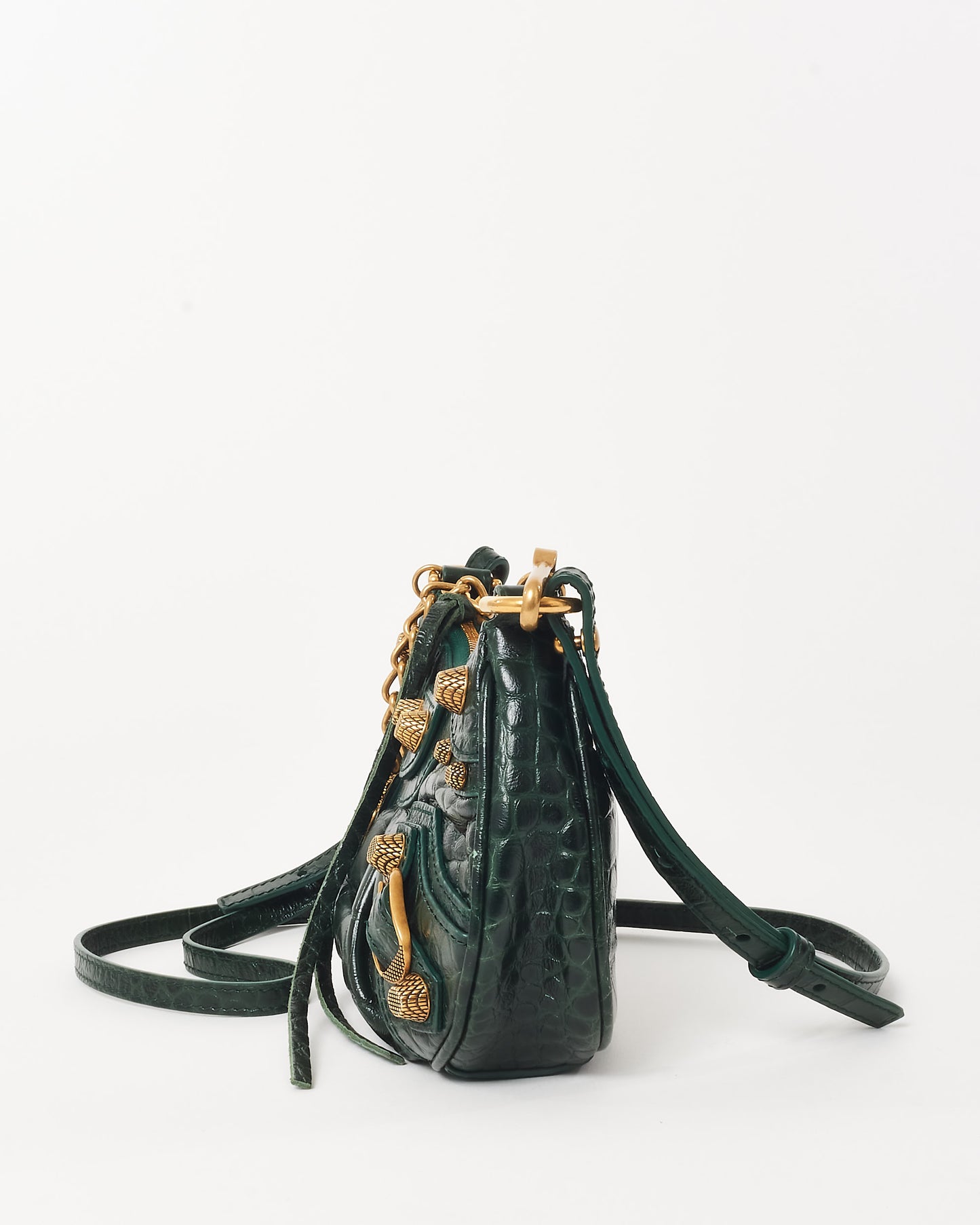 Green Croc Embossed Leather Le Cagole Mini Bag with Chain and Strap