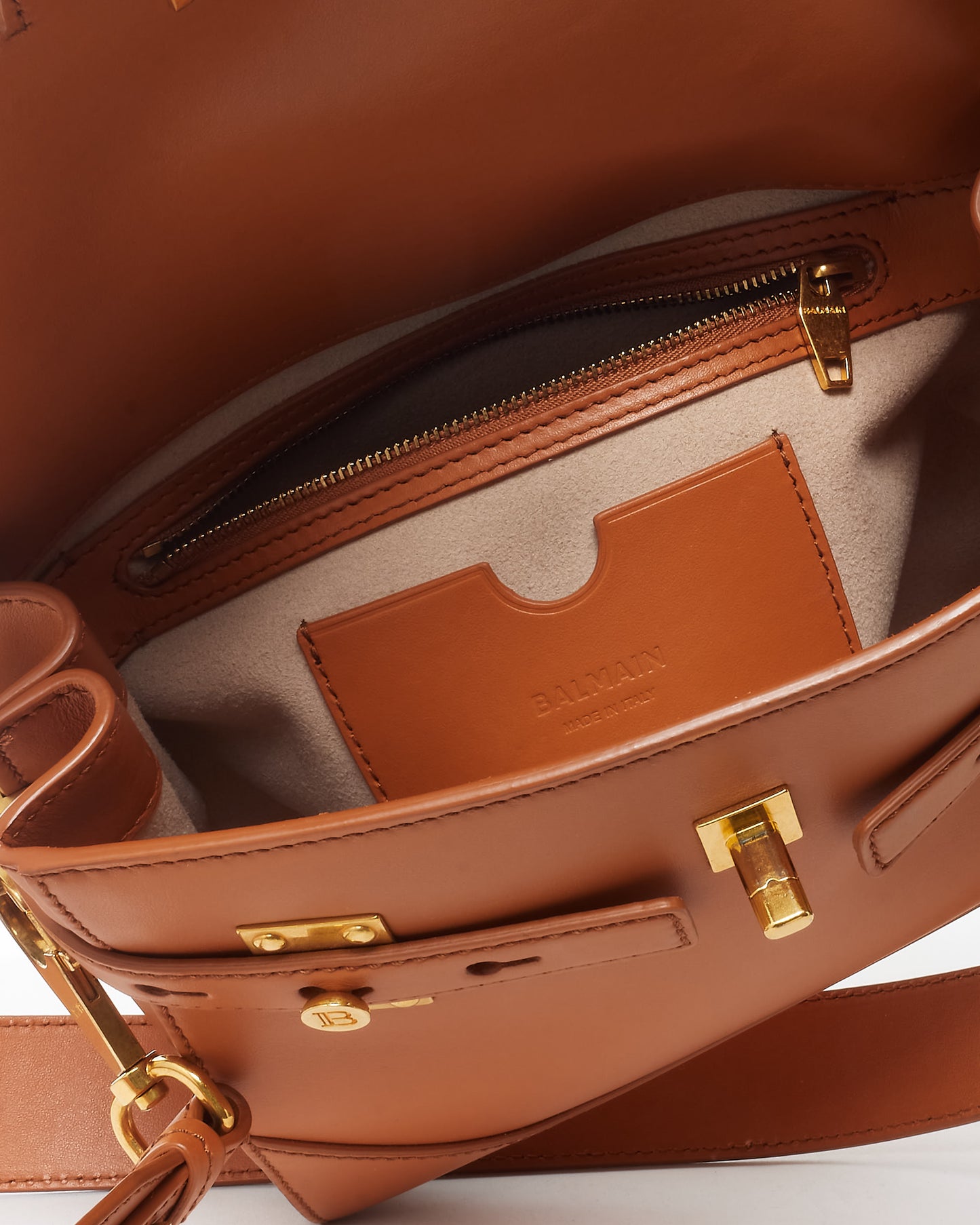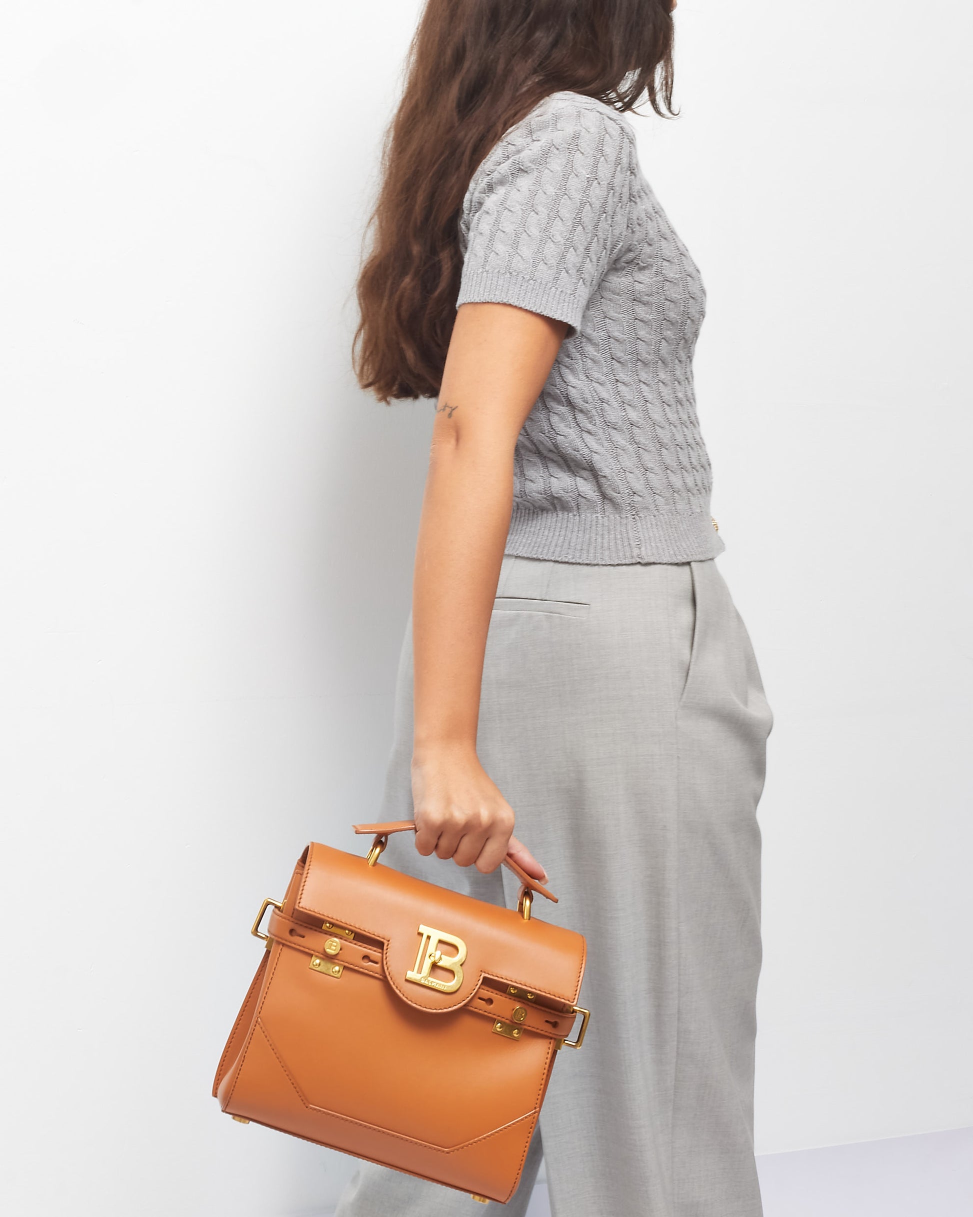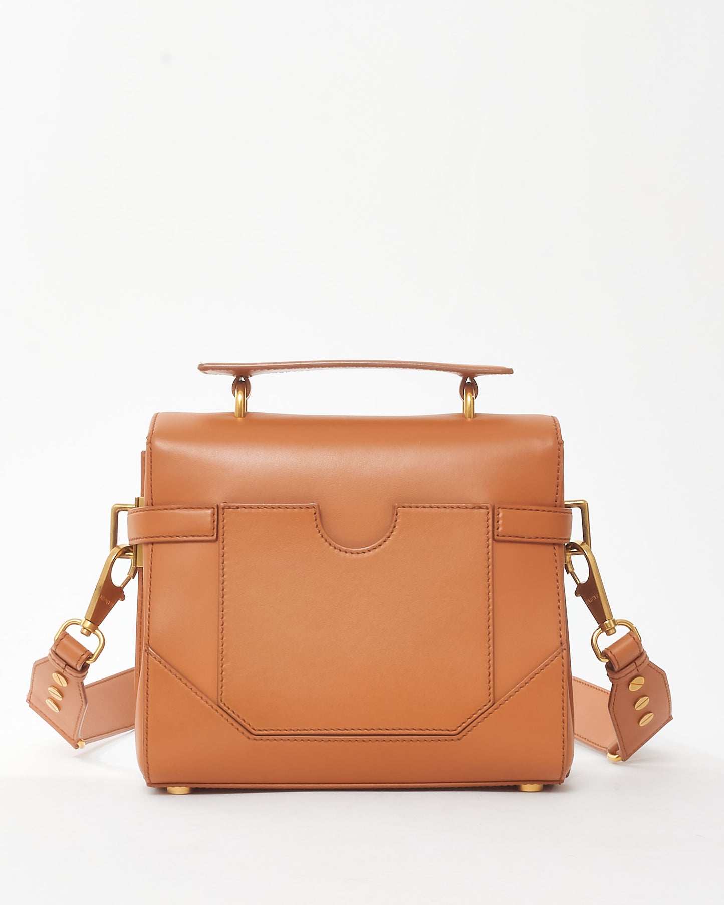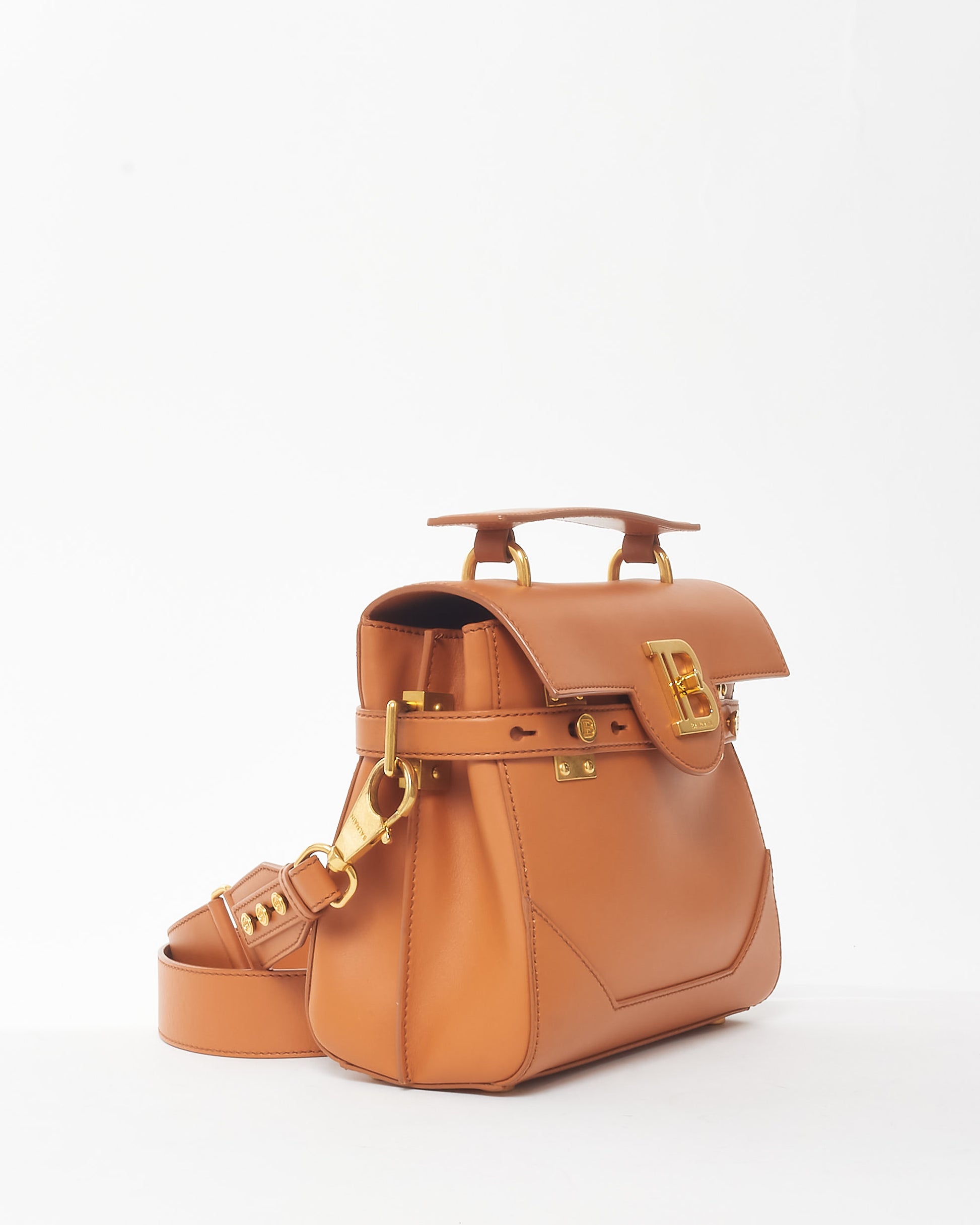 Elevate your style with the 100% authentic pre-owned Balmain Brown Leather B-Buzz 22 Top Handle Bag, a luxurious accessory that combines modern design with classic sophistication. Crafted from premium brown leather, this bag features the iconic B-Buzz silhouette with a structured shape and top handle for versatile wear. Adjustable shoulder strap with gold hardware - Its spacious interior offers ample room for your essentials, while gold-tone hardware adds a touch of opulence.