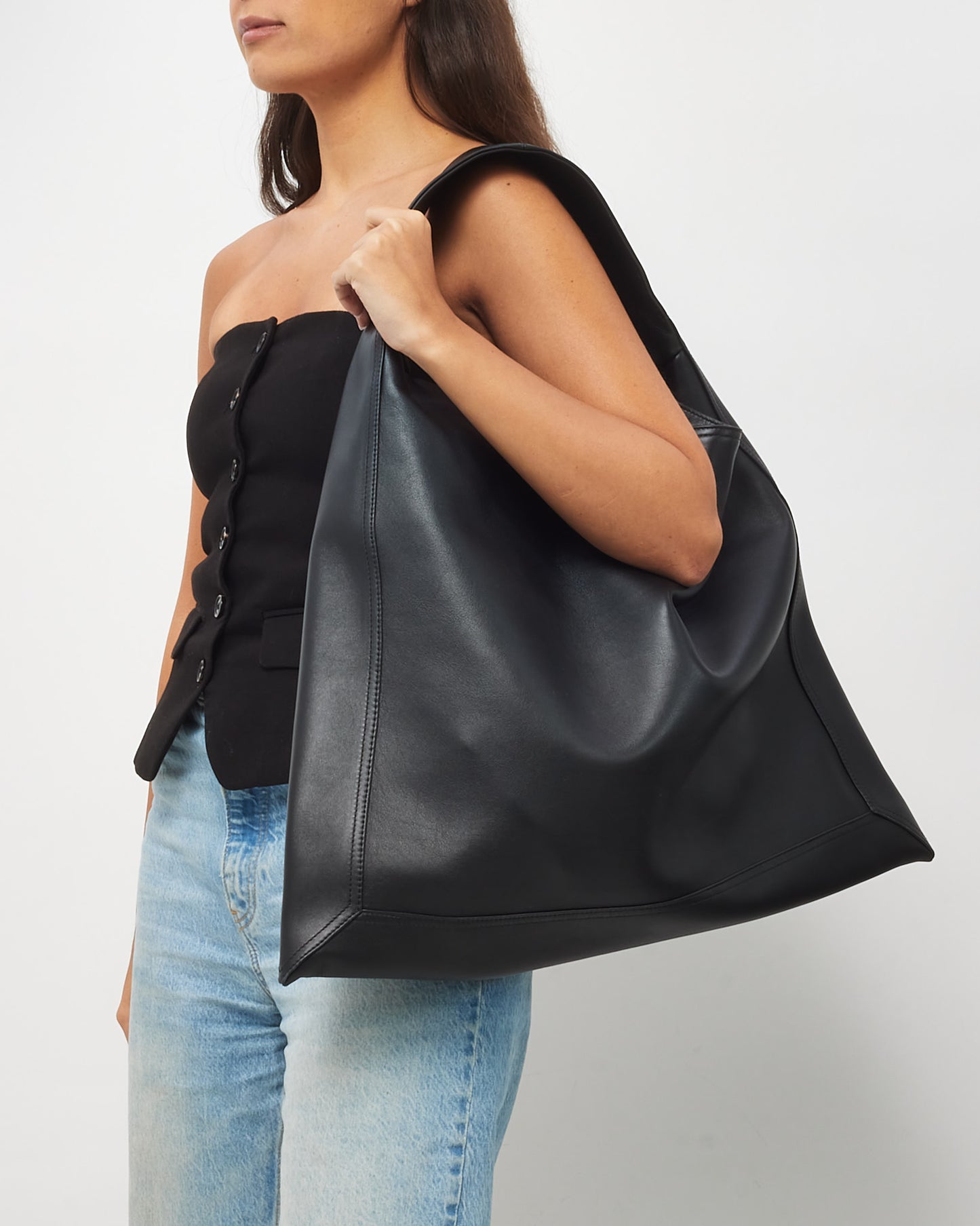 Understated and impeccably crafted, this pre-owned authentic Bottega Veneta Large Hop Bag is made from smooth black calf leather in a sculptural, curved silhouette. Featuring the house’s minimalist design ethos, it offers a spacious interior, padded top handle, and zip closure—balancing form, function, and refined luxury.