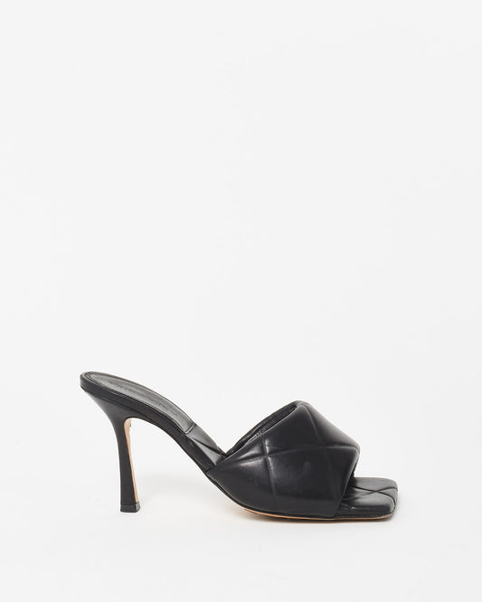 Black Intrecciato Leather Lido Mule Heels - 38.5