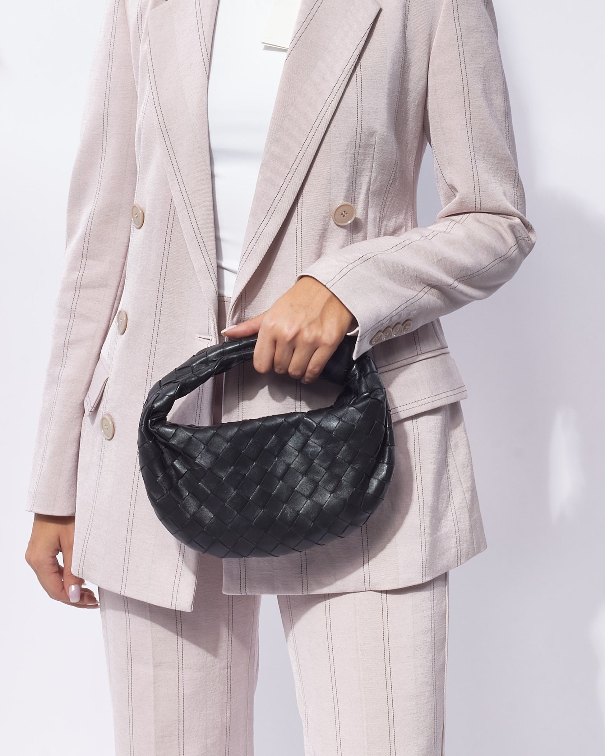 Explore Bottega Veneta's exquisite collection of handbags, featuring this certified pre-owned Black Intrecciato Leather Mini Jodie. Embodying timeless elegance and modern sustainability, each piece, including favorites like this, is authenticated by Retyche. Discover sustainable luxury — shop our current treasures or find inspiration for your next coveted find.