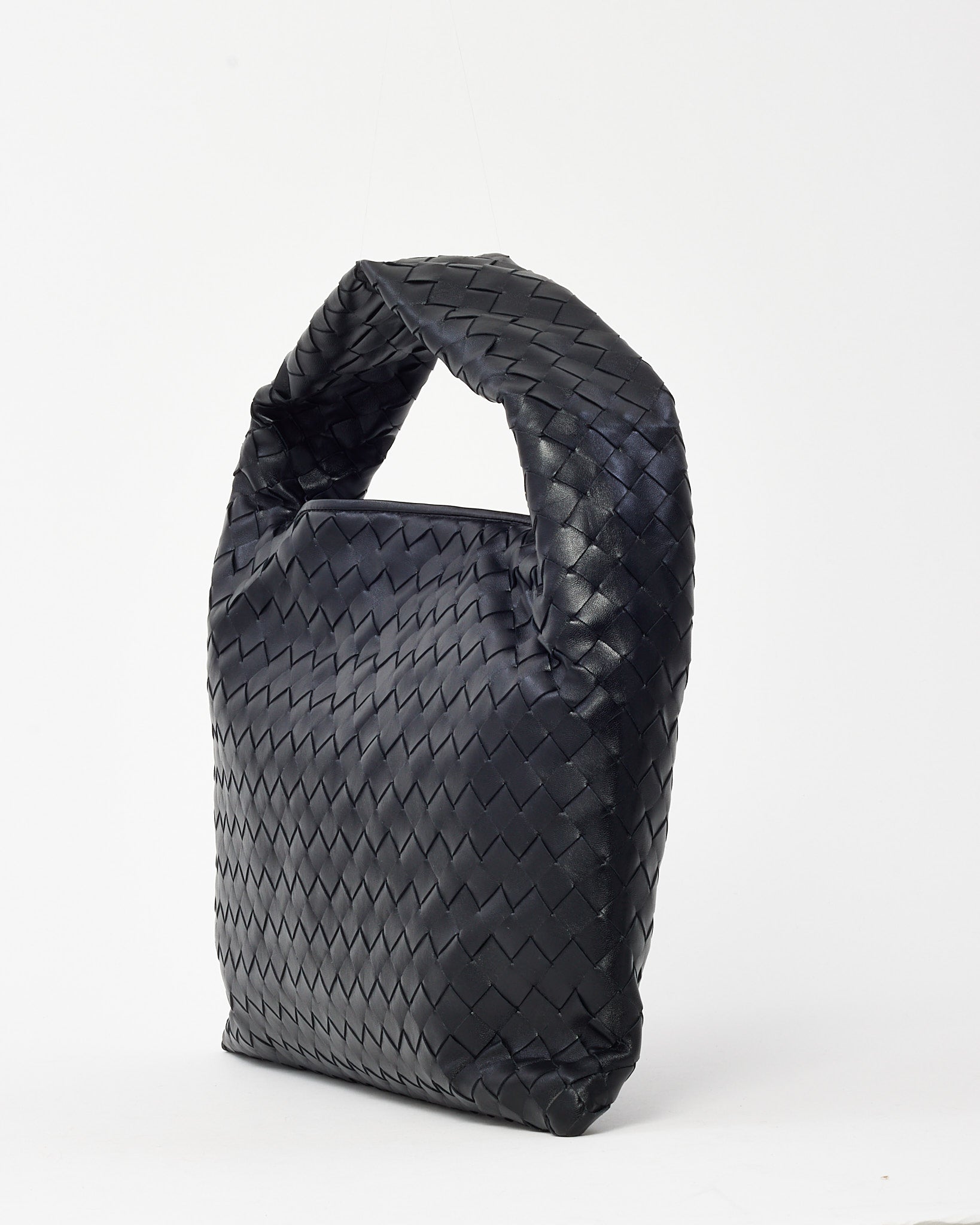 Black Intrecciato Leather Small Hop Shoulder Bag
