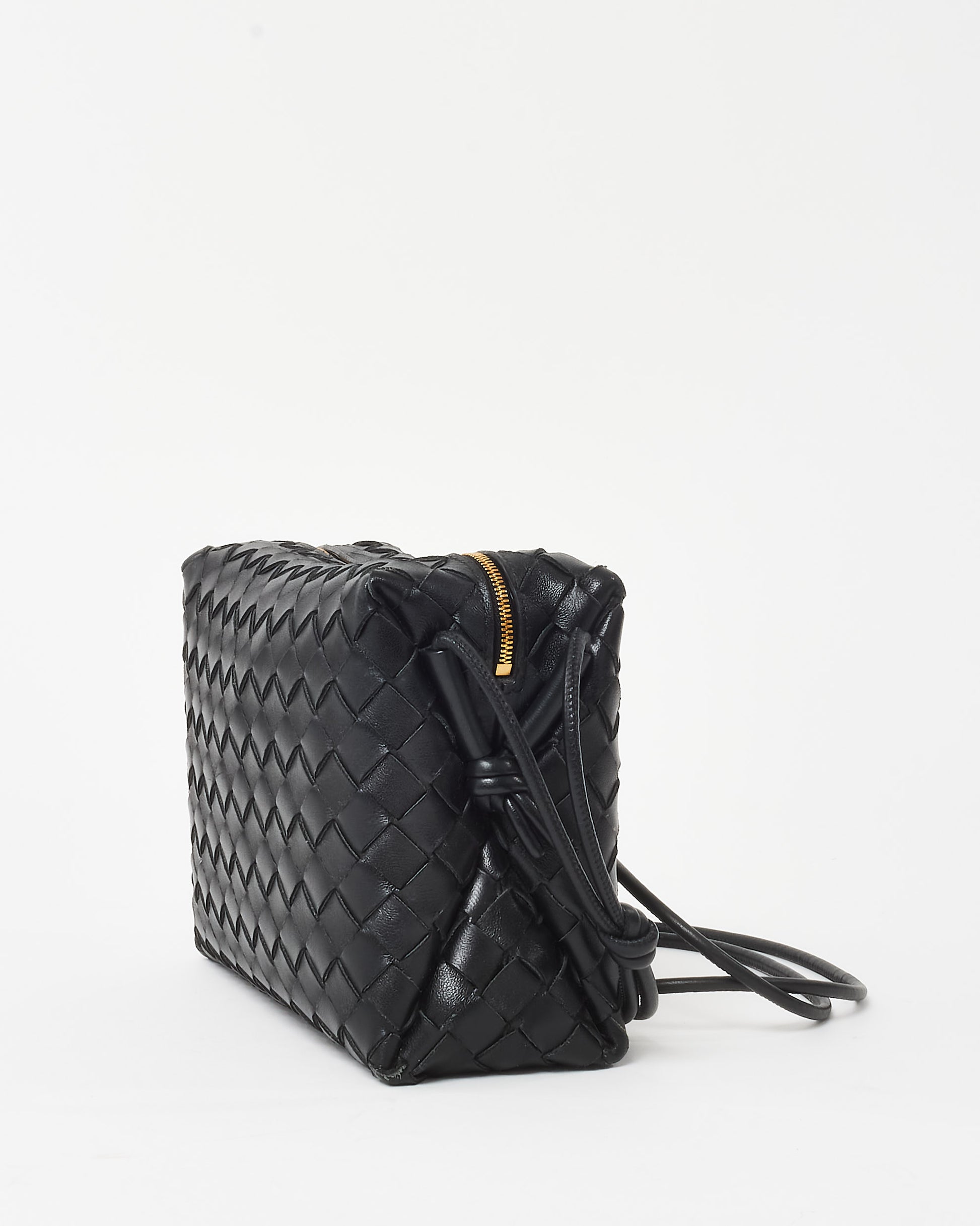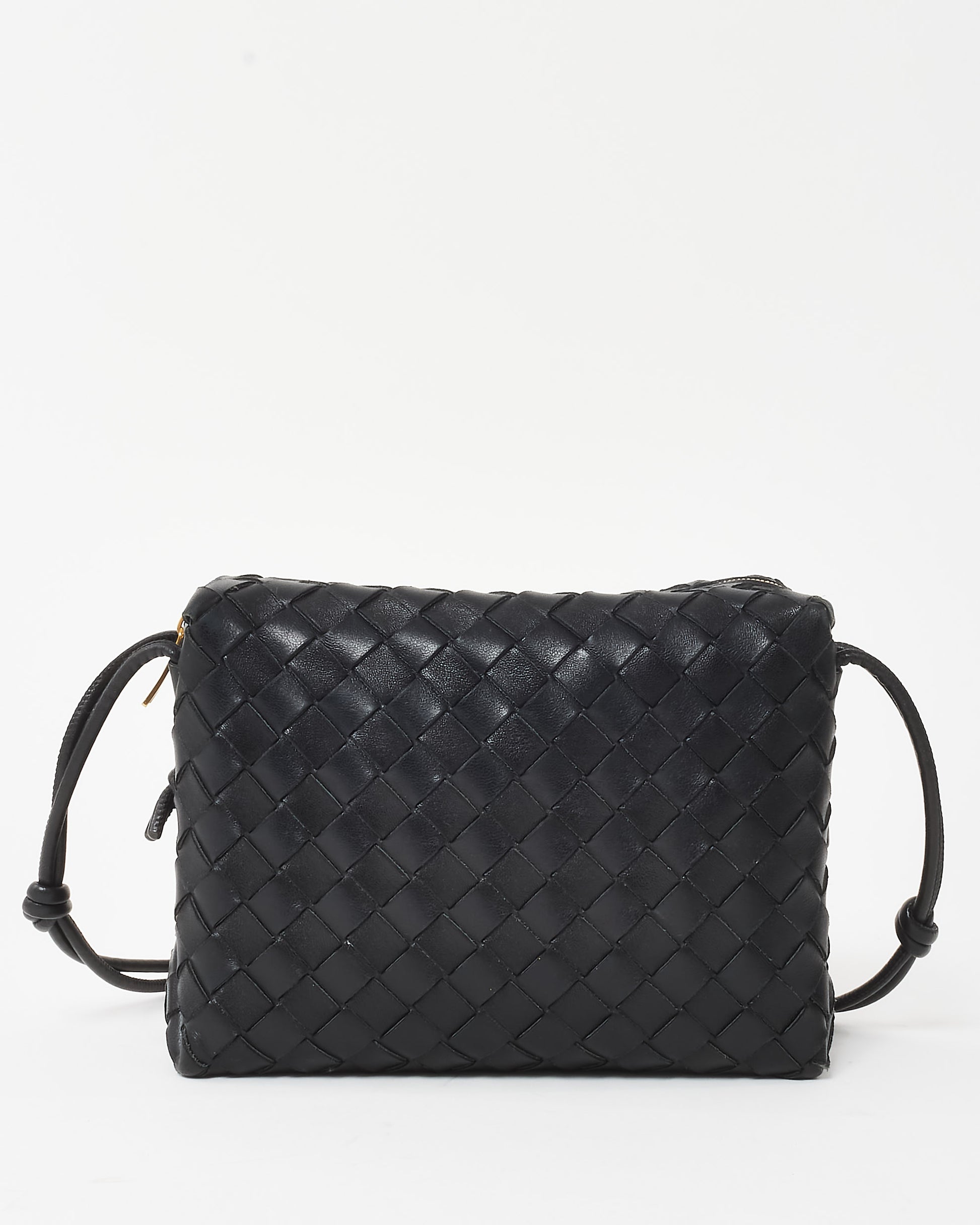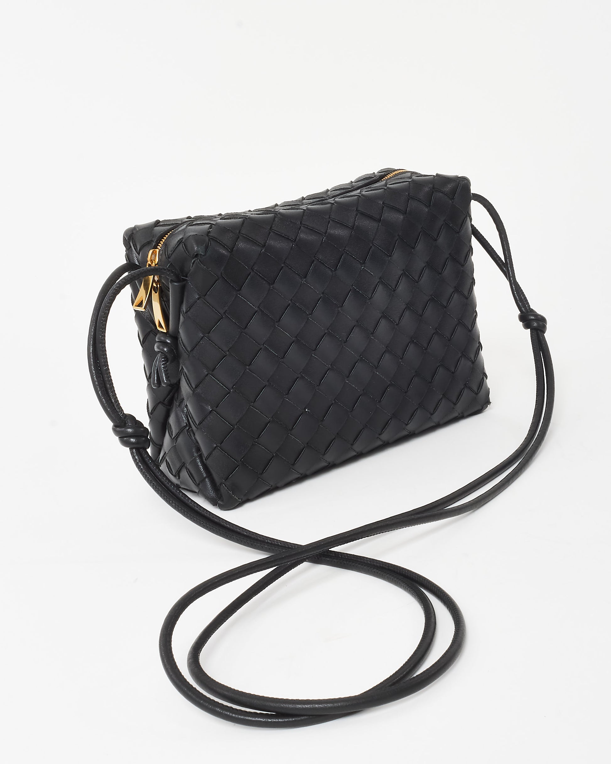 Black Intrecciato Leather Small Loop Crossbody Bag