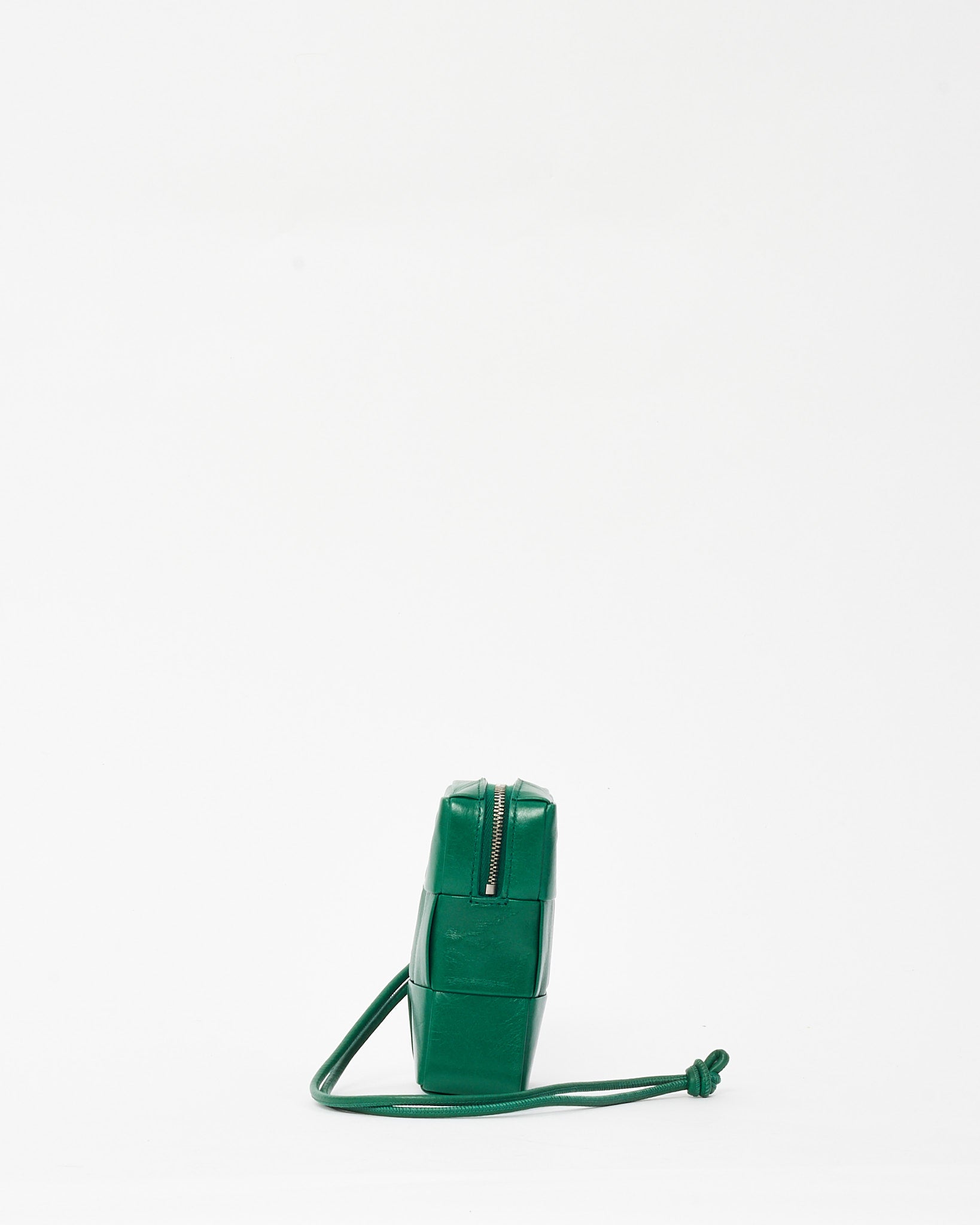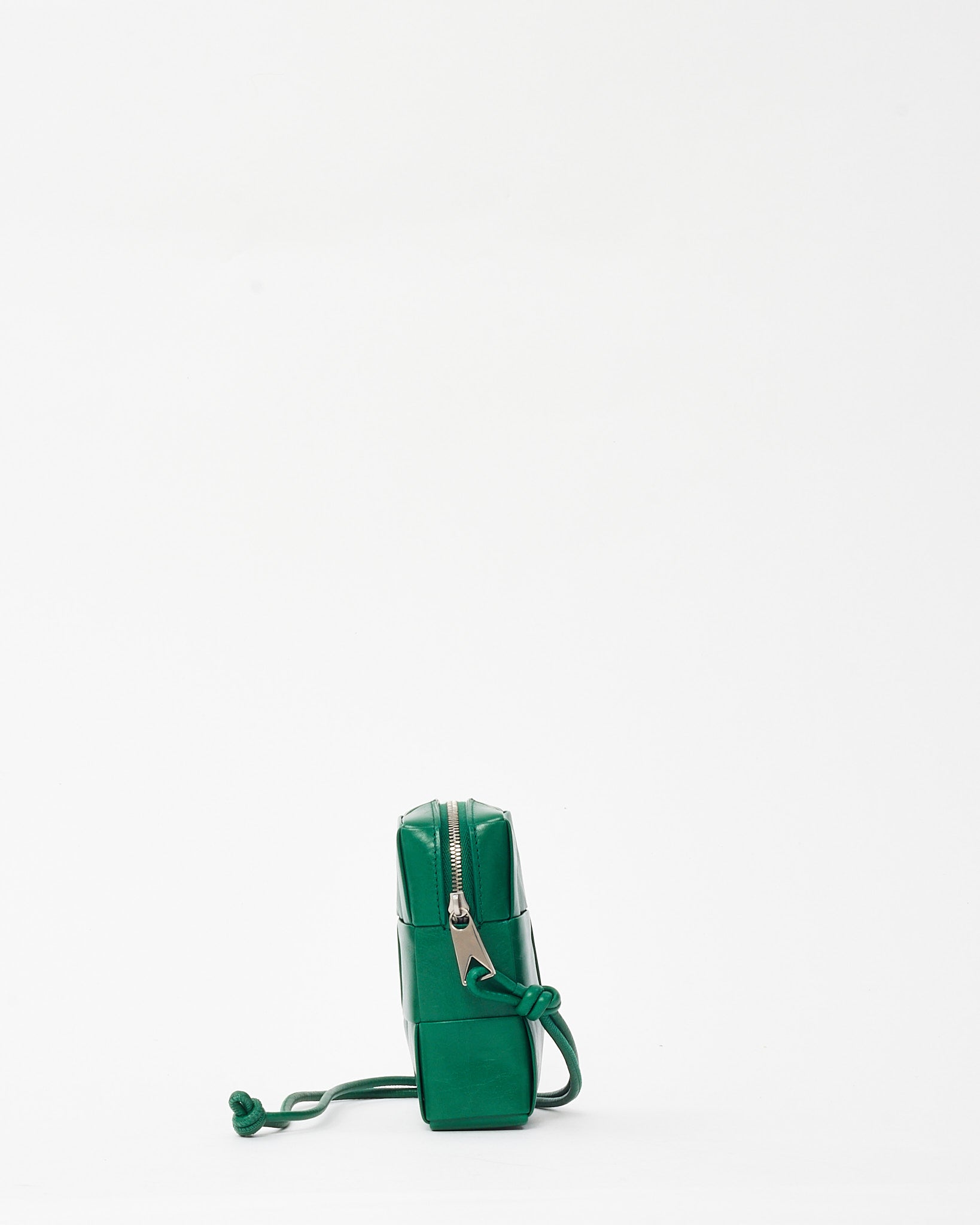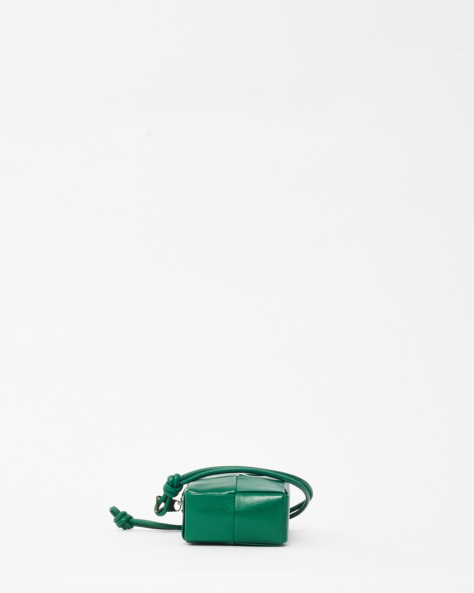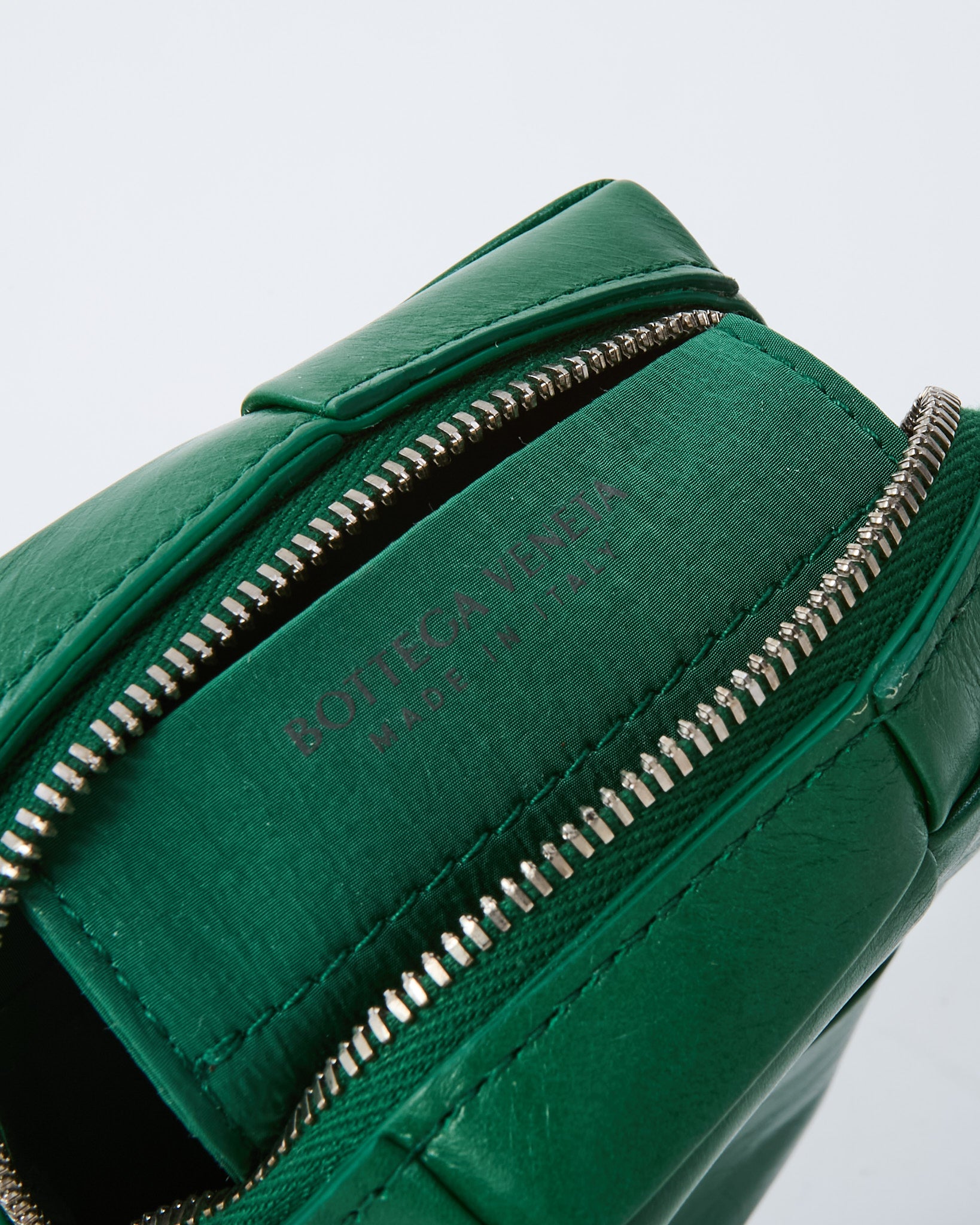 Green Intrecciato Leather Cassette Zip Wristlet Pouch