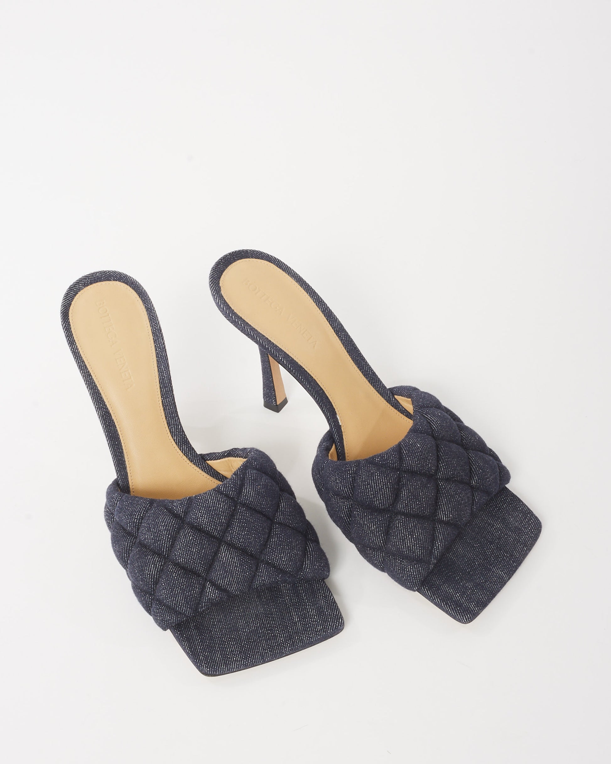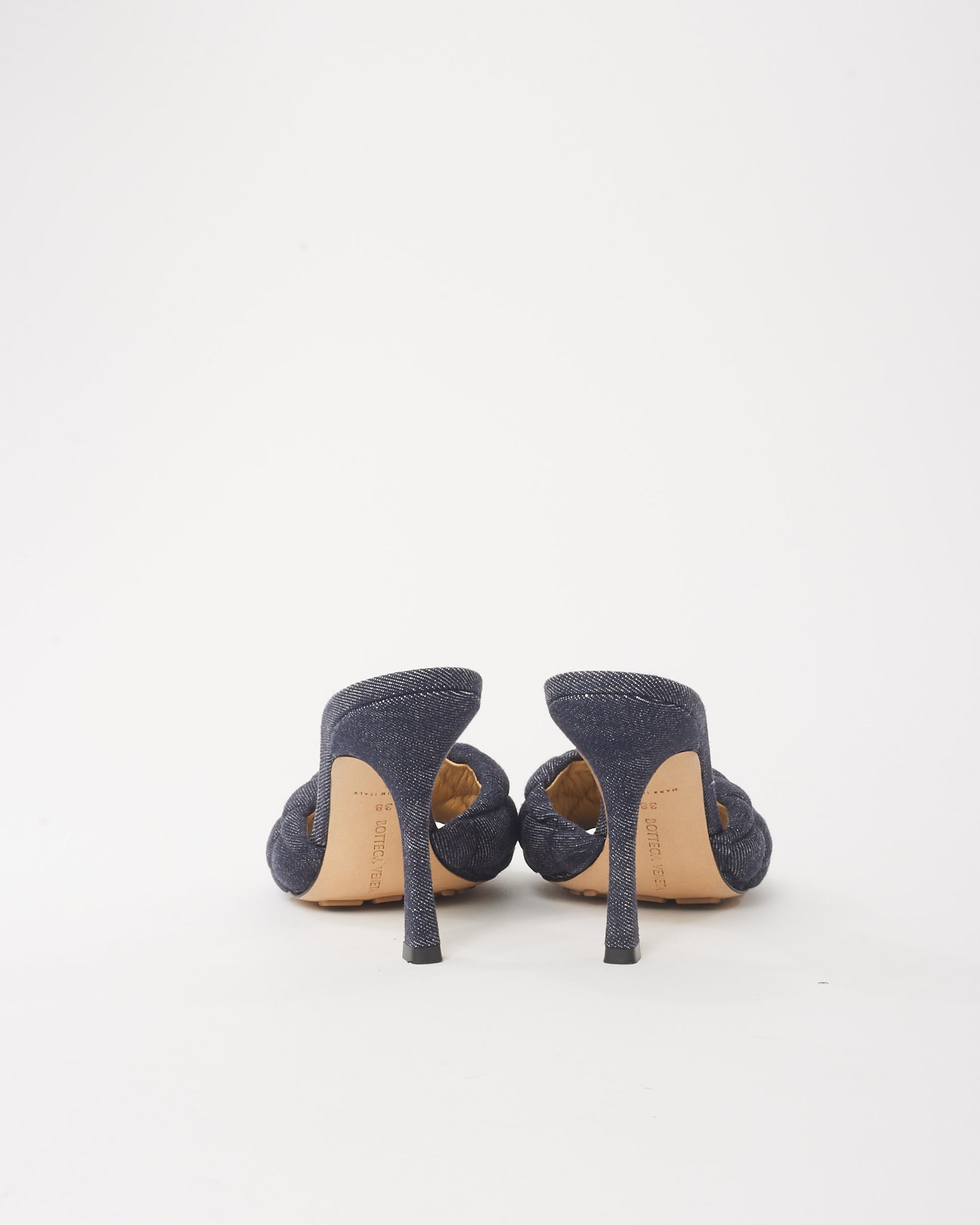 Indigo Blue Denim Padded Mule Heeled Sandals - 38