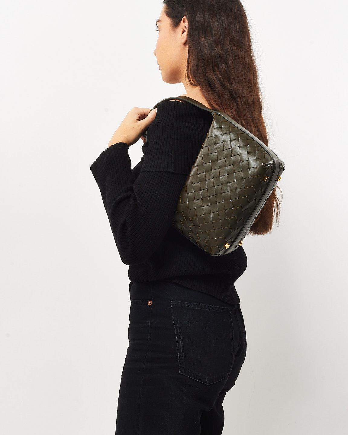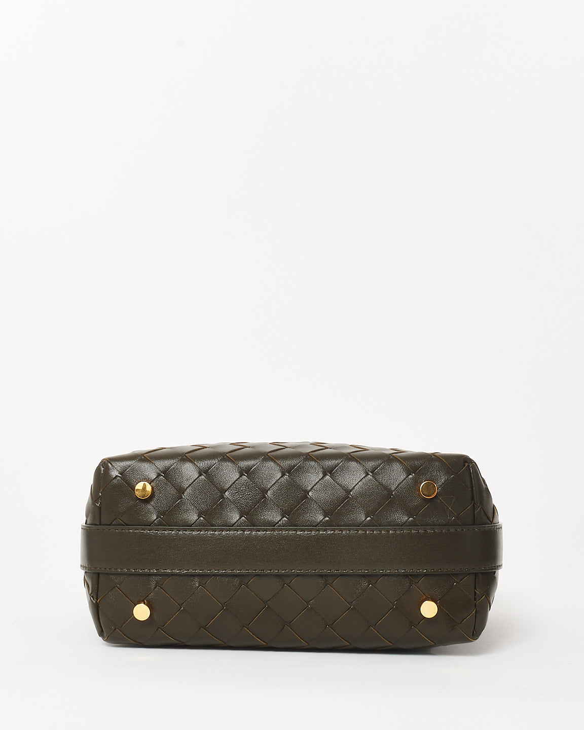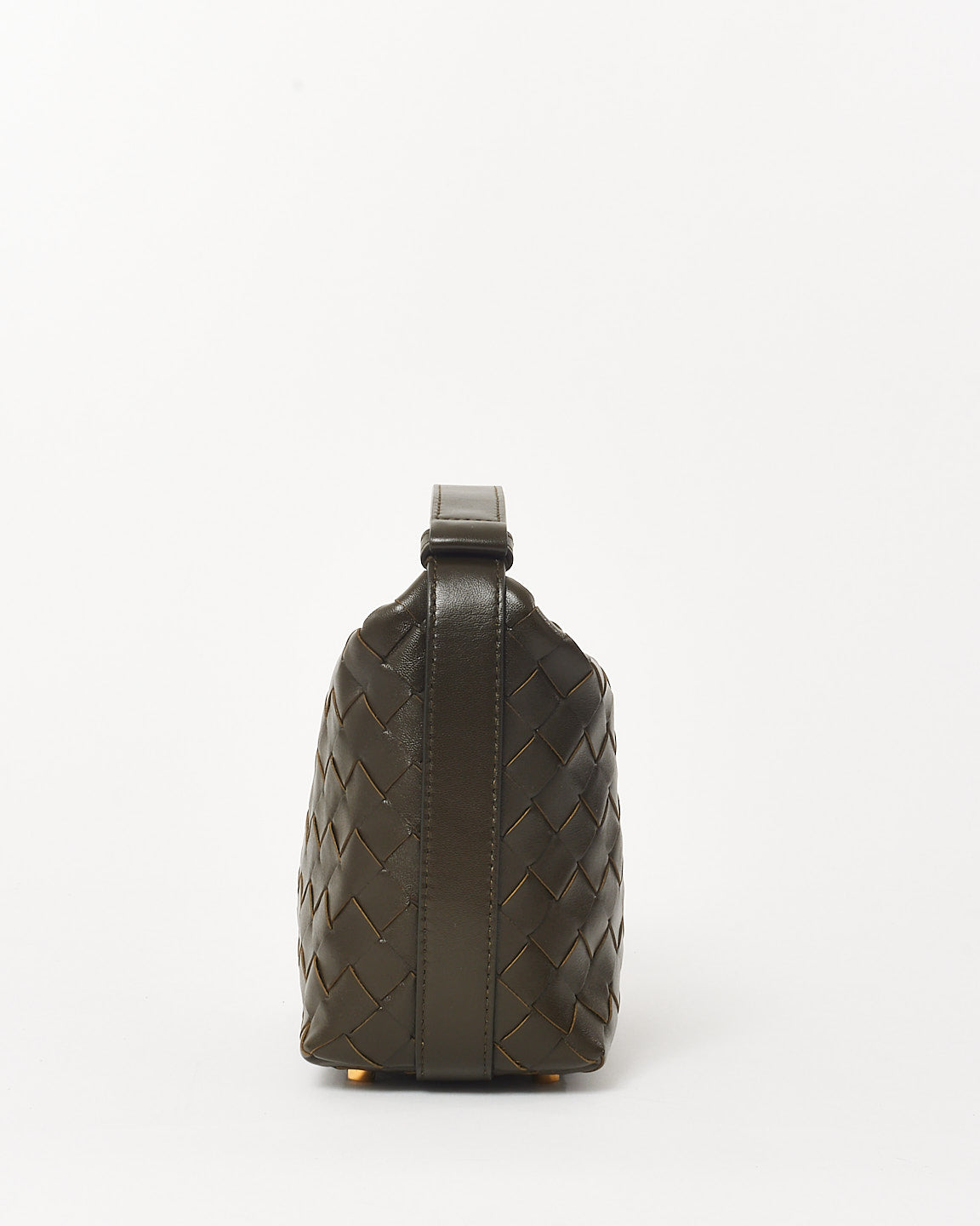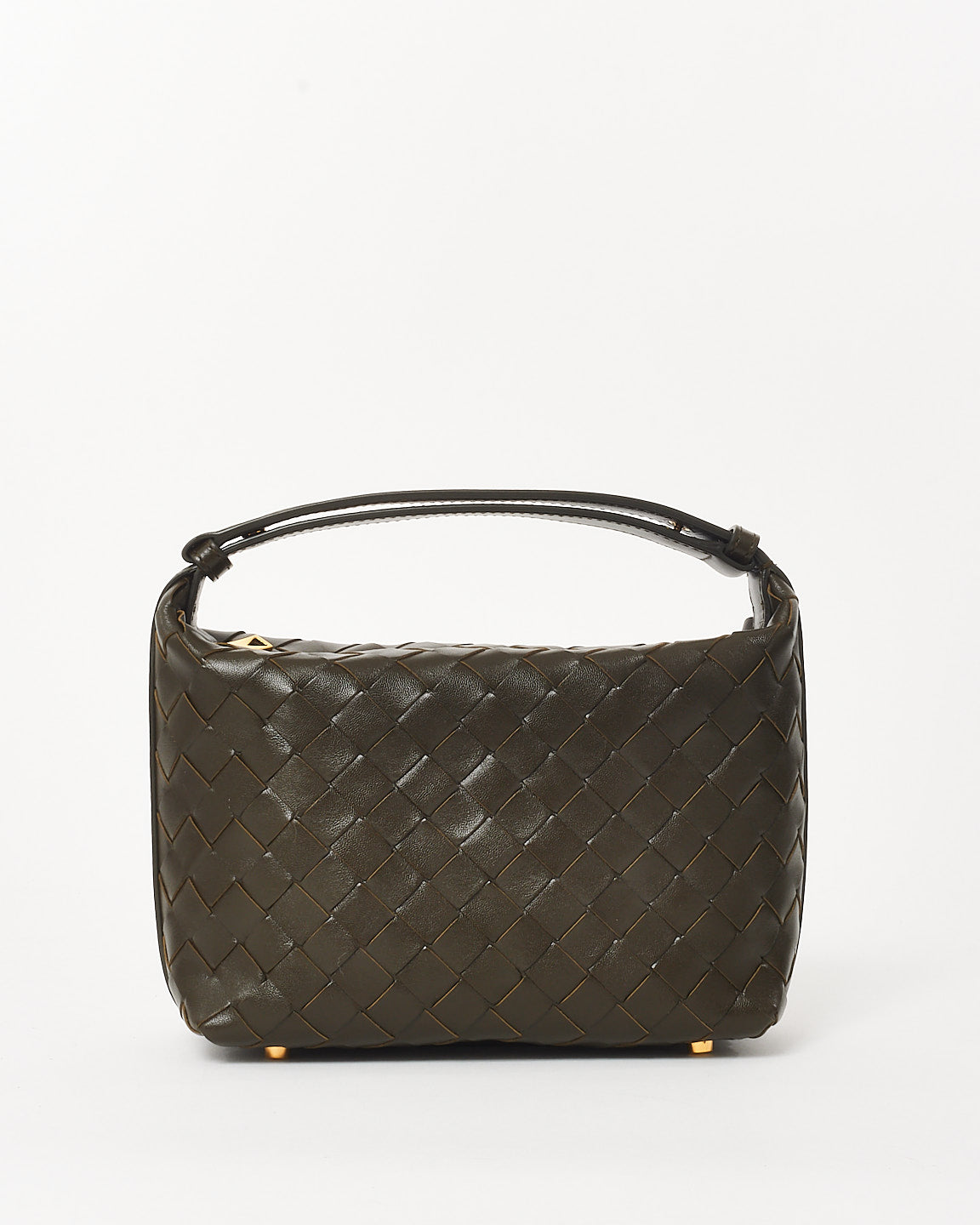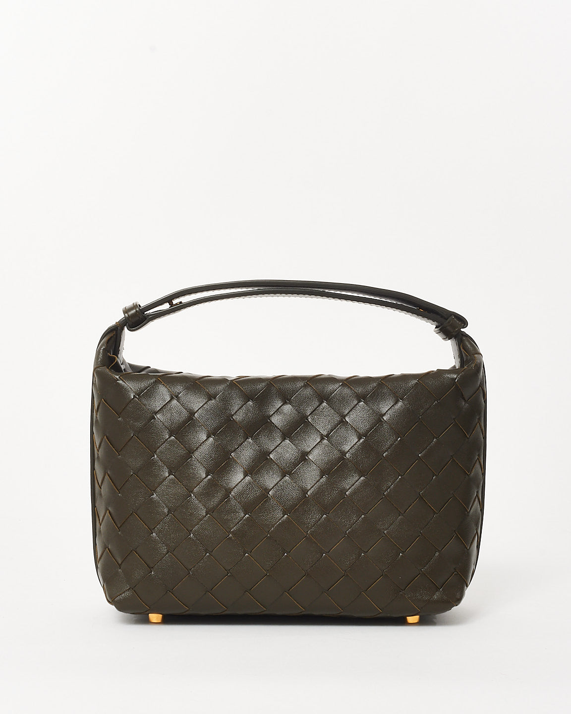 Refined and contemporary, the pre-owned authentic Bottega Veneta Kaki Intrecciato Leather Mini Wallace Bag is a compact statement of the house’s celebrated craftsmanship. Made from signature intrecciato-woven leather in a versatile kaki green hue, this mini bag features a structured, modern silhouette with minimalist detailing and a soft, tactile finish.