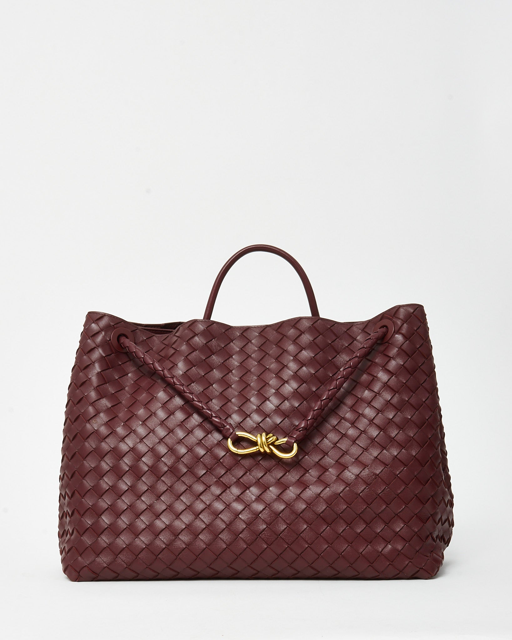 Make a refined yet bold statement with this pre-loved authentic Bottega Veneta Red Barolo Intrecciato Leather Large Andiamo Bag, crafted in supple leather with the house’s iconic Intrecciato weaving for a rich, textured finish. The structured yet fluid Andiamo silhouette features a top handle and adjustable strap for versatile styling, while the signature knot detail adds a distinctive touch of understated luxury. Designed with a spacious interior for everyday essentials, this Bottega Veneta bag blends modern functionality with timeless Italian craftsmanship. A standout designer handbag that embodies quiet luxury with a striking pop of color.