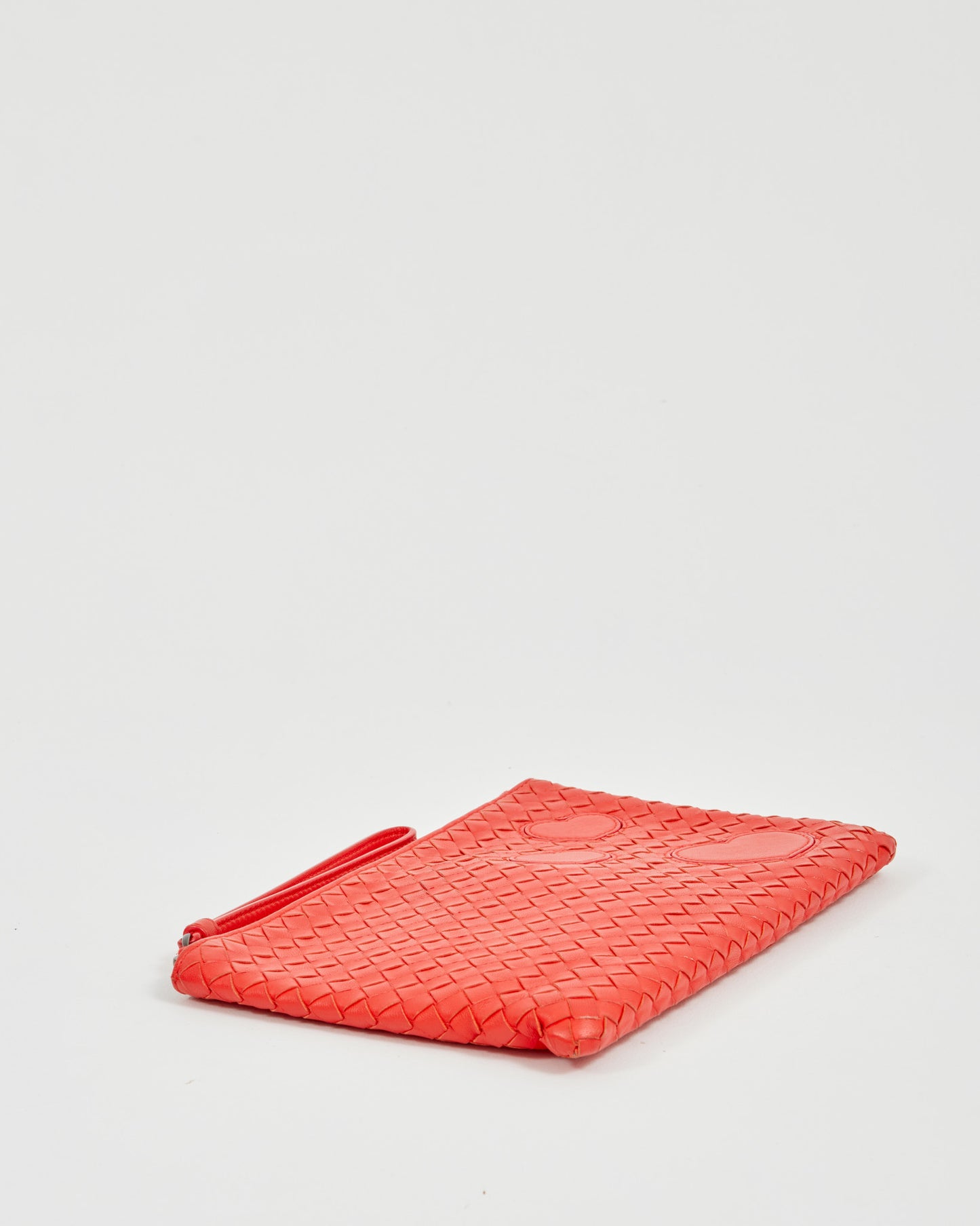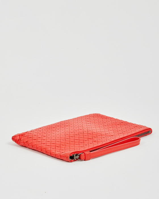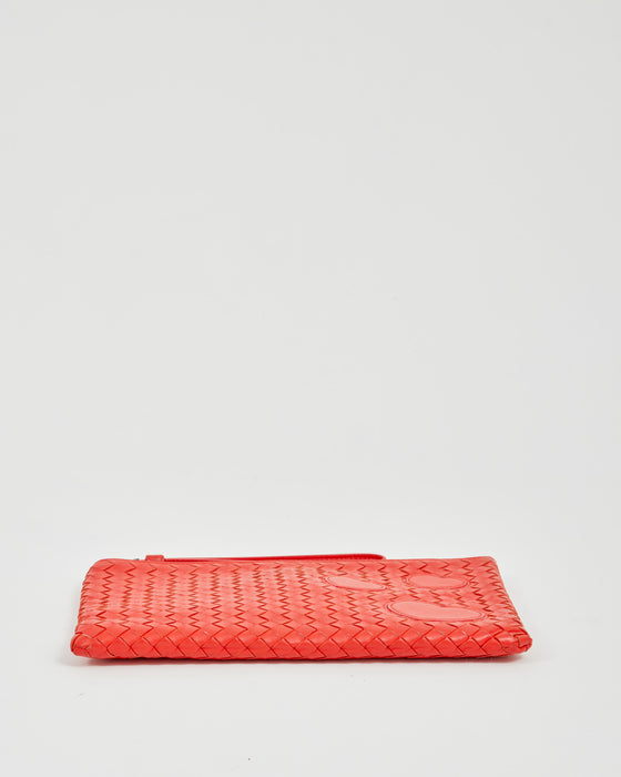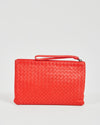 Red Intrecciato Leather Wristlet Pouch