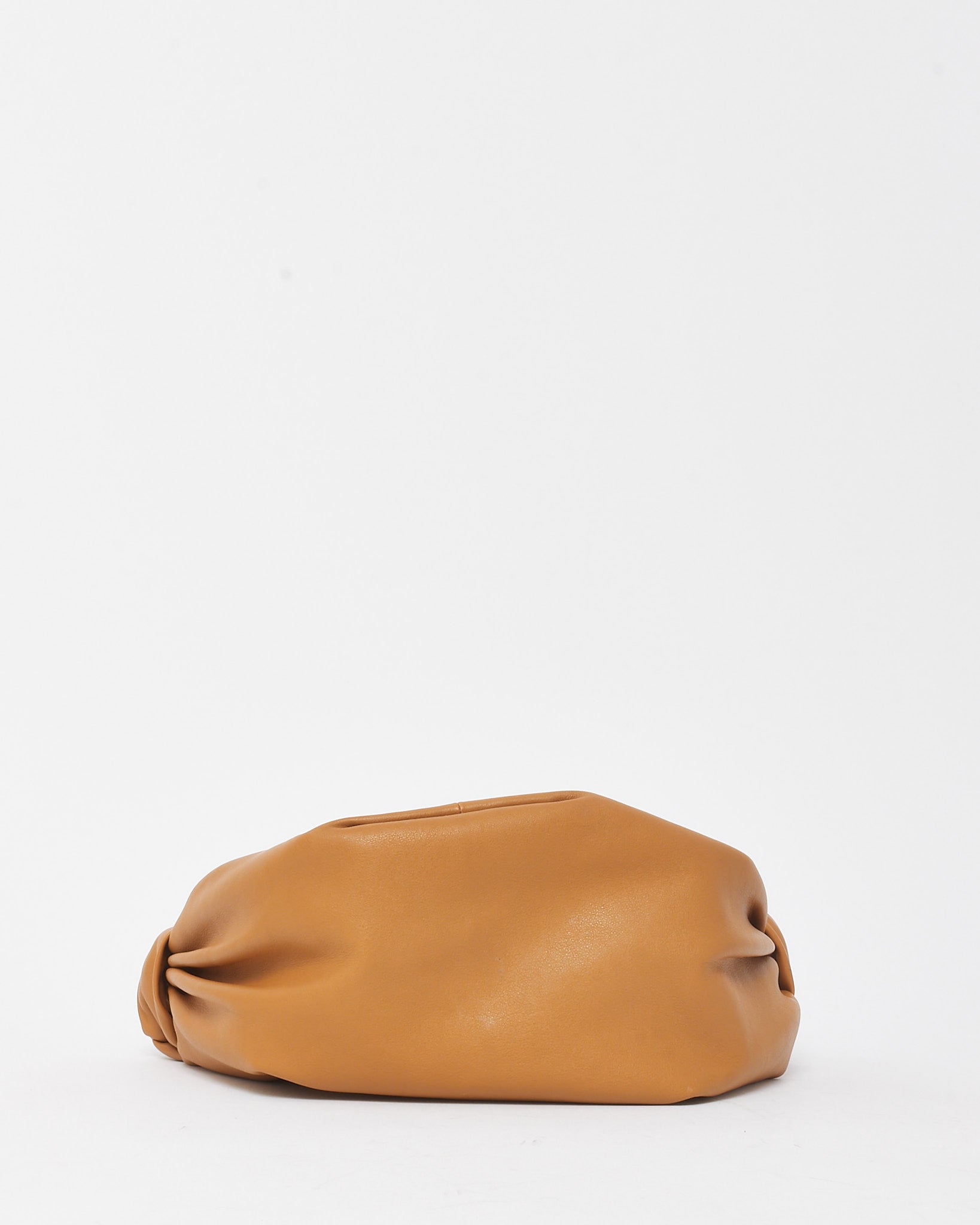 Add sculptural elegance to your accessories collection with this pre-loved authentic Bottega Veneta The Teen Double Knot Top Handle Bag in tan leather. Crafted in the house’s signature smooth leather, the compact silhouette is elevated by its distinctive double top knot design—a modern architectural detail that exemplifies Bottega Veneta’s refined minimalism. The single top handle and zip closure offer a clean, functional finish, while the warm tan hue brings versatile sophistication. Ideal for day-to-evening transitions, this piece merges contemporary artistry with timeless Italian craftsmanship.