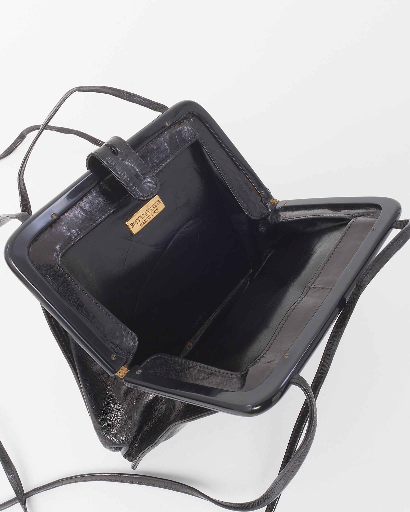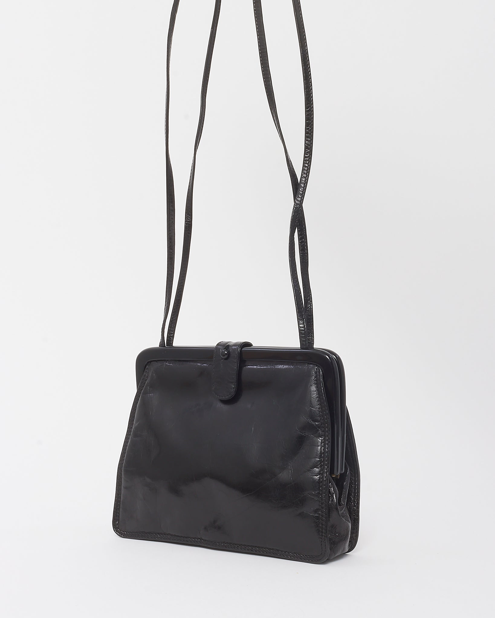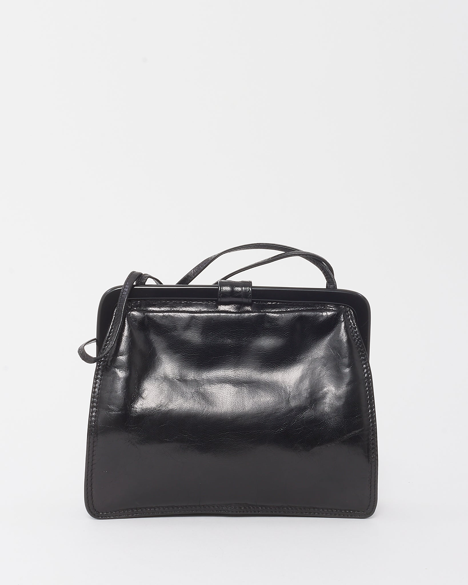 Vintage Black Glazed Calfskin Kiss Lock Crossbody Bag