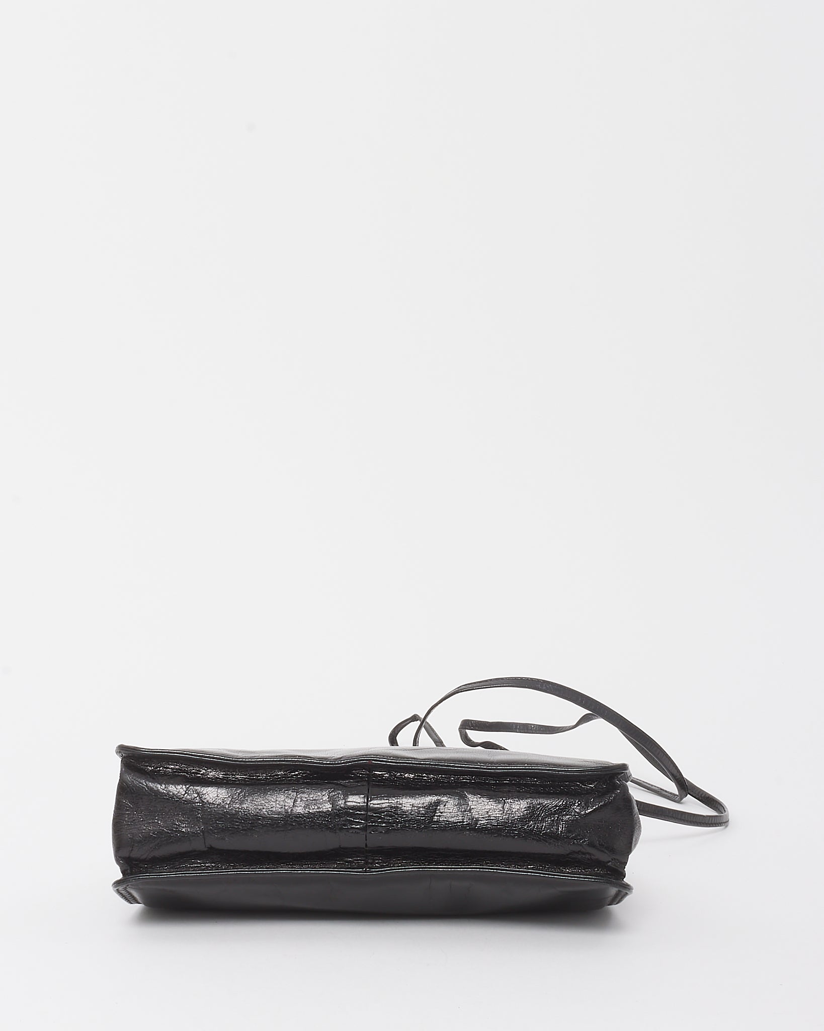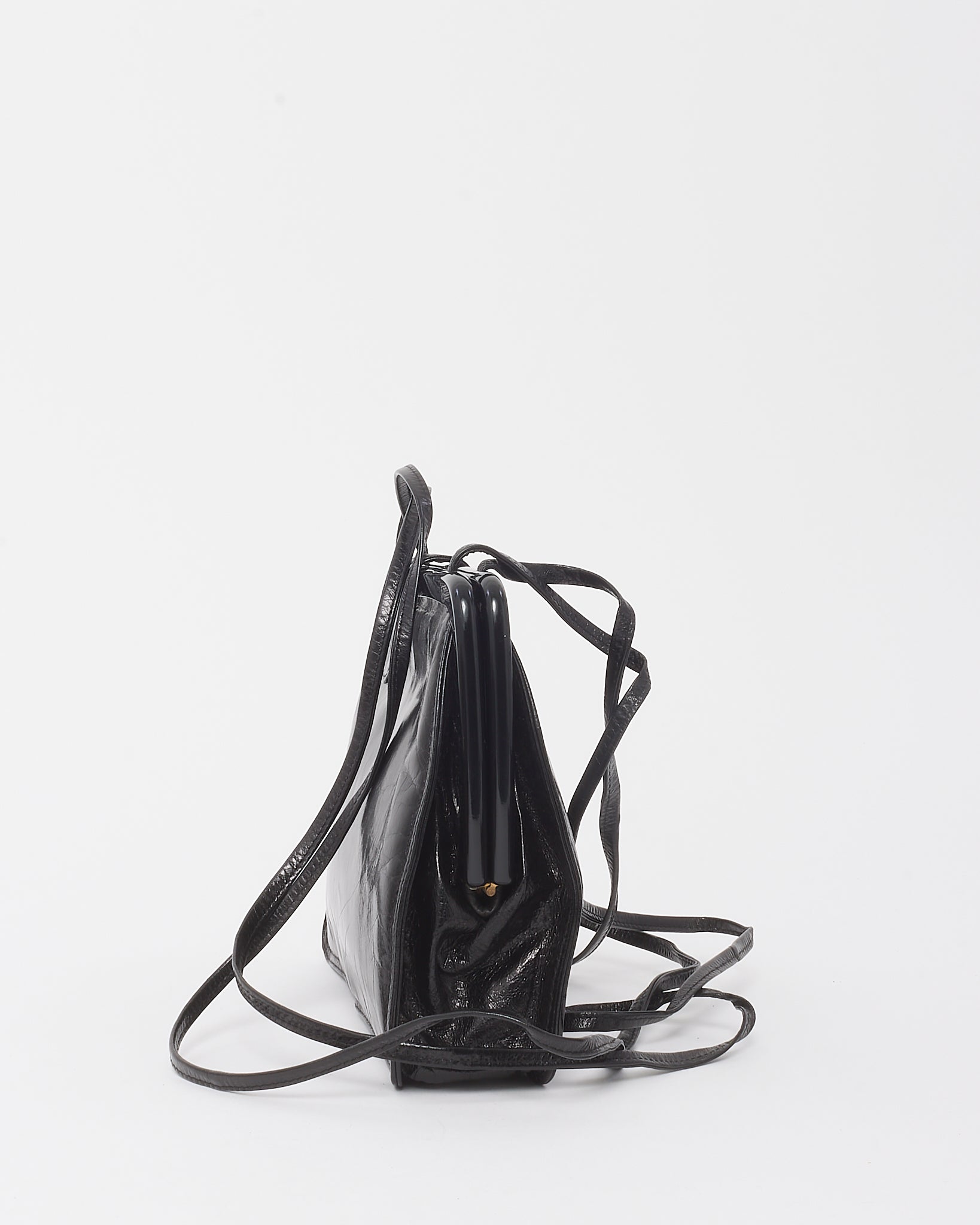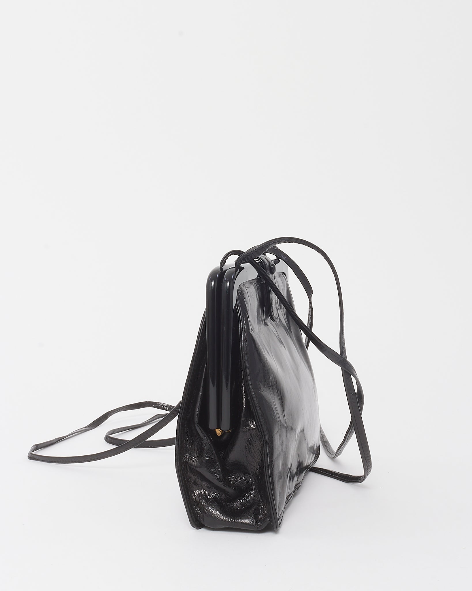 Vintage Black Glazed Calfskin Kiss Lock Crossbody Bag