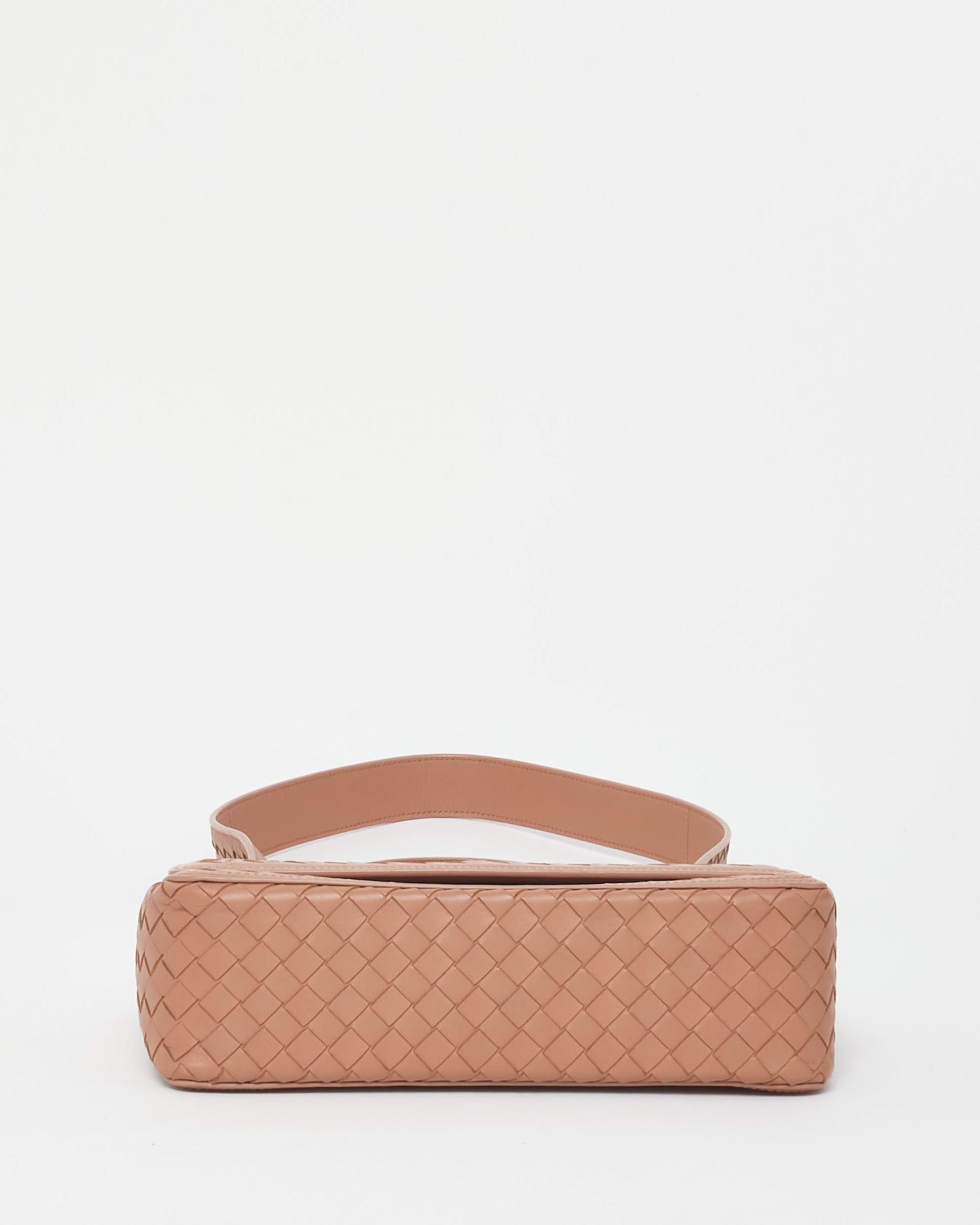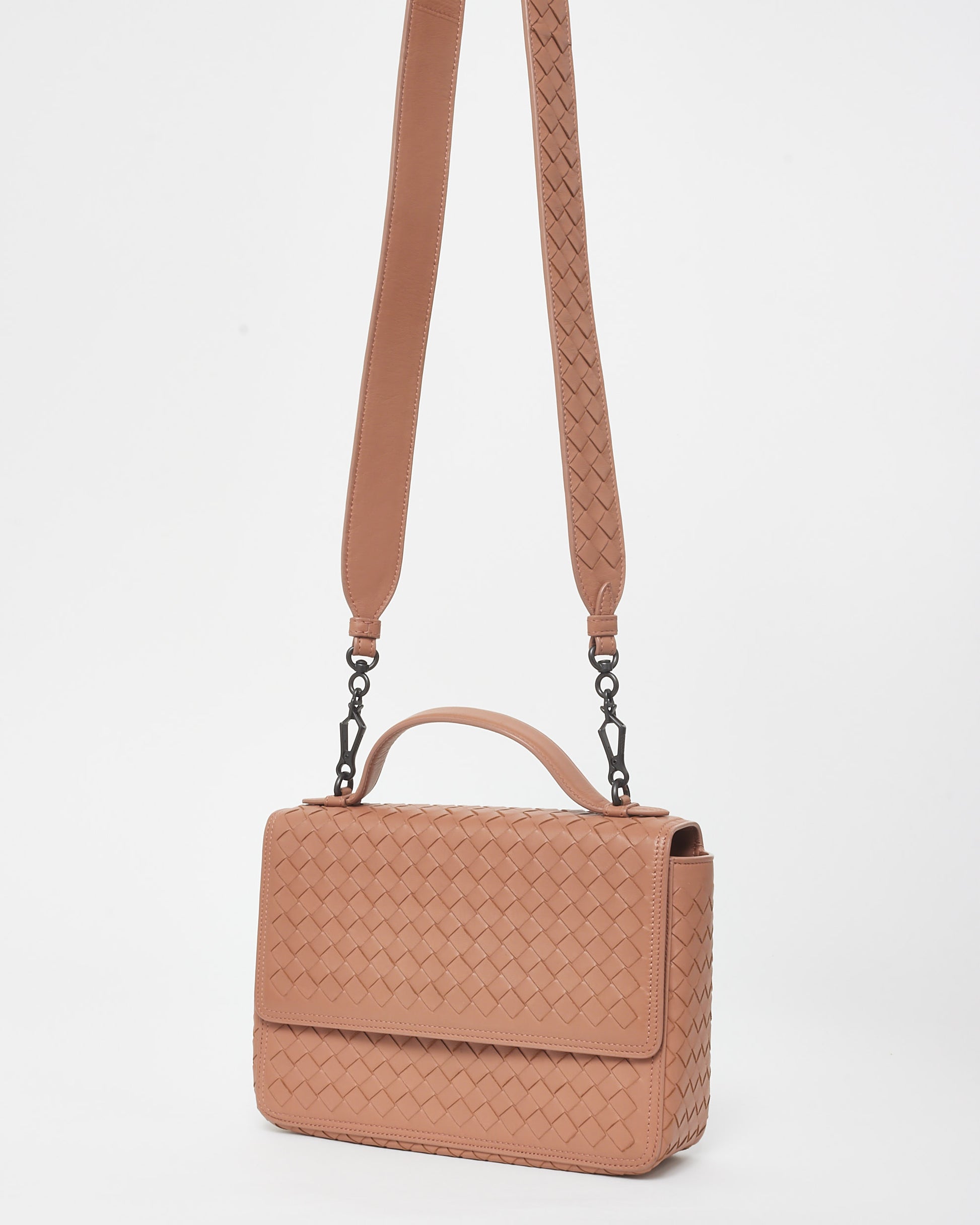 Explore Bottega Veneta's exquisite collection of handbags, featuring this certified pre-owned Vintage Blush Pink Leather Intrecciato Top Handle Bag. Embodying timeless elegance and modern sustainability, each piece, including favorites like this, is authenticated by Retyche. Discover sustainable luxury — shop our current treasures or find inspiration for your next coveted find.