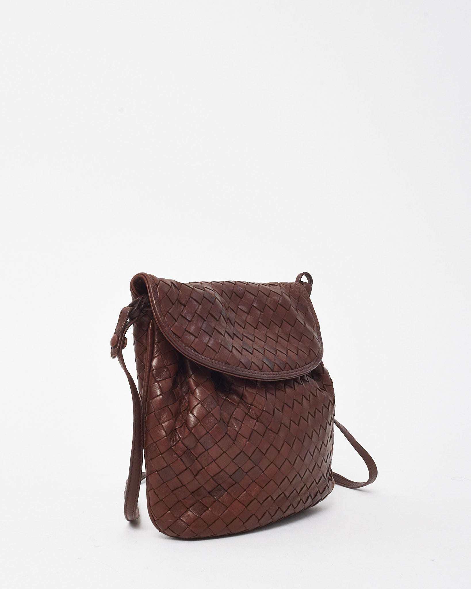 Vintage Brown Intrecciato Leather Small Flap Shoulder Bag