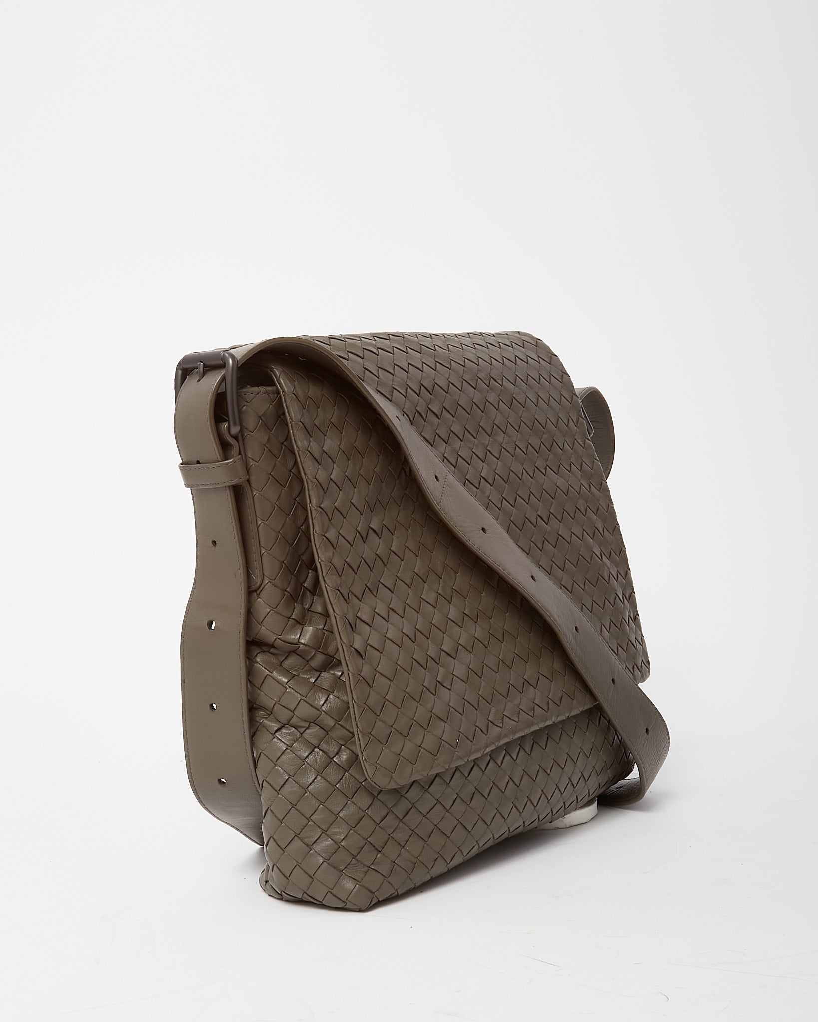 Vintage Grey Intrecciato Leather Messenger Crossbody Bag