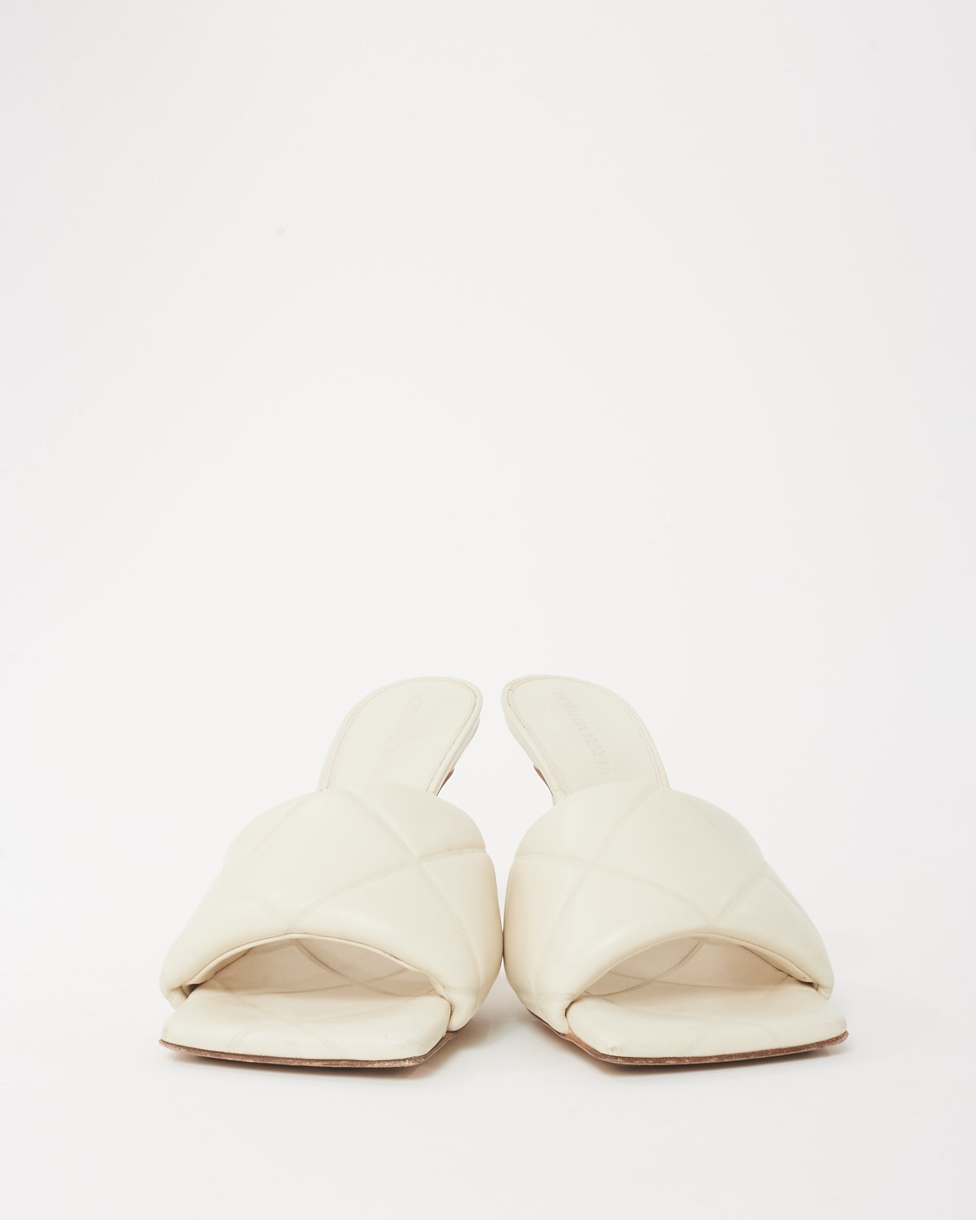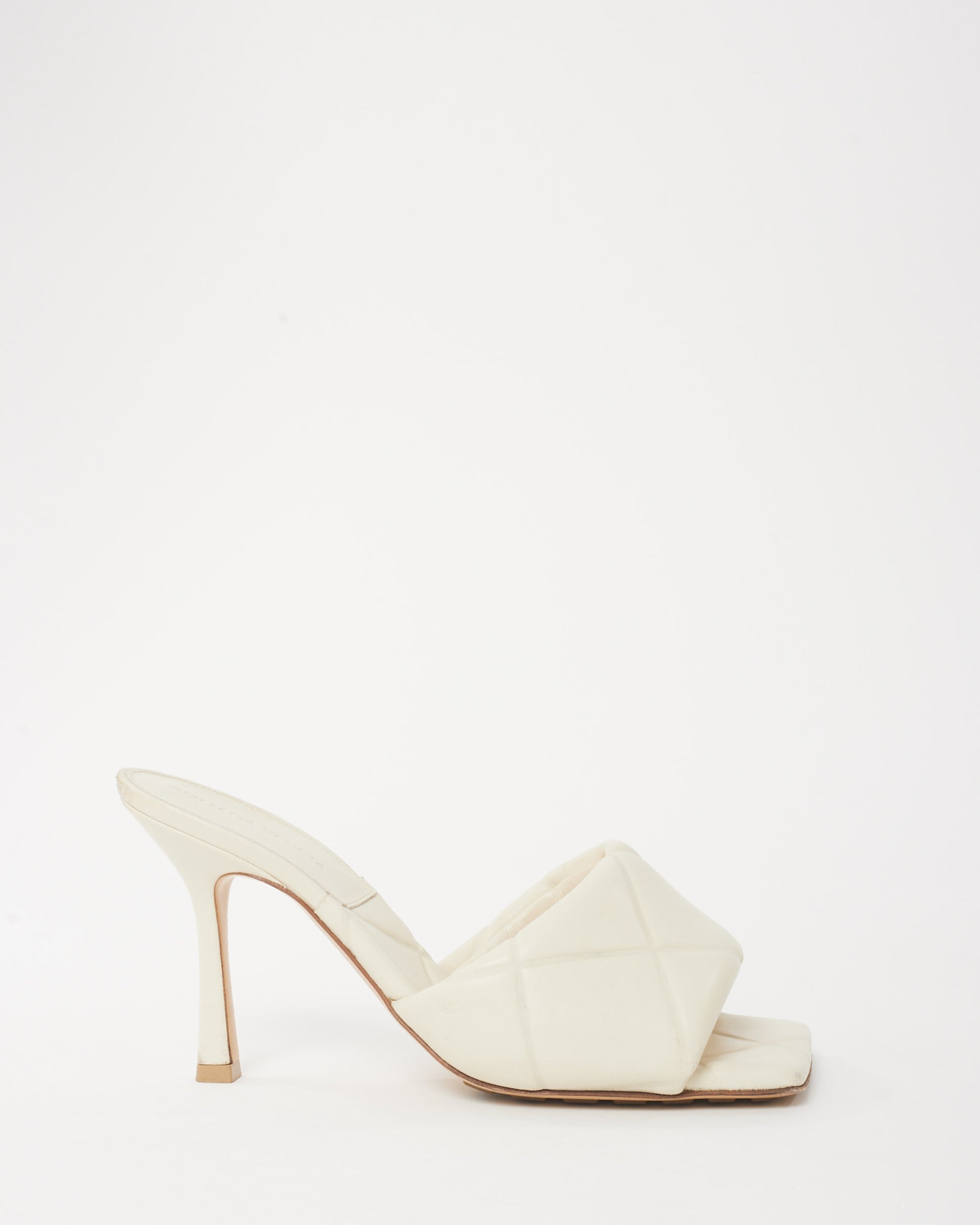 White Leather Padded Mule Heeled Sandals - 37.5