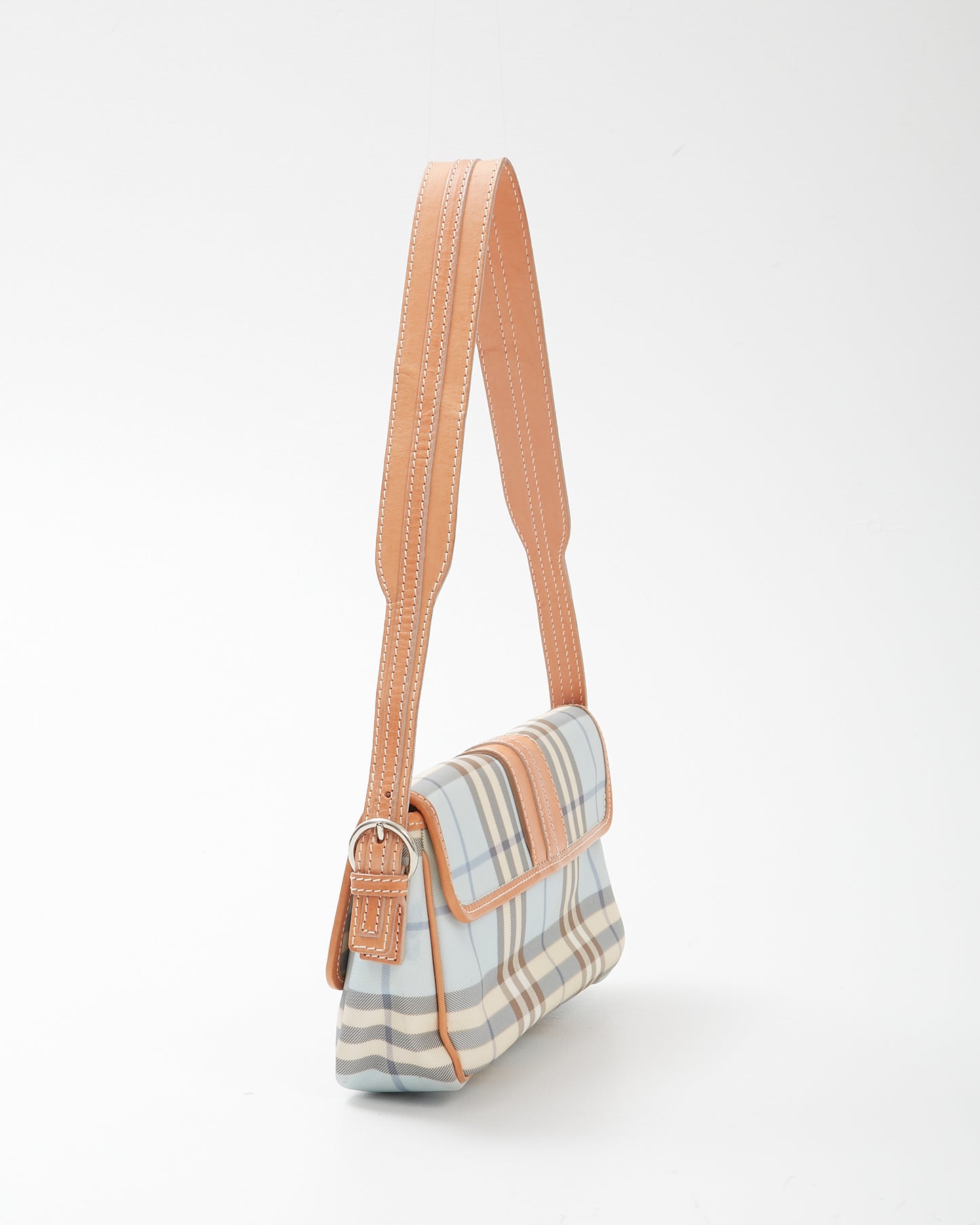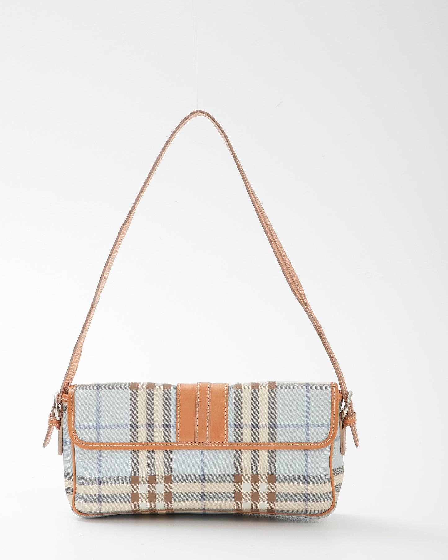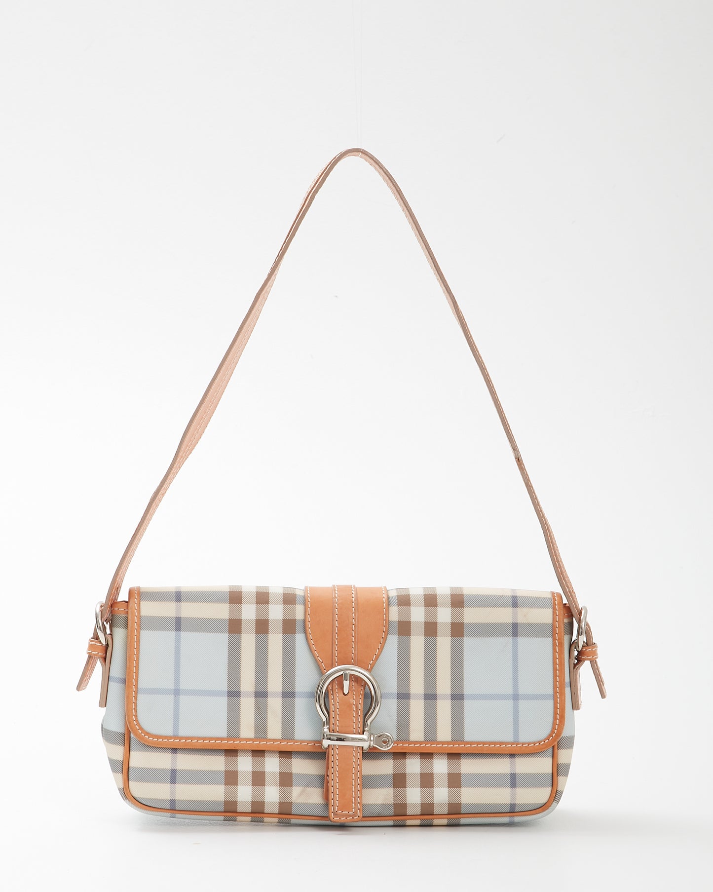 Baby Blue Nova Check Coated Canvas Buckle Shoulder Bag