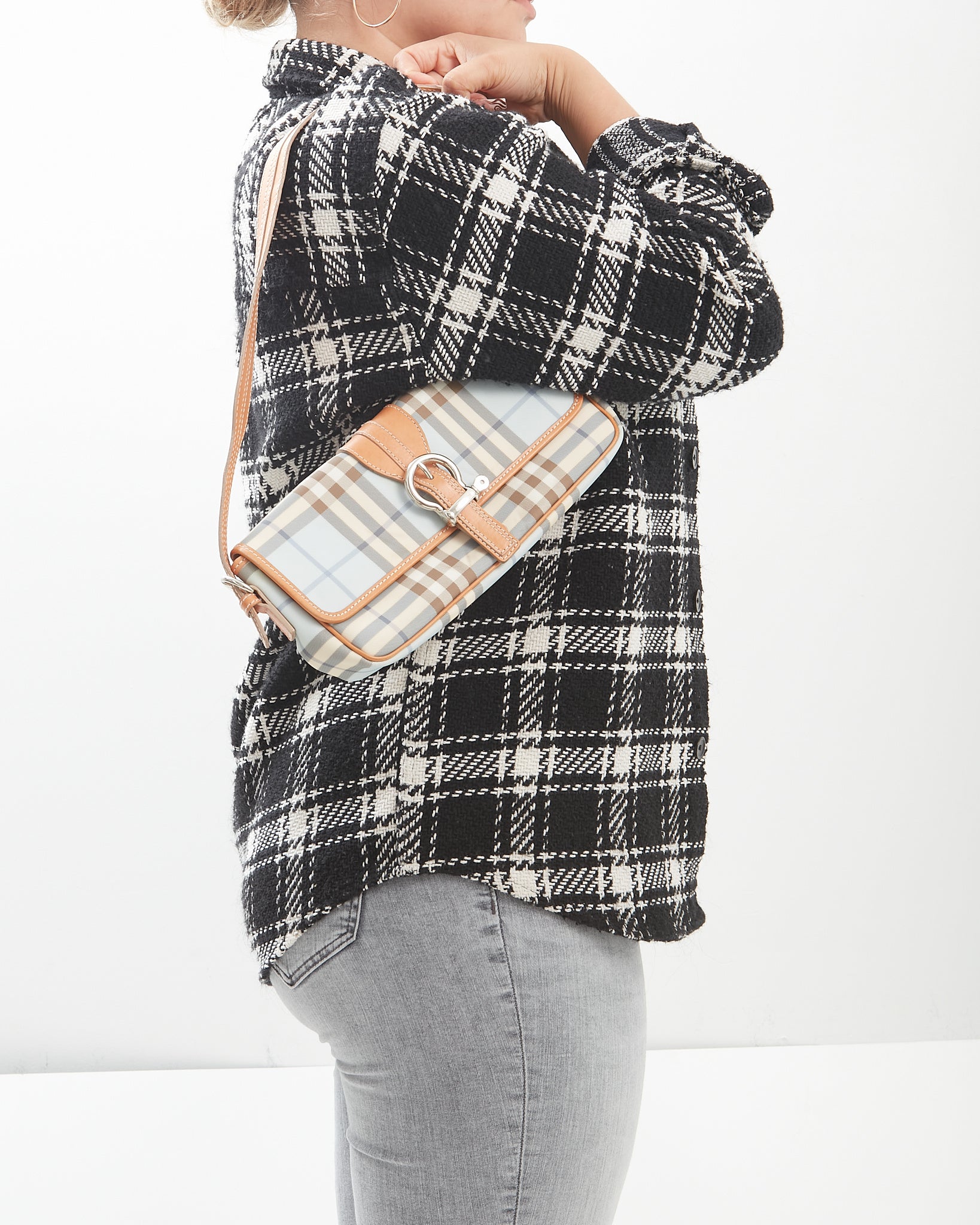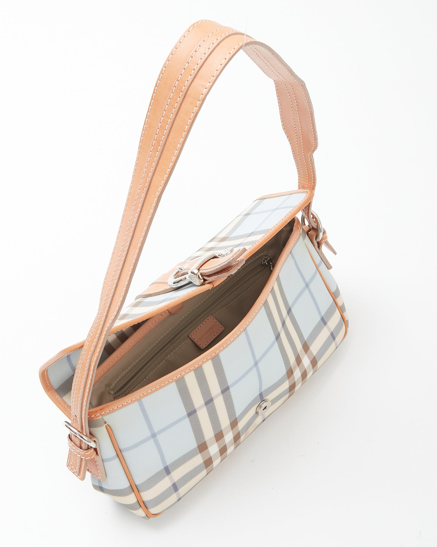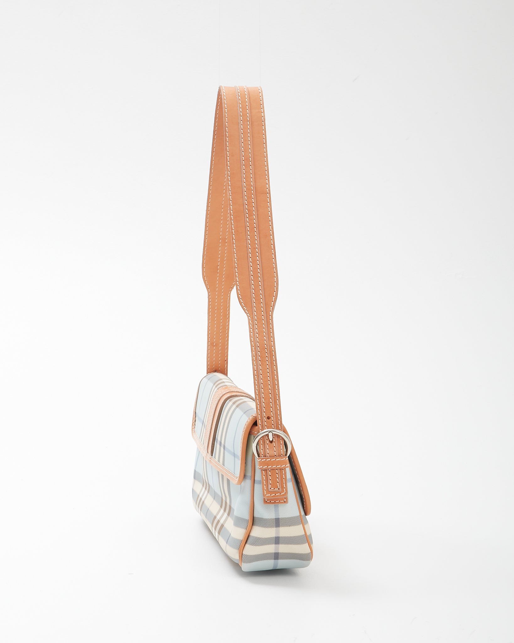 Baby Blue Nova Check Coated Canvas Buckle Shoulder Bag