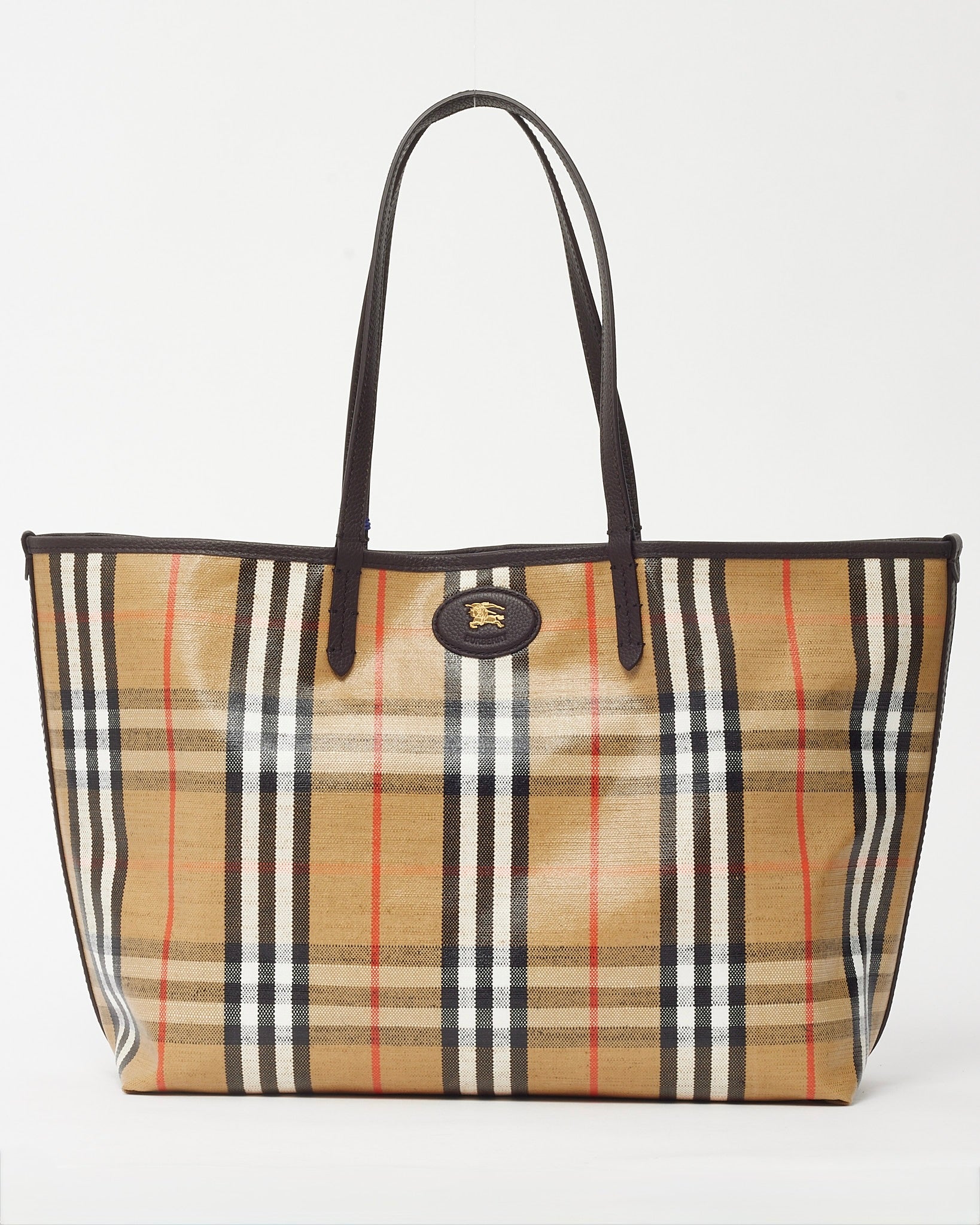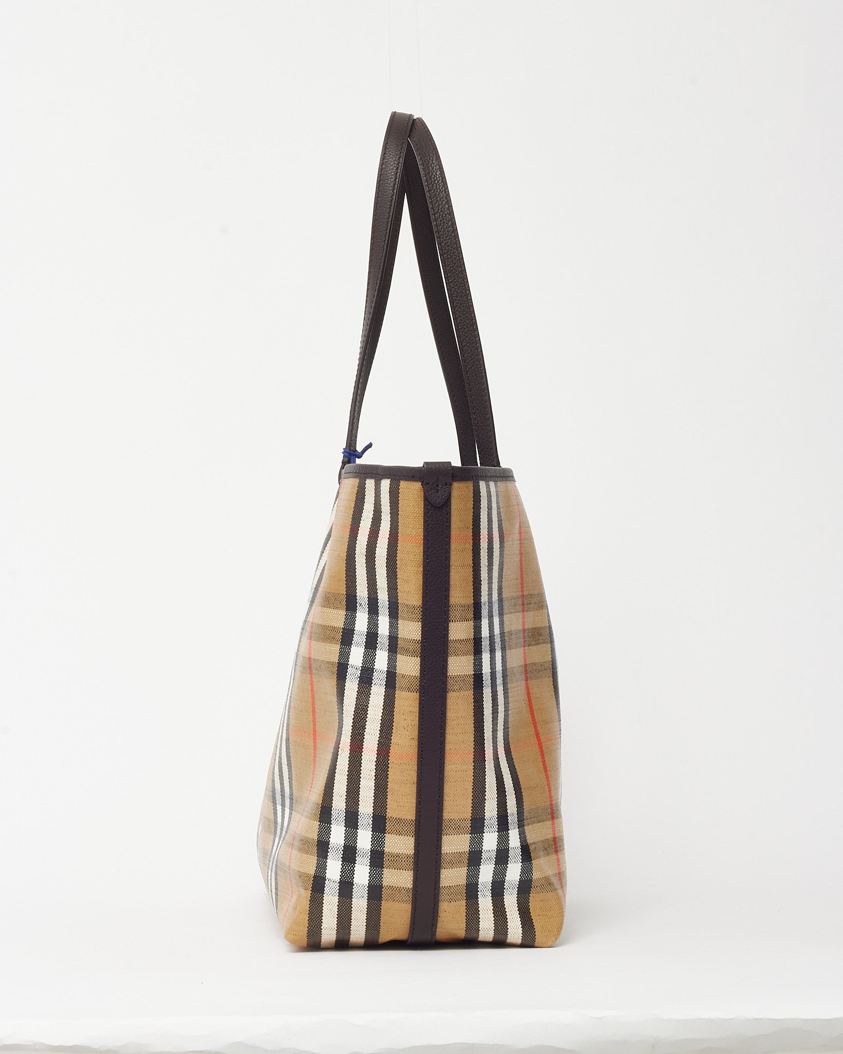 Beige Check Coated Canvas Medium Highland Reversible Tote Bag