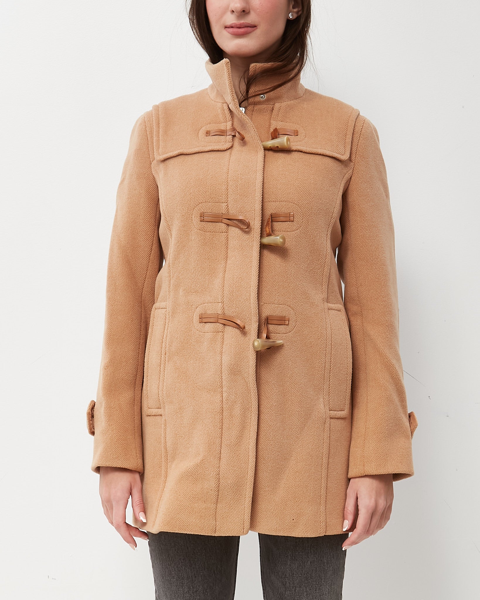 Beige Wool and Brown Leather Toggle Button Duffle Coat - 38/ US 4