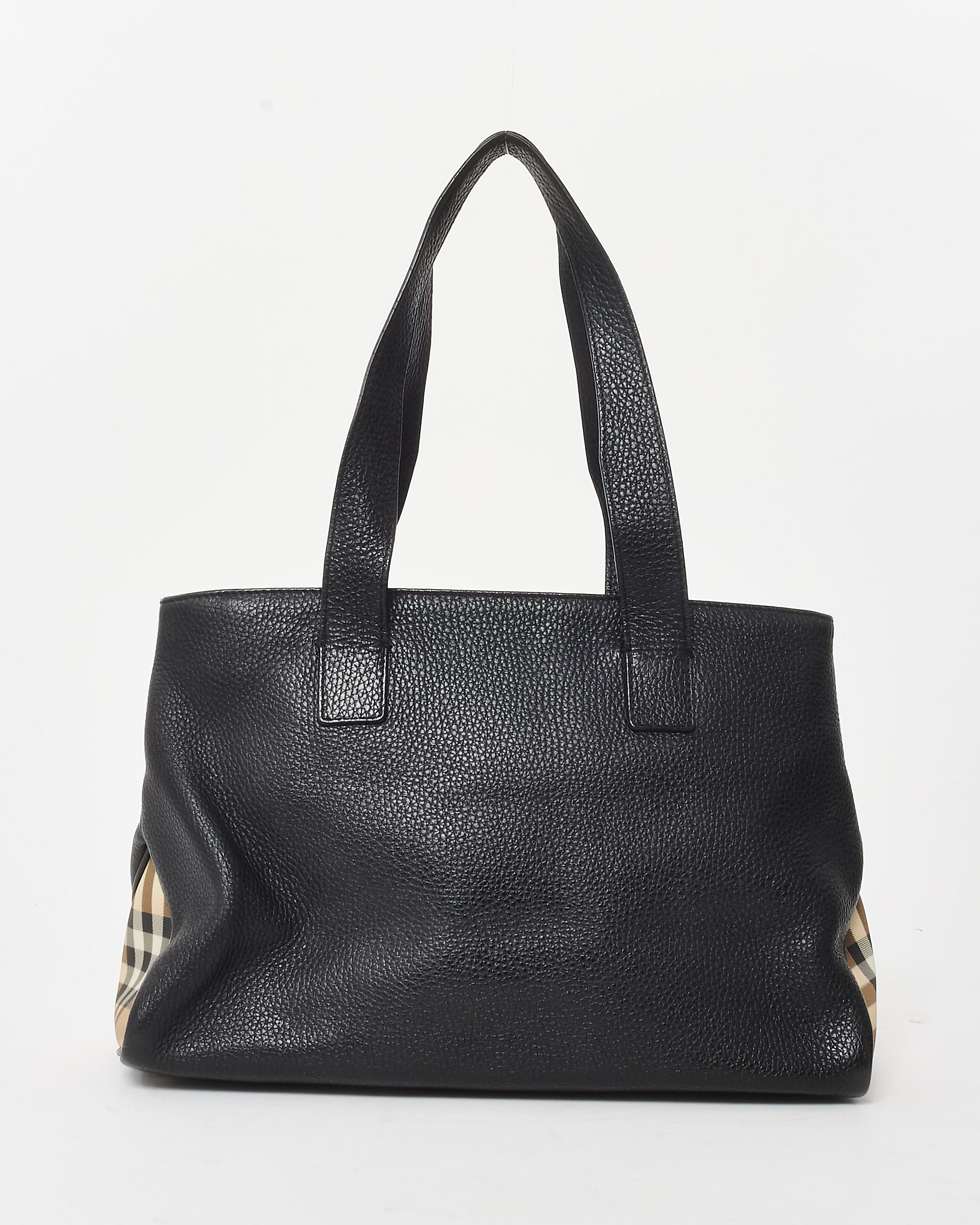 A refined blend of heritage and modern sophistication, the pre-owned authentic Burberry Black Leather and Novacheck Horn Toggle Tote Bag is a timeless accessory designed for effortless elegance. Crafted from smooth black leather, this tote is accented with Burberry’s signature Novacheck fabric panels, offering a classic contrast of textures.