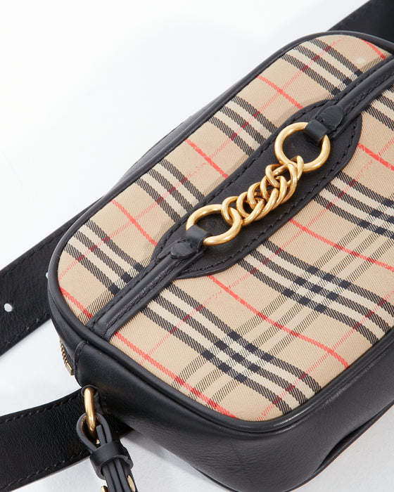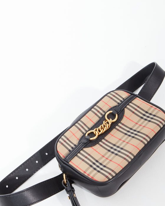 Black Leather/Canvas Haymarket Check Waist Bag
