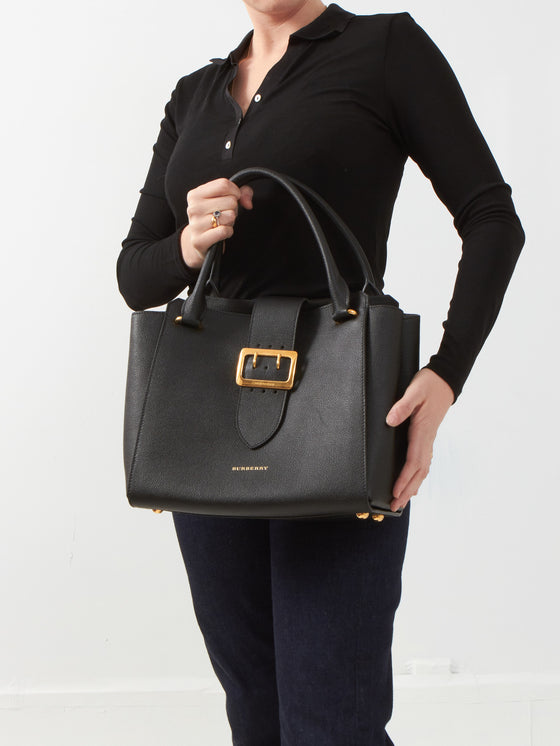 Black Leather Dashwood Medium Buckle Hobo Bag