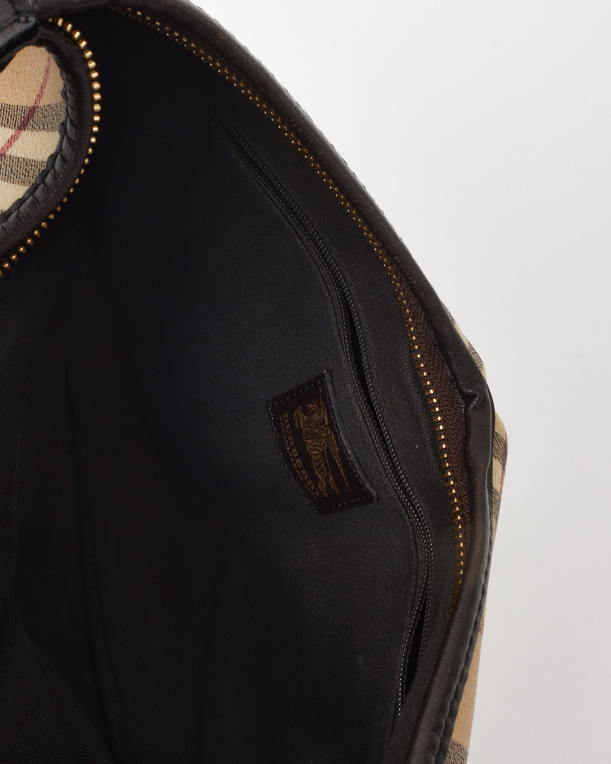 Brown Trim and Beige Haymarket Check Canvas Rydal Small Hobo Bag