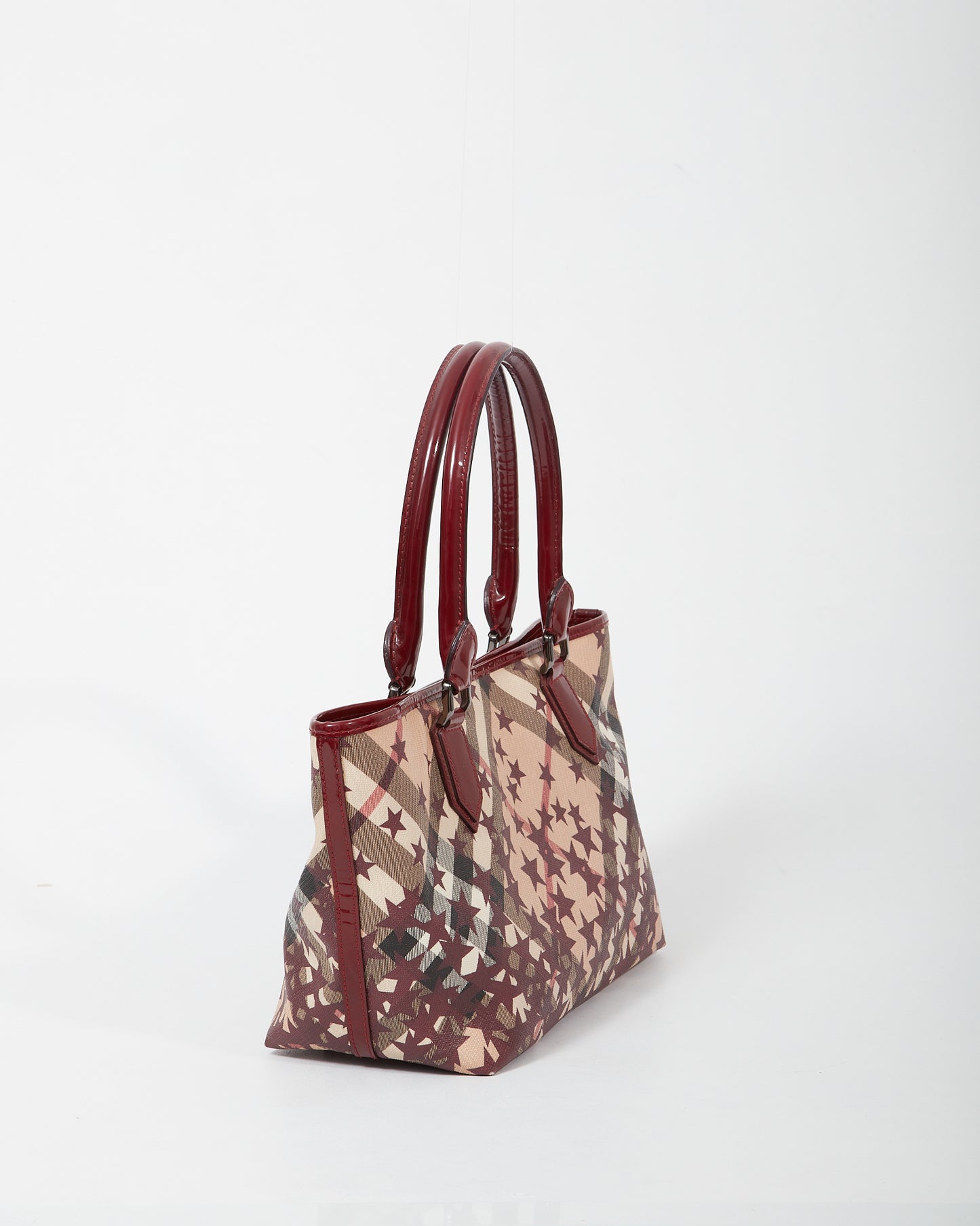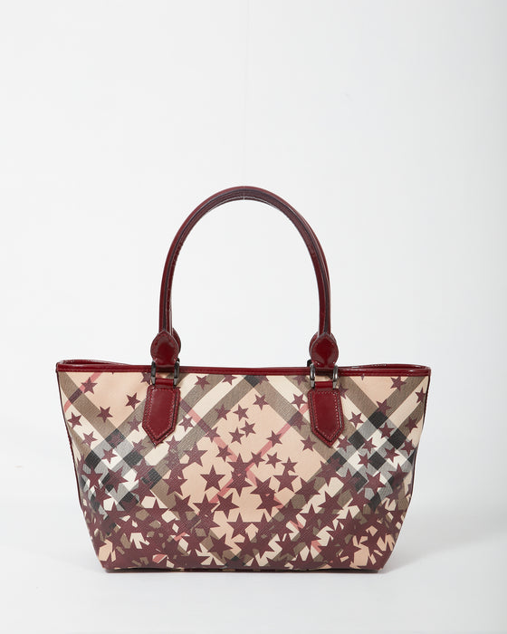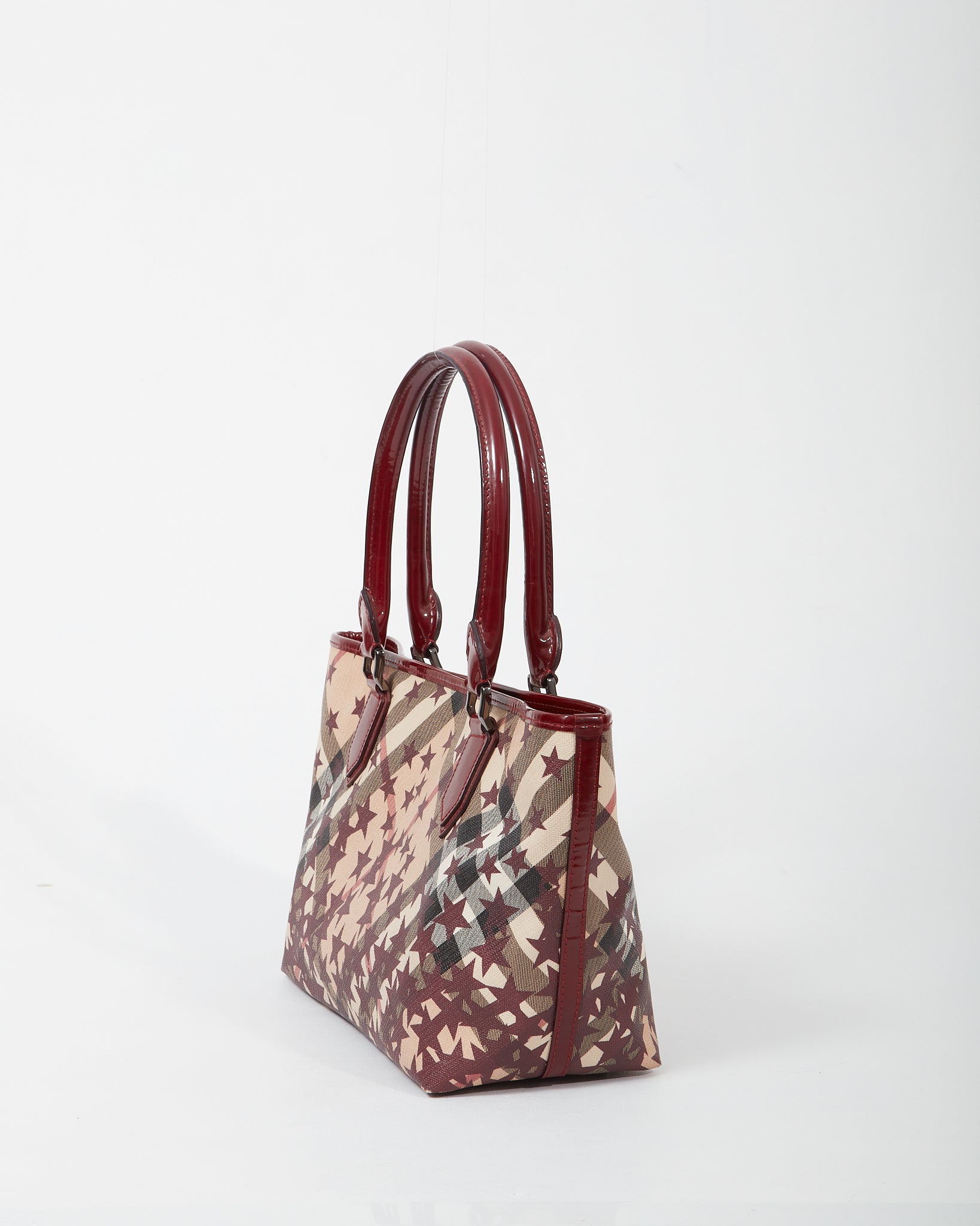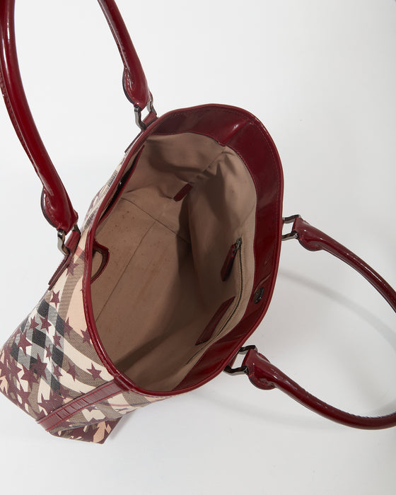 Burgundy/Beige Coated Canvas & Patent Leather Star Tote Bag