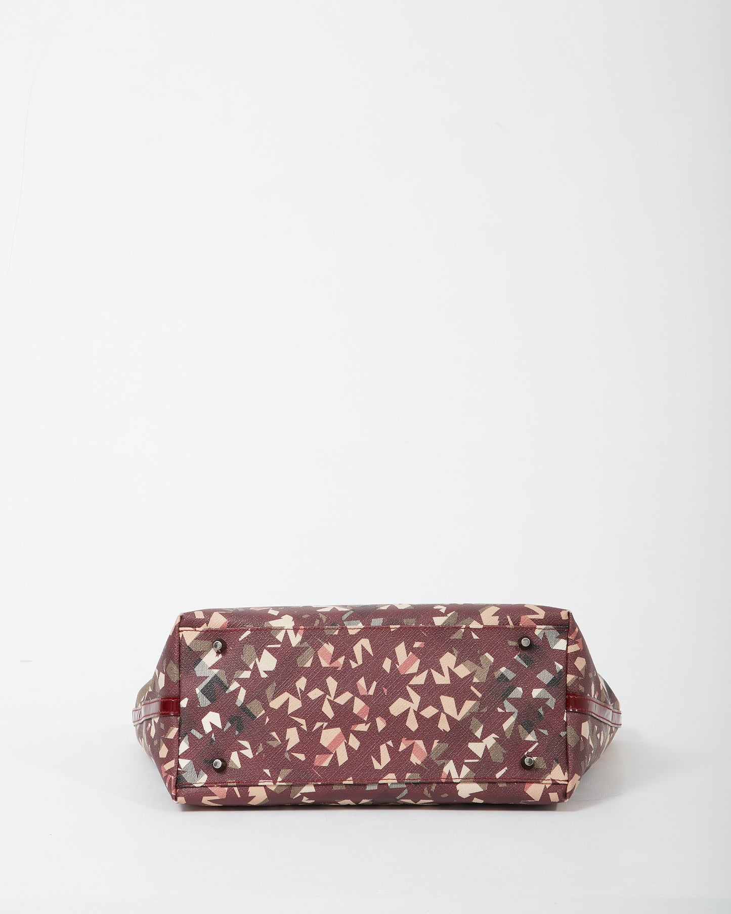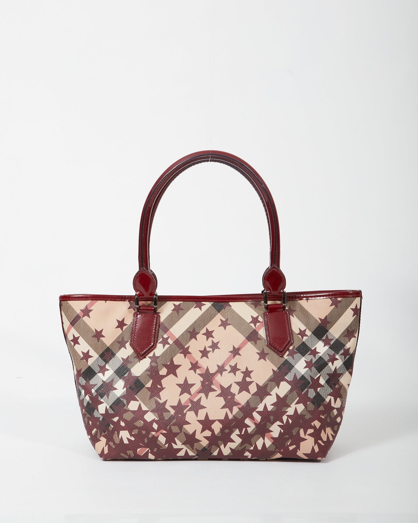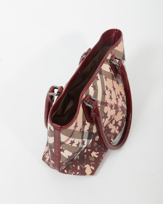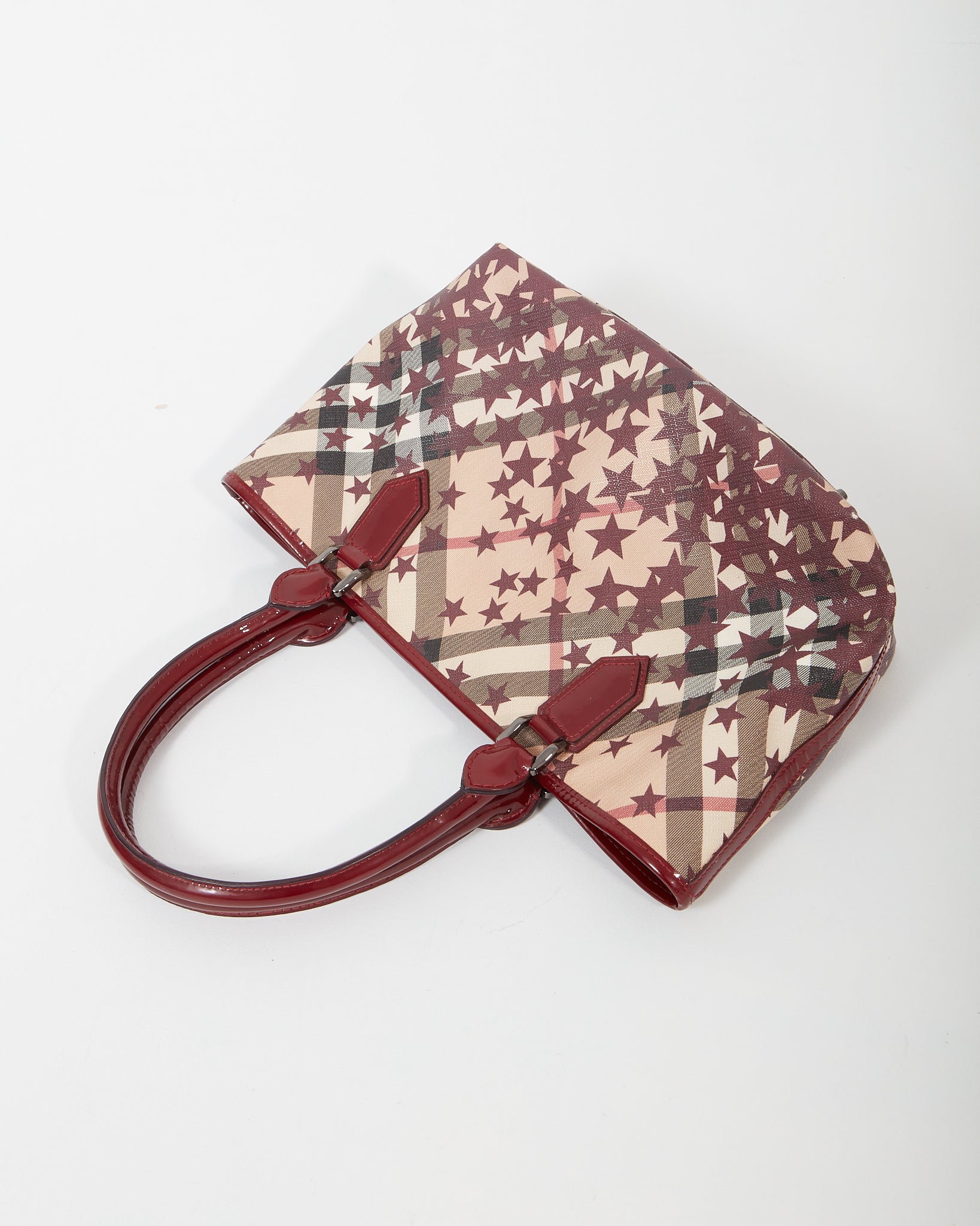 Burgundy/Beige Coated Canvas & Patent Leather Star Tote Bag