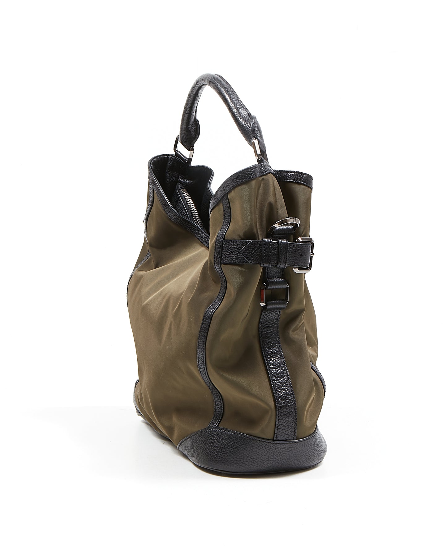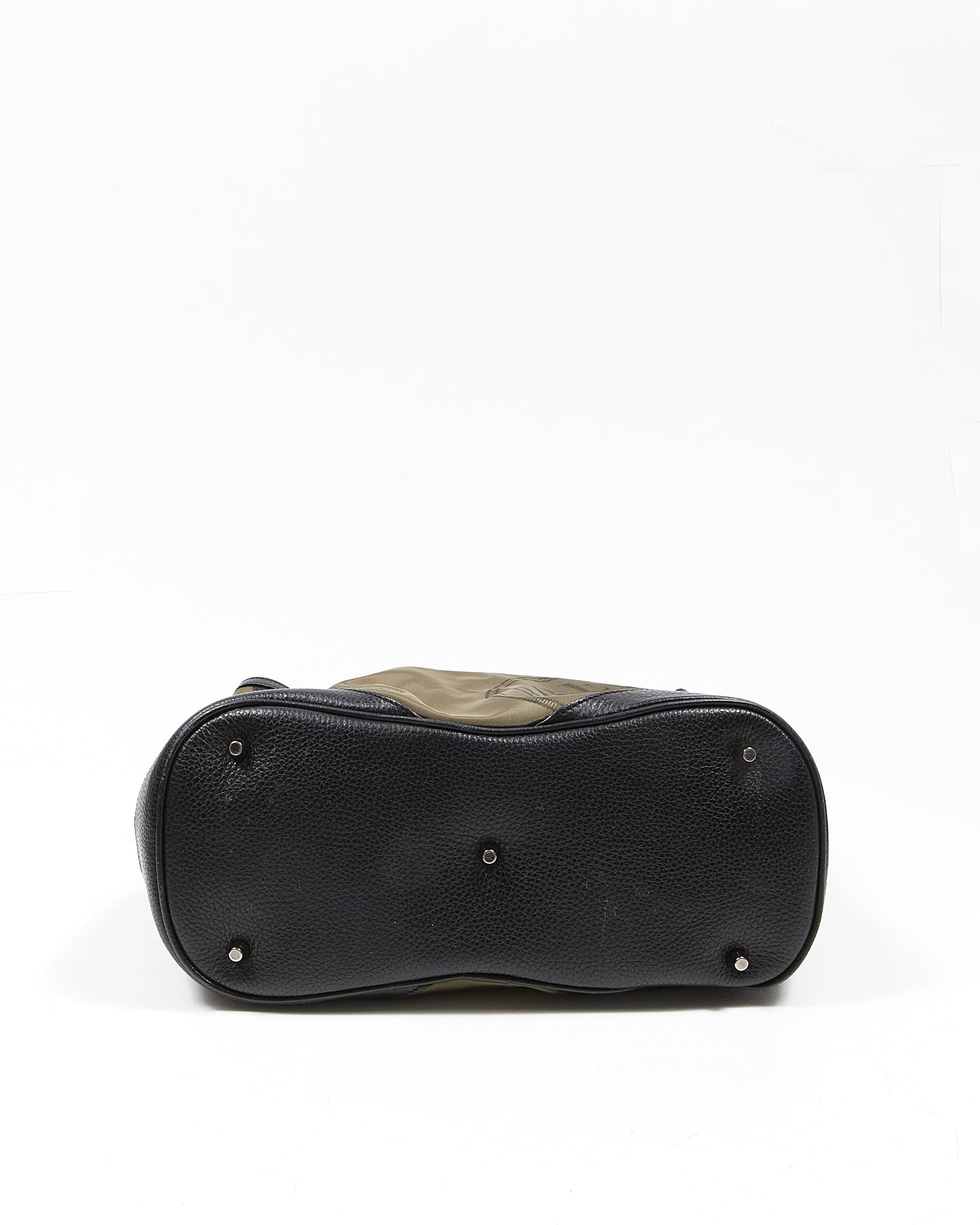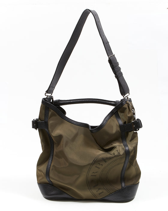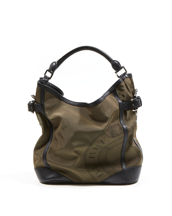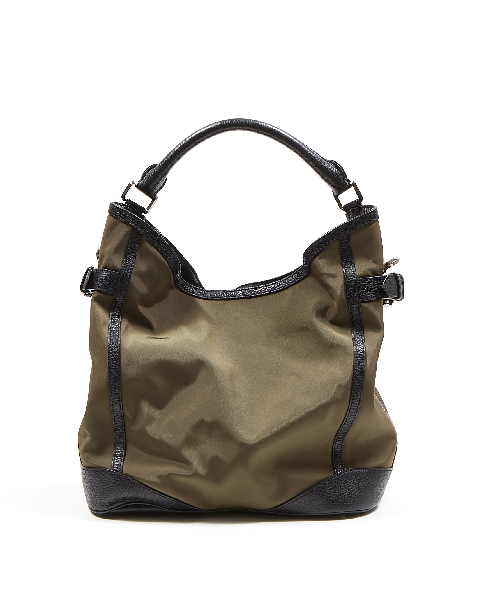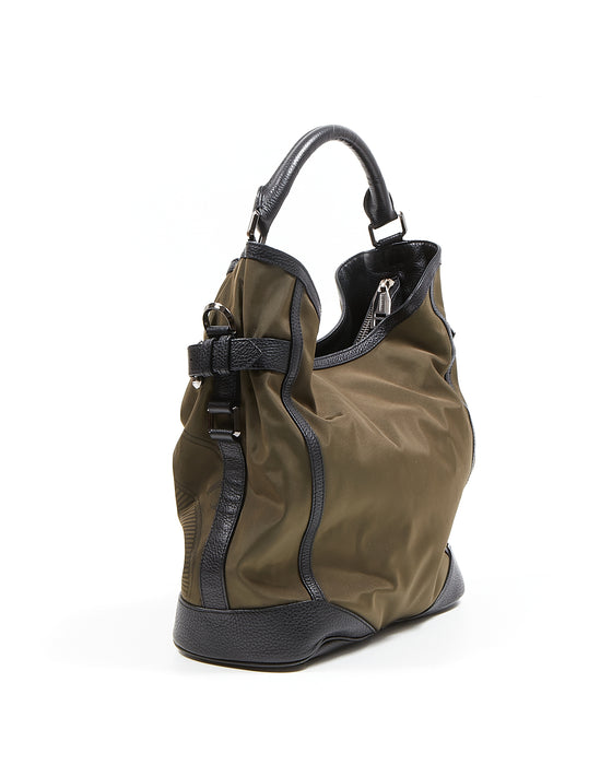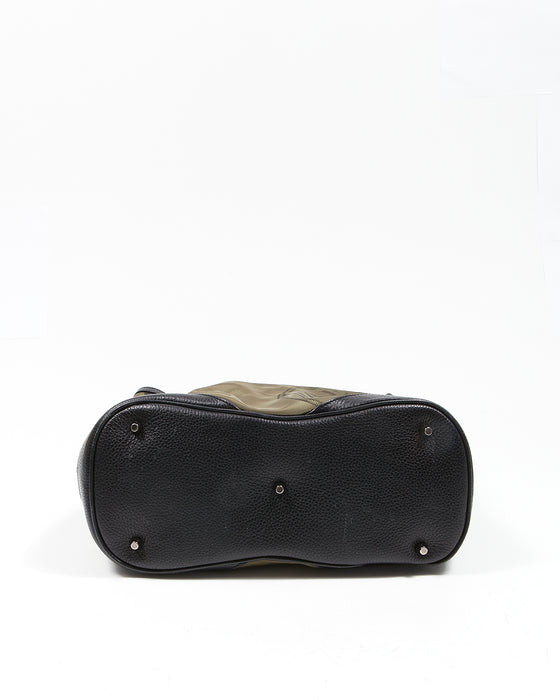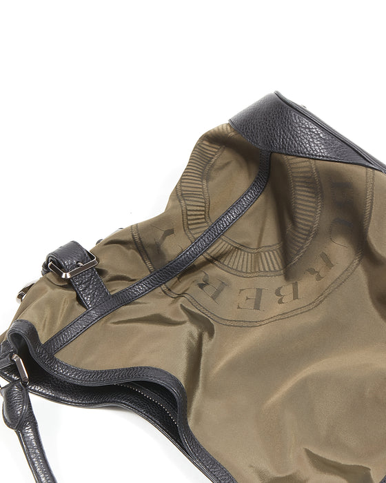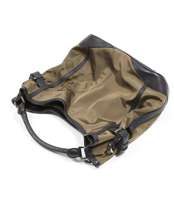 Khaki/Black Nylon & Leather Hobo Shoulder Bag