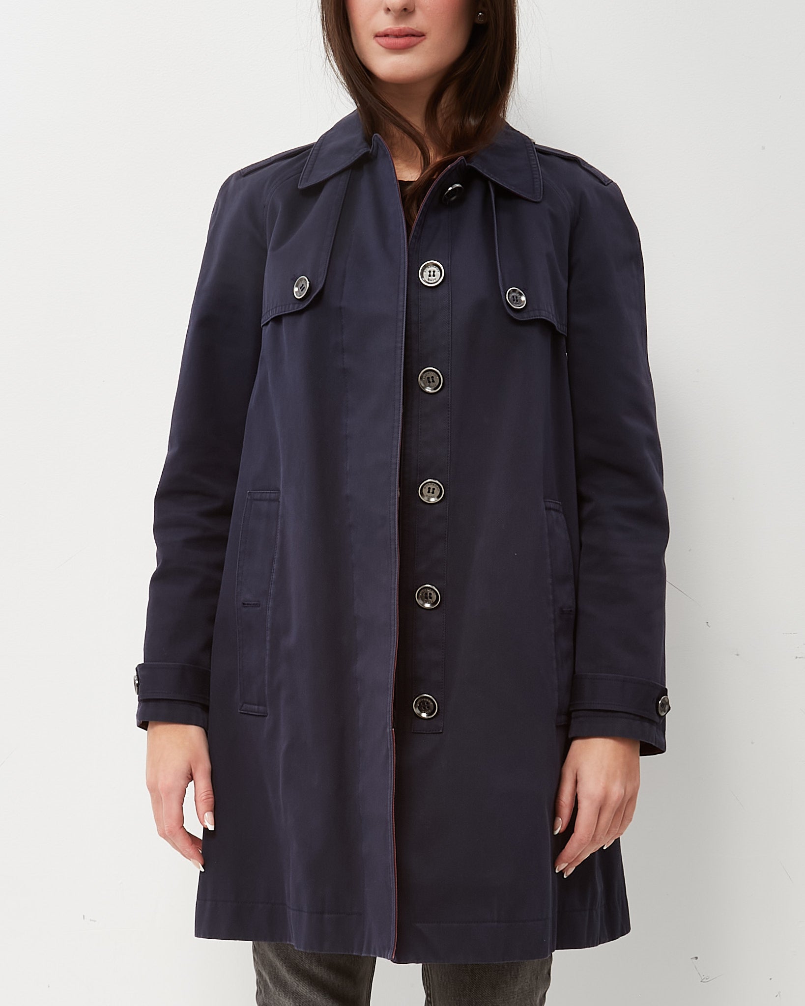 Navy Cotton Check Lining A-Line Trench Coat - US 4