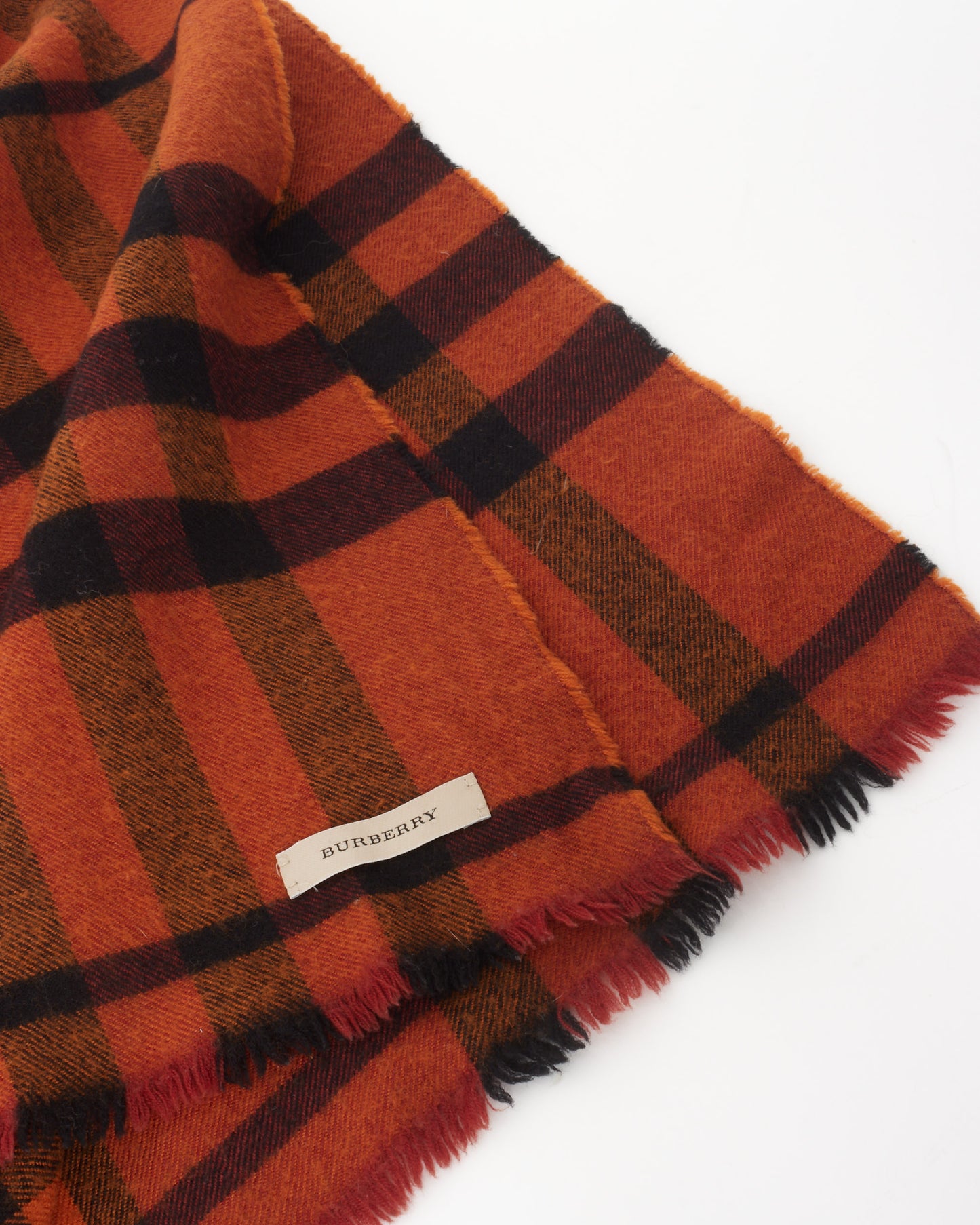 This is an authentic pre-owned Burberry Orange Plaid Cashmere Scarf is a luxurious accessory that combines the brand’s iconic check pattern with a vibrant orange hue, offering both warmth and style. 100% cashmere, renowned for its softness and insulating properties. Features Burberry’s signature plaid design in shades of orange, adding a pop of color to any ensemble and finished with classic fringe edges for a timeless look. Shop pre-owned authentic Burberry scarves and accessories at Retyche.