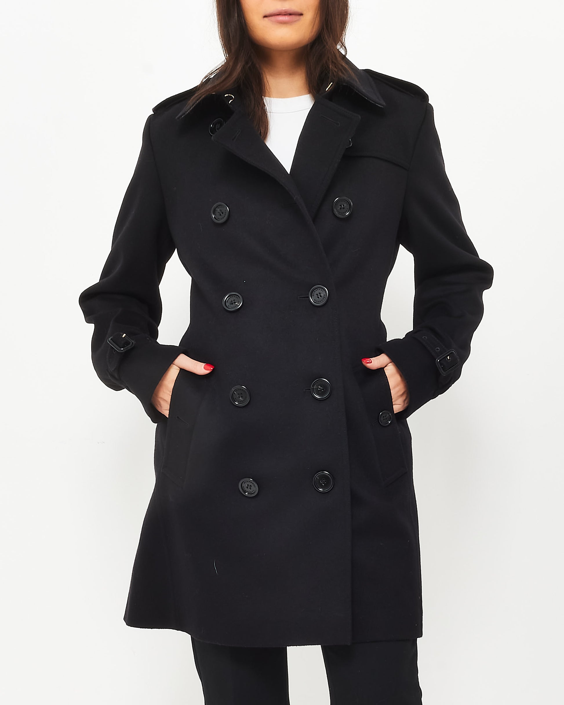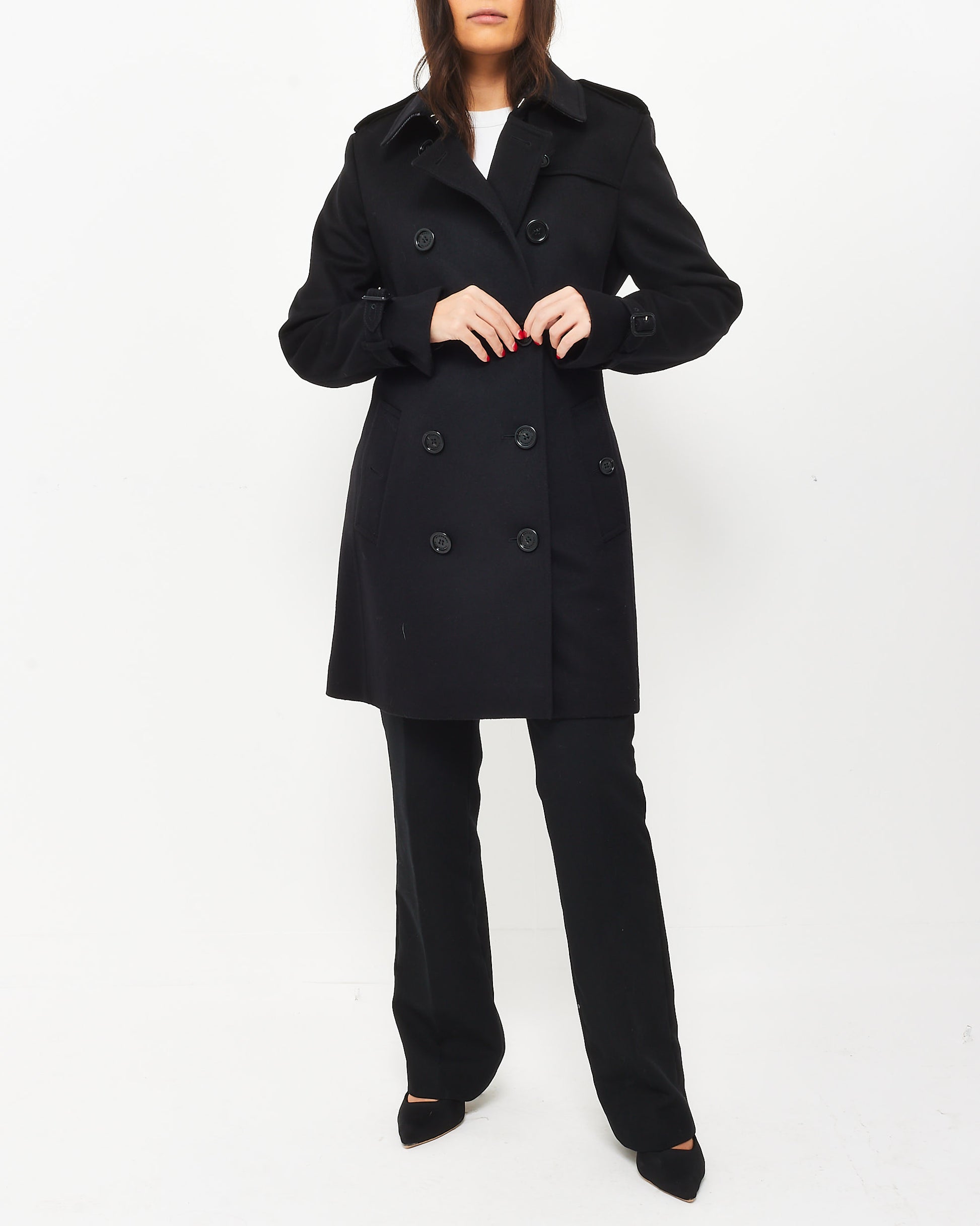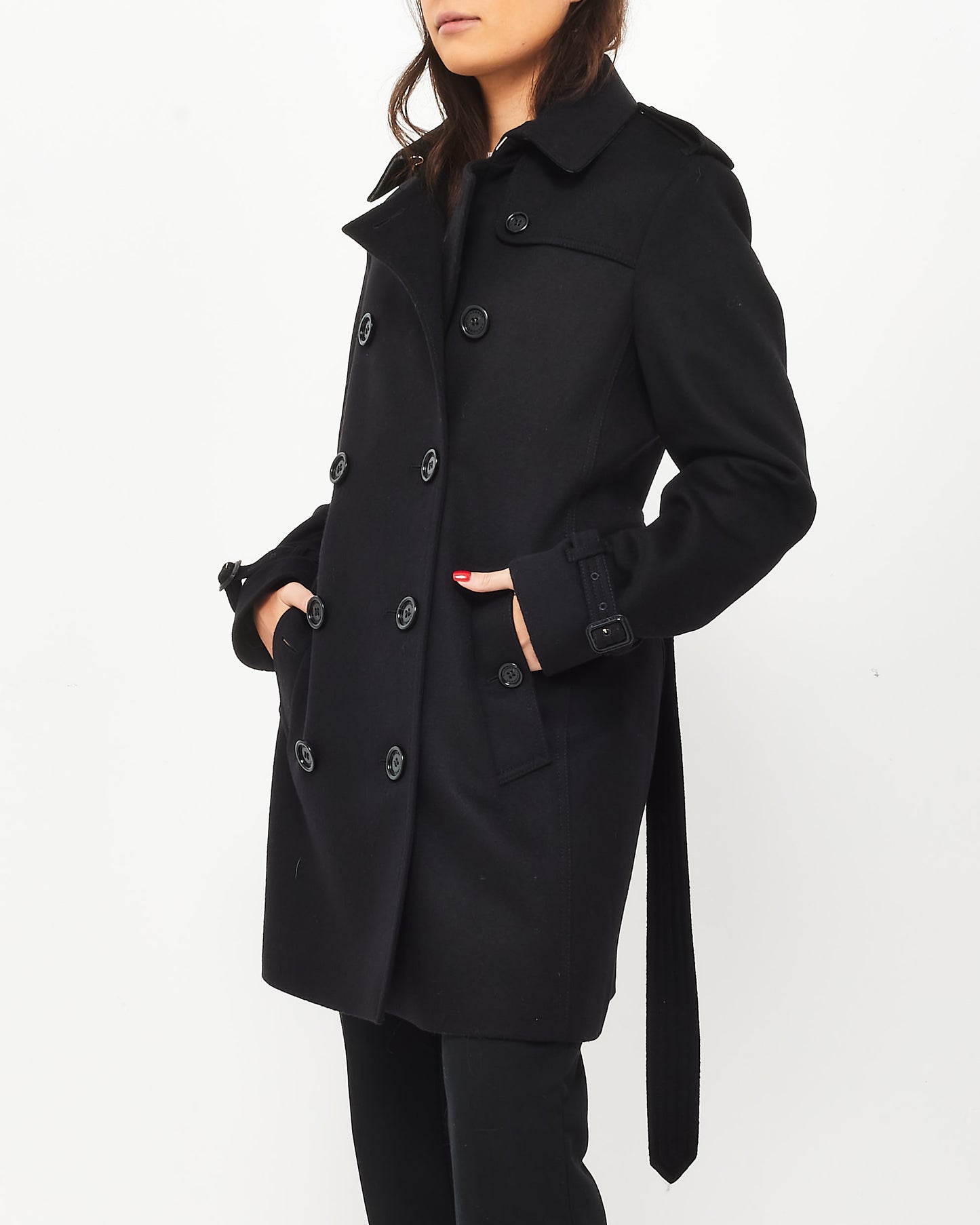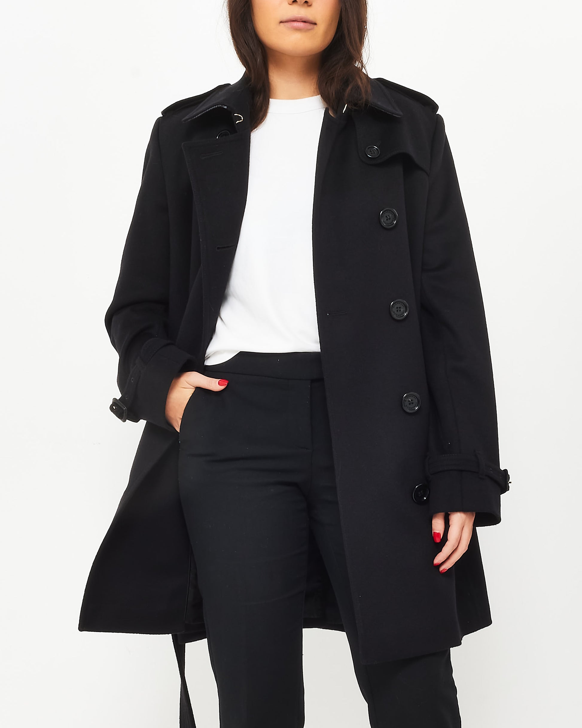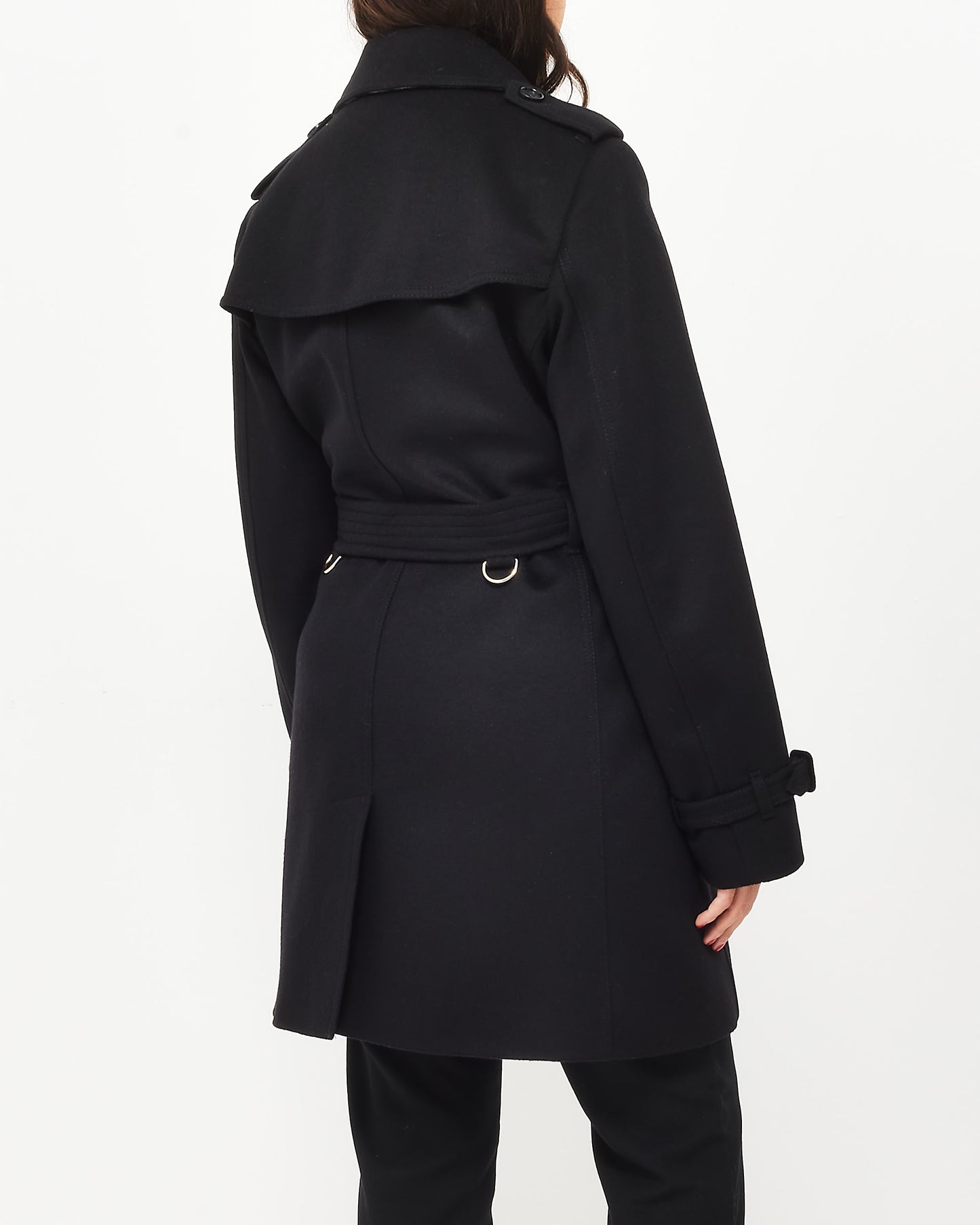 Black Wool & Cashmere Double Breasted Belted Coat - US 12
