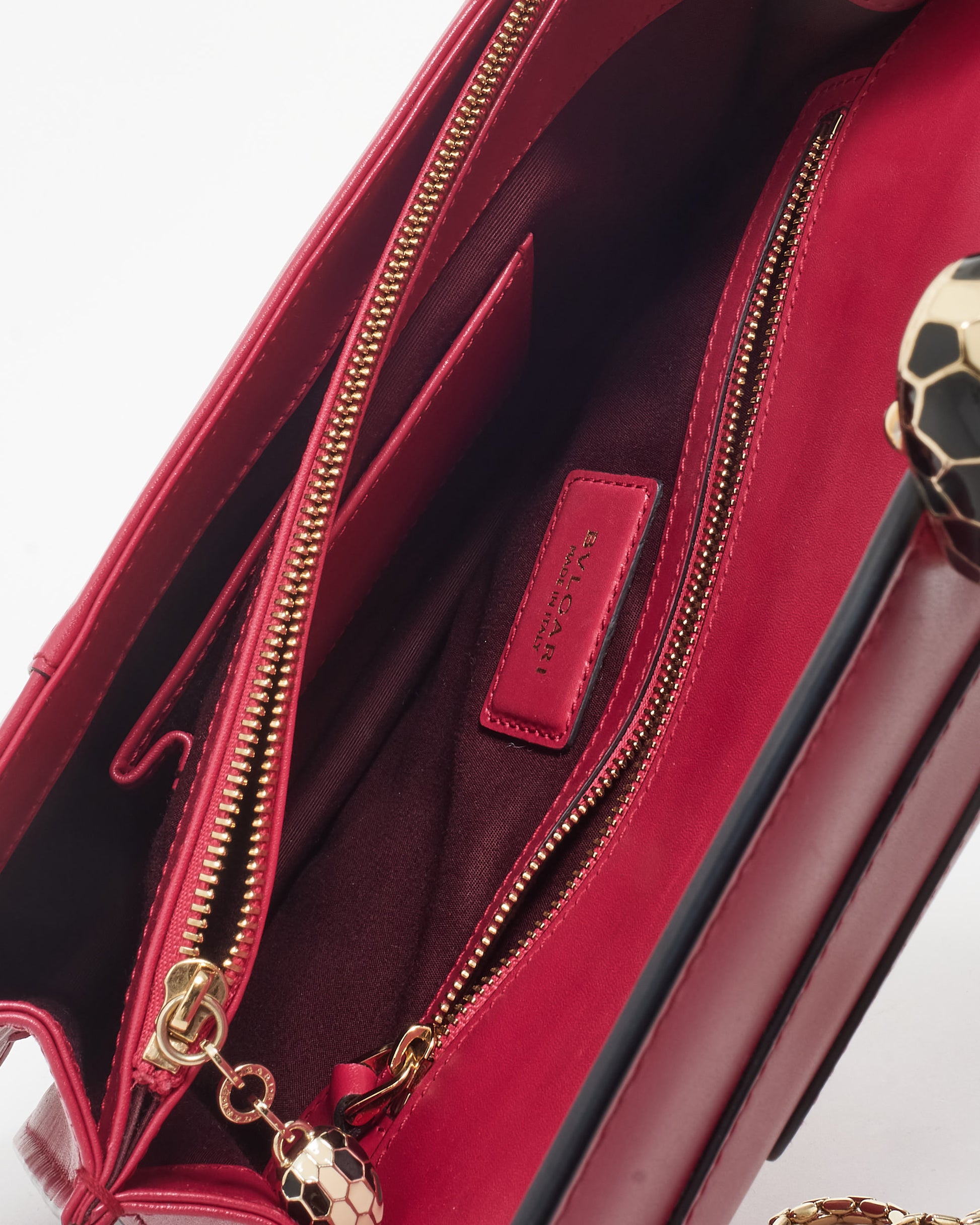 Elevate your accessory game with the authentic pre-owned Bvlgari Pink Fuchsia Serpenti Forever Shoulder Bag, a stunning embodiment of Italian craftsmanship and timeless elegance. The bag is crafted from premium vibrant pink leather, front flap, adjustable chain strap, the signature Serpenti snakehead motif and closure and gold hardware. The bag features a sleek silhouette with a structured design, fabric lined interior with slit and patch pockets and zipper compartment. Shop authentic pre-owned Bvlgari at Retyche.