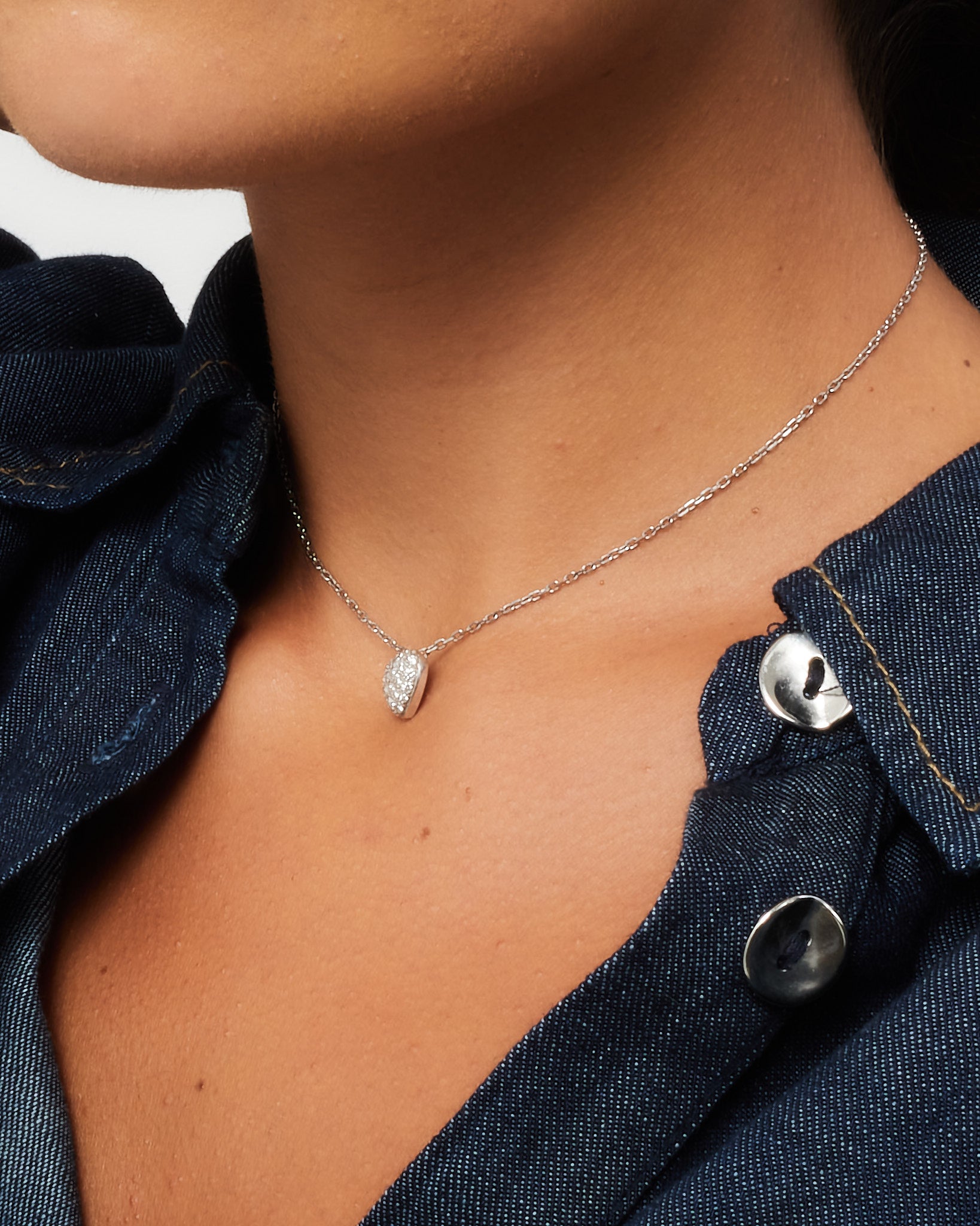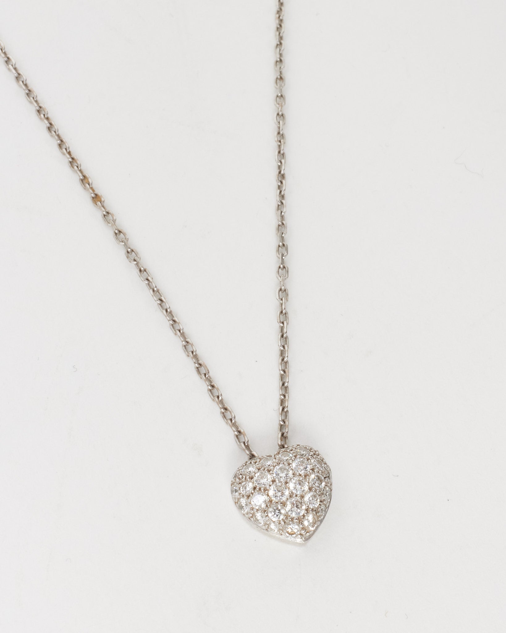 18K White Gold Diamond Small Heart Pavé Pendant Necklace
