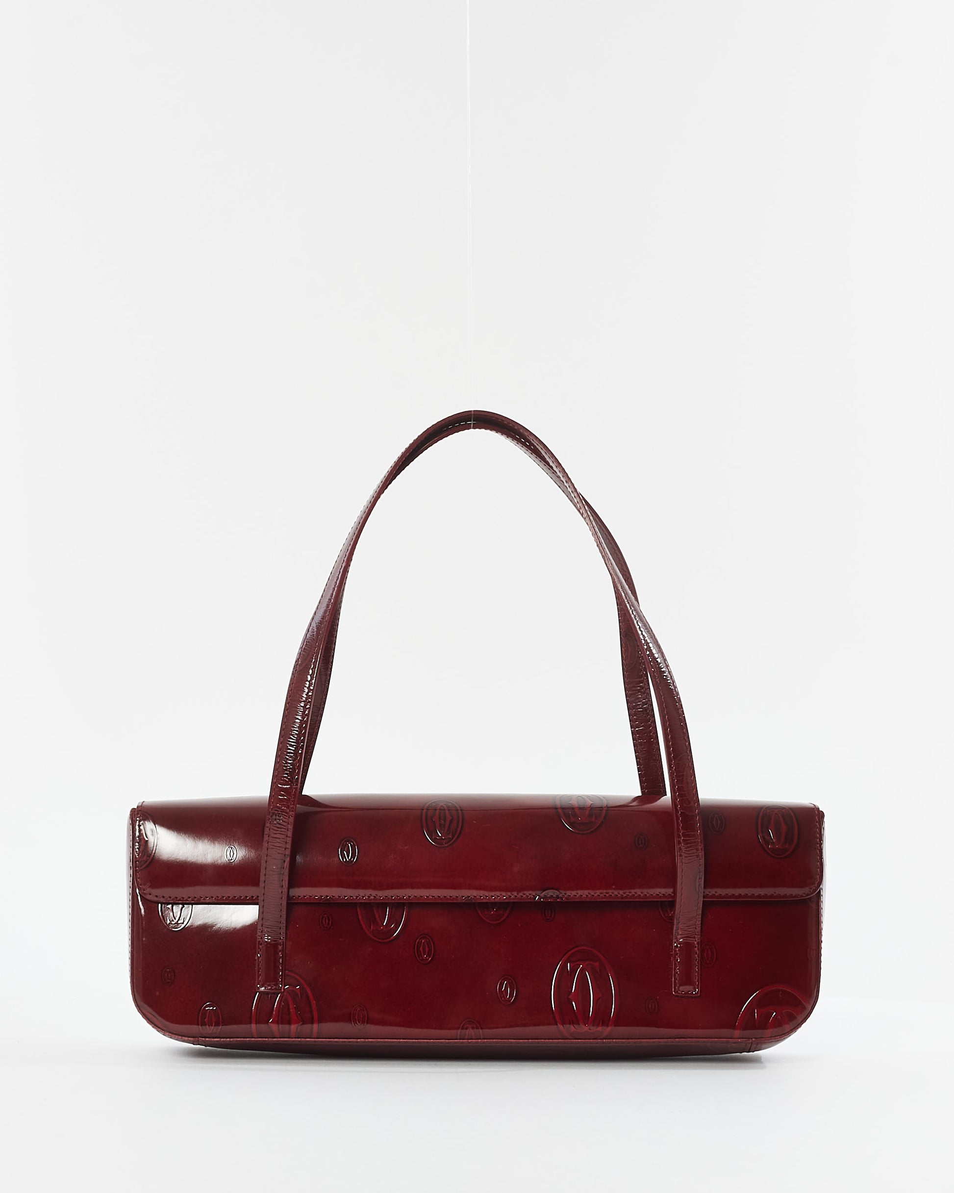 Explore Cartier's exquisite collection of handbags, featuring this certified pre-owned Bordeaux Patent Leather Cabochon Shoulder Bags. Embodying timeless elegance and modern sustainability, each piece, including favorites like this, is authenticated by Retyche. Discover sustainable luxury — shop our current treasures or find inspiration for your next coveted find.