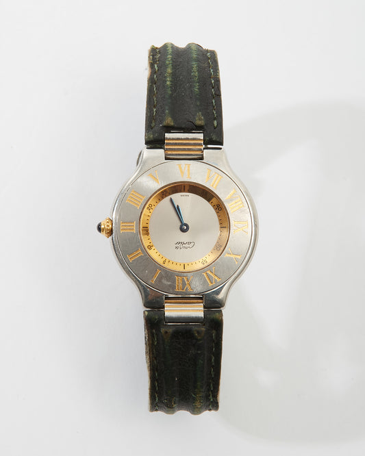 Must De Cartier 21 Stainless Steel & Leather Band Watch