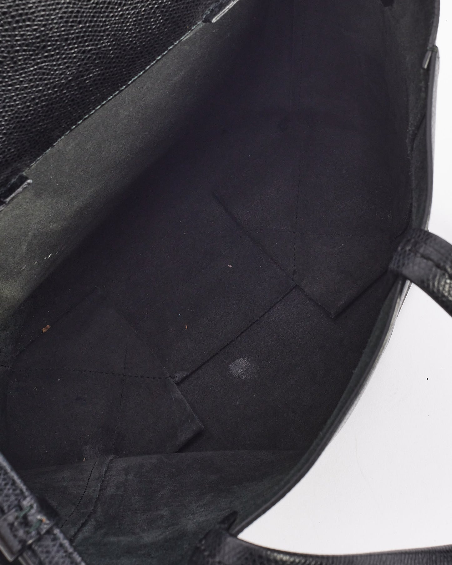 Black Leather Cabas PM Tote Bag with Shoulder Strap