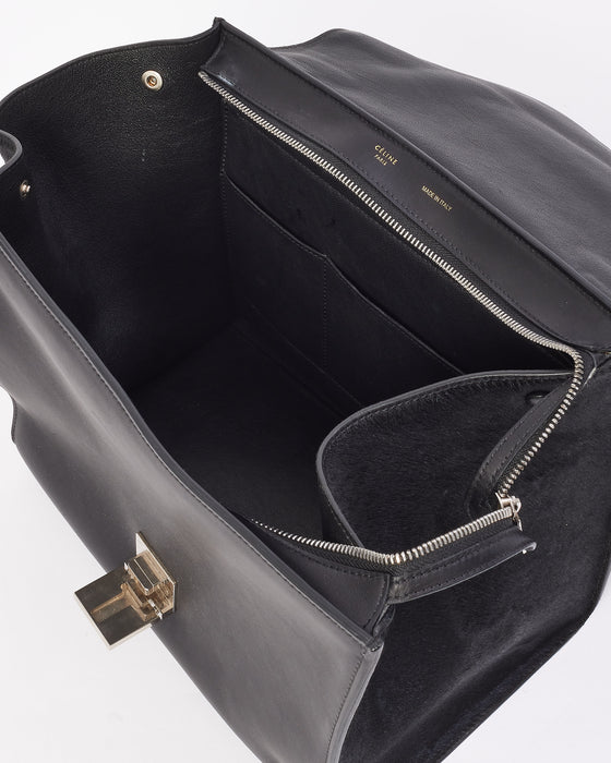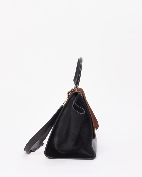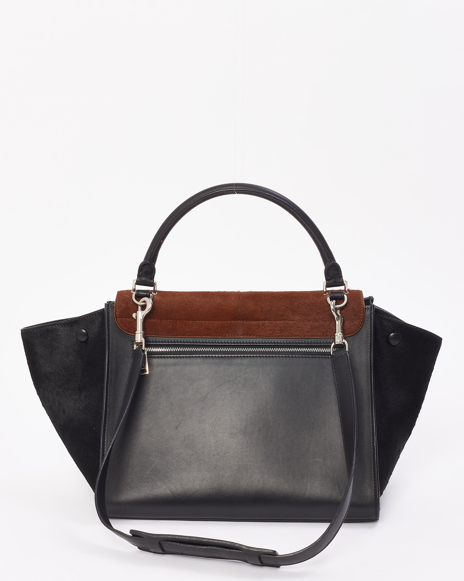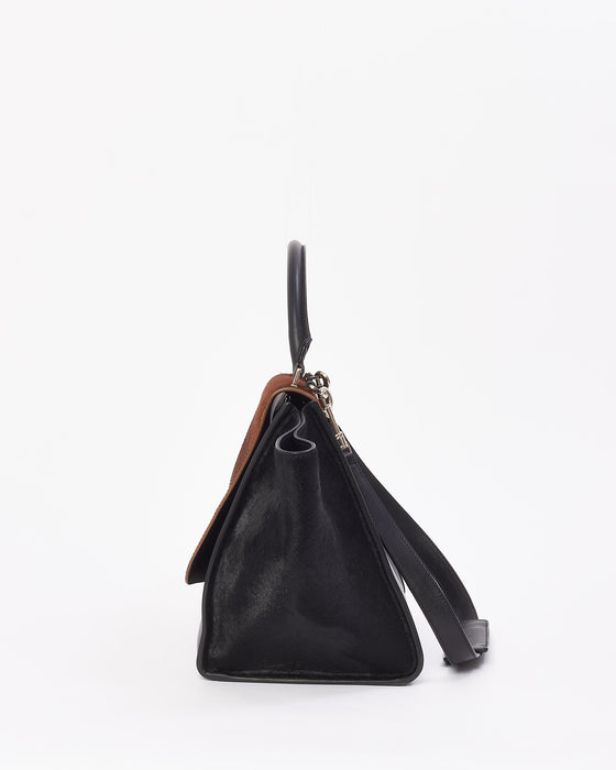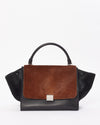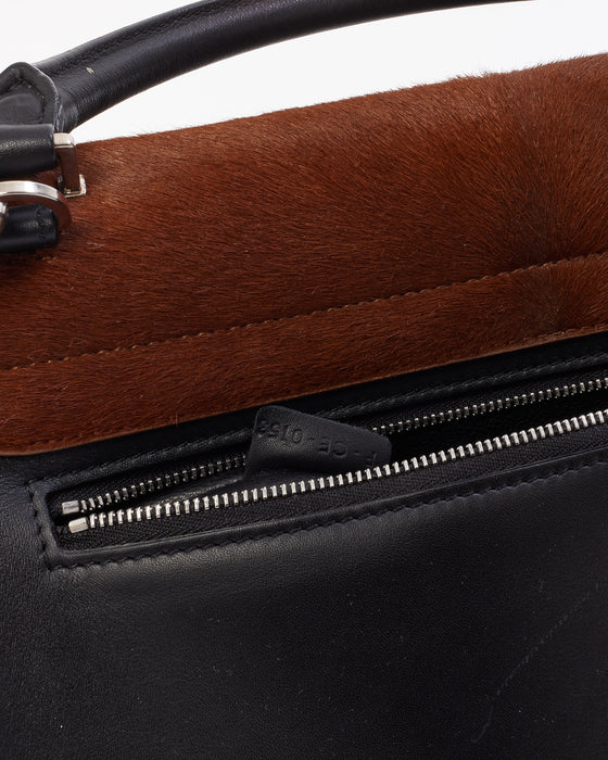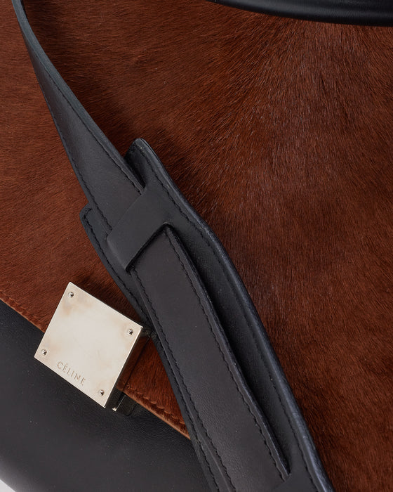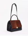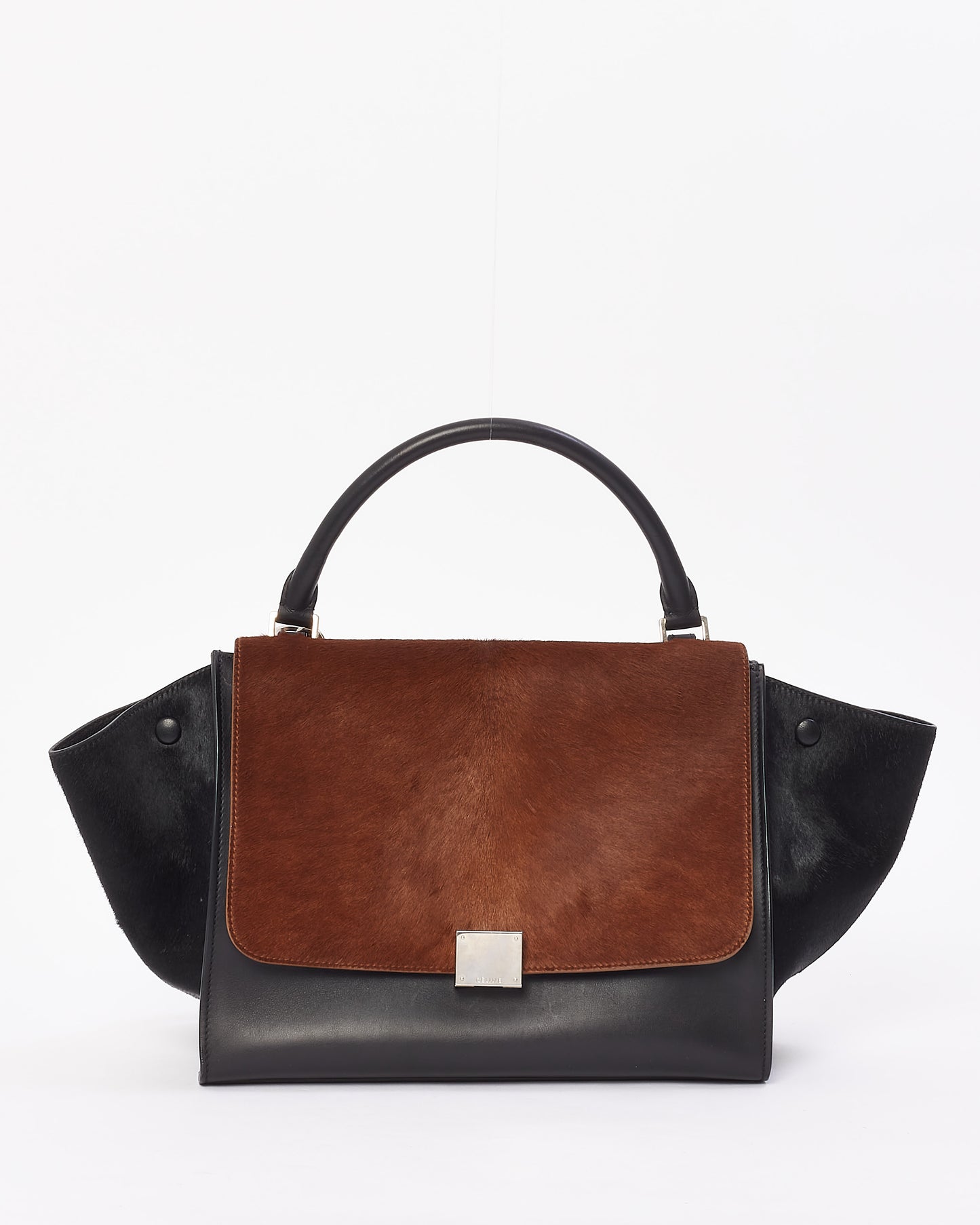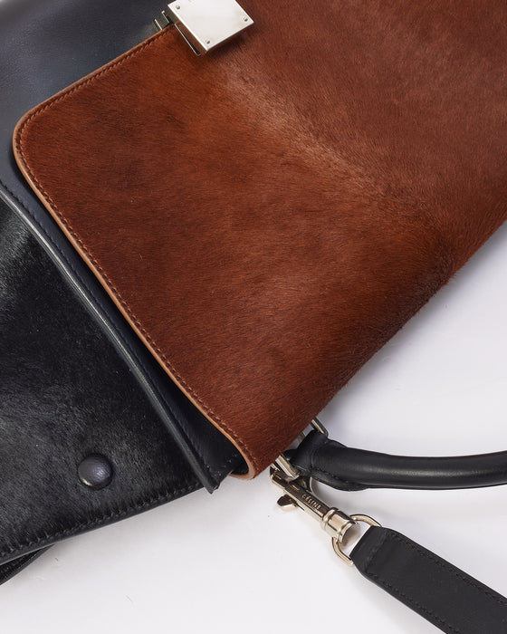 Brown & Black Pony Hair & Leather Medium Trapeze Bag