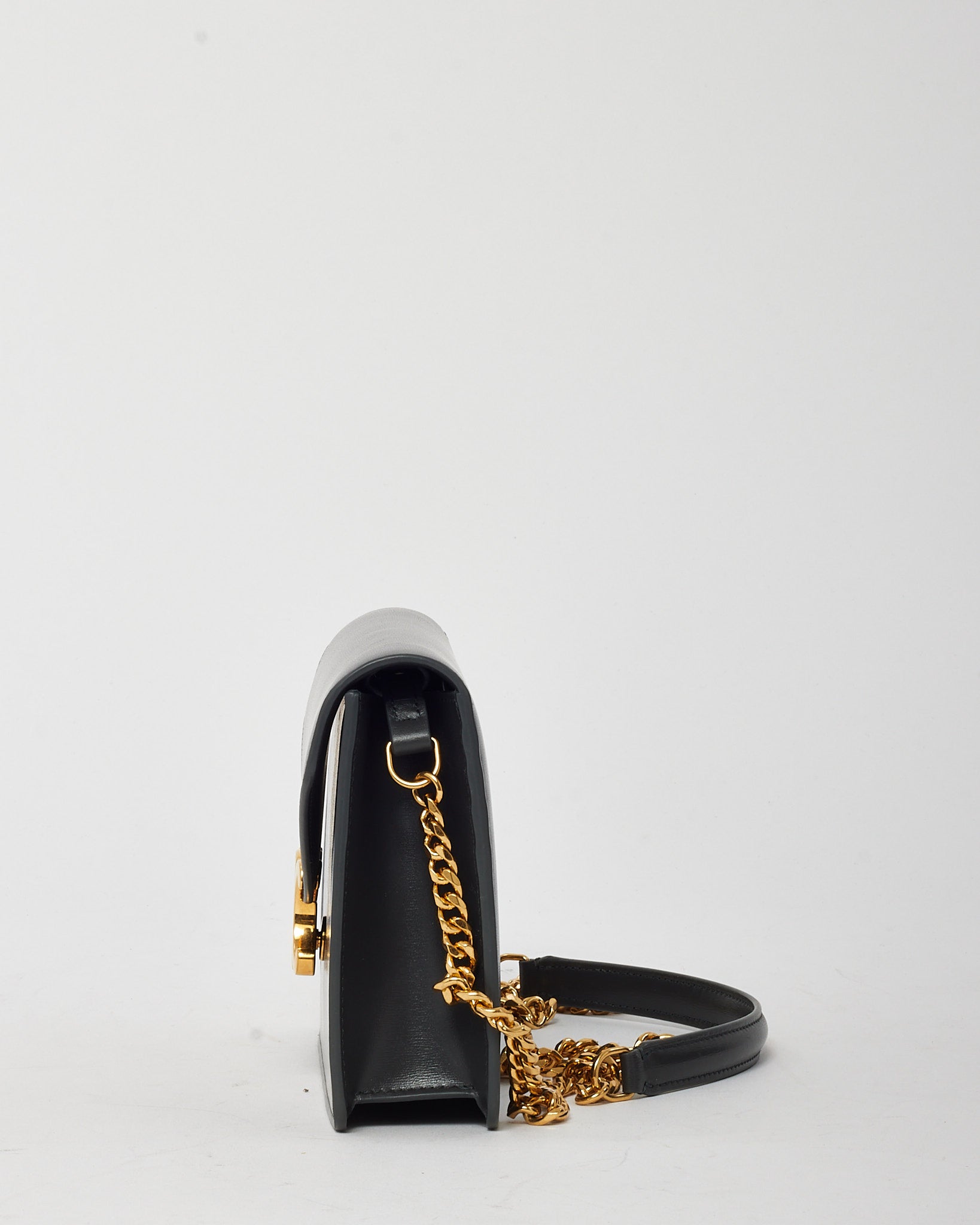 Grey Shiny Calfskin Leather Margo WOC Wallet on Chain Crossbody Bag