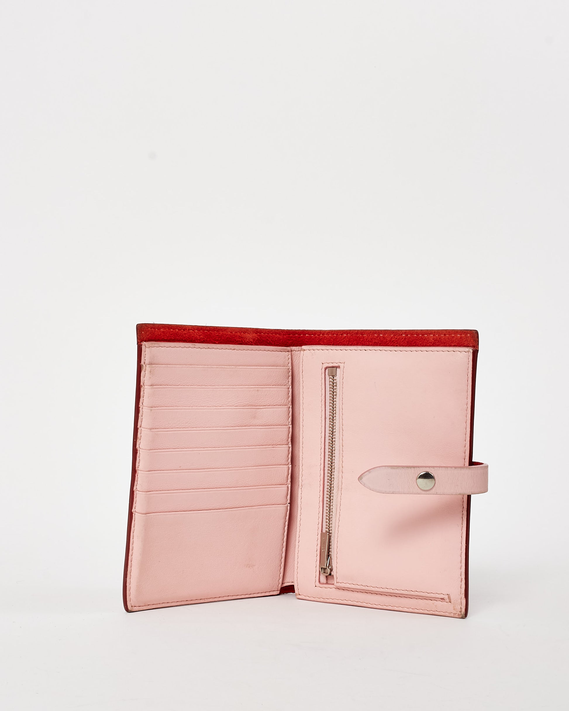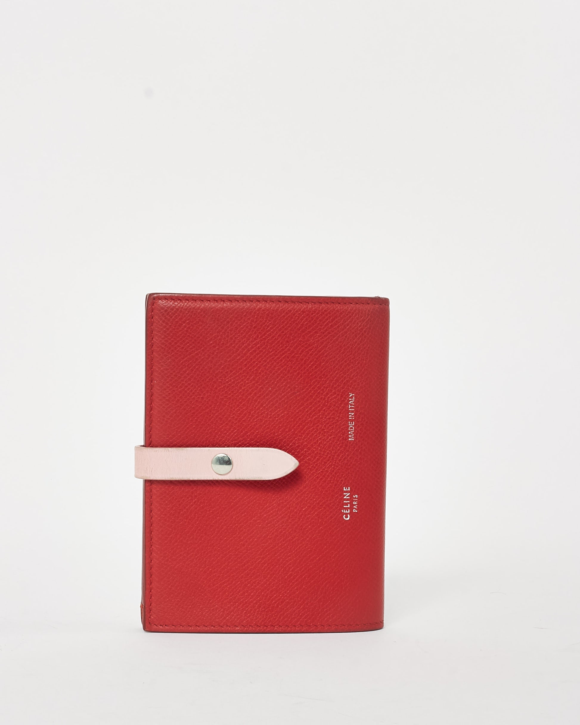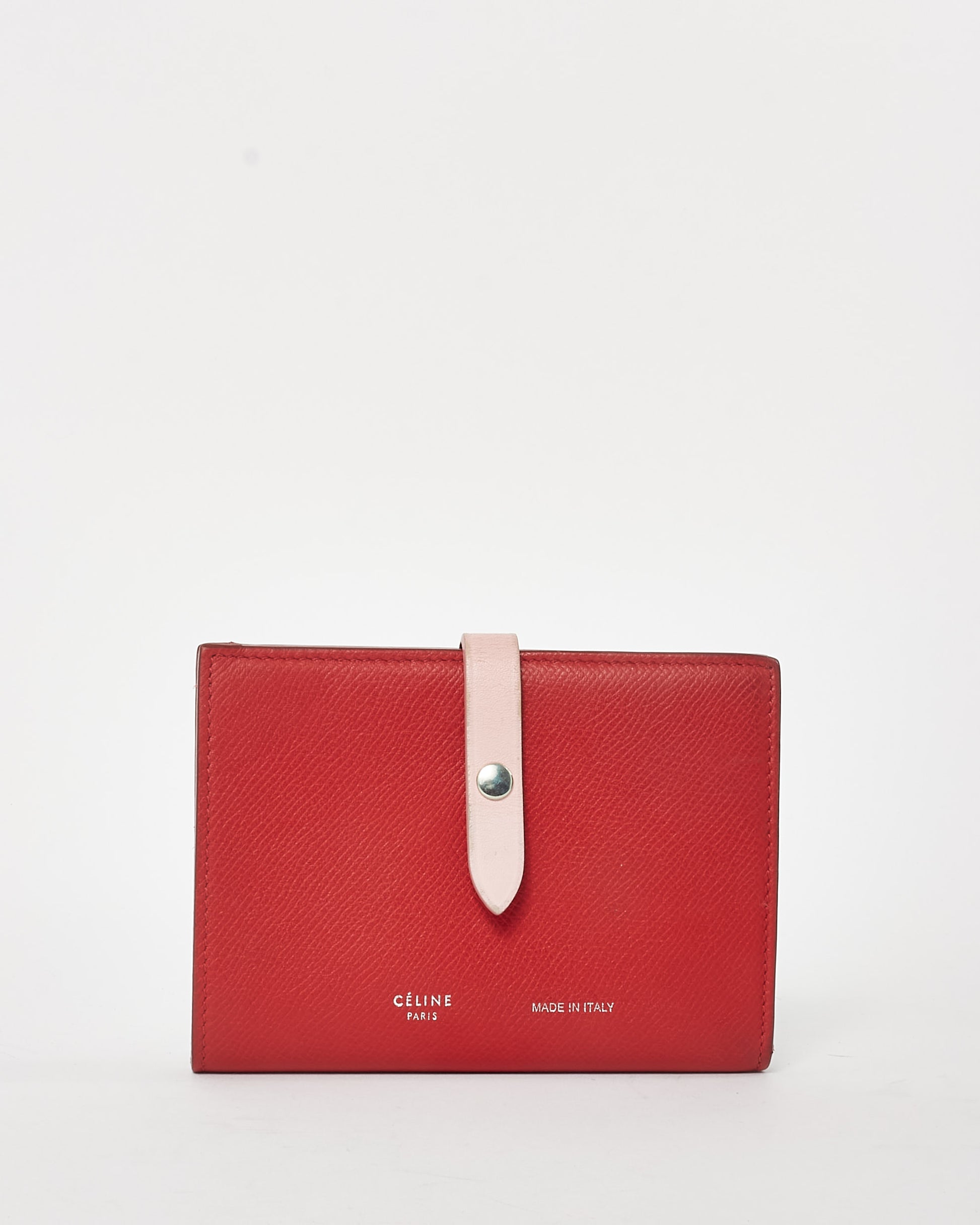 Elevate your accessories game with this authentic pre-owned Celine Red Leather Wallet with Pink Strap, a chic and compact essential that exudes timeless elegance. Crafted from luxurious smooth calfskin leather, this wallet combines durability with a sleek design. The bold red base is beautifully accented by a contrasting pink strap closure, adding a playful yet refined touch to your everyday style. Designed for both style and functionality, the wallet features a snap-button closure that keeps your essentials secure. Shop pre-owned authentic Celine wallets and accessories at Retyche.