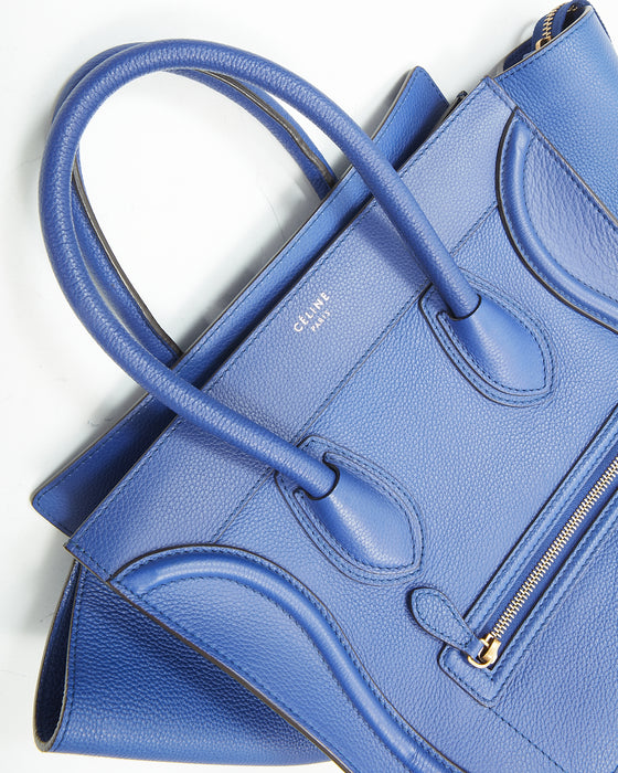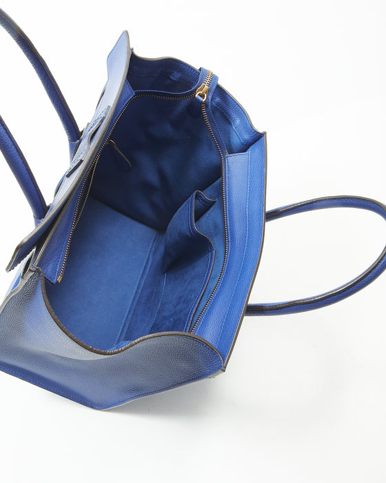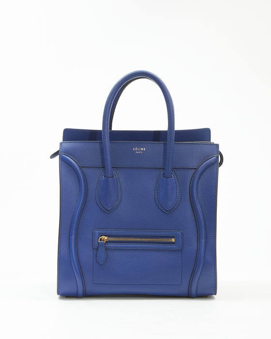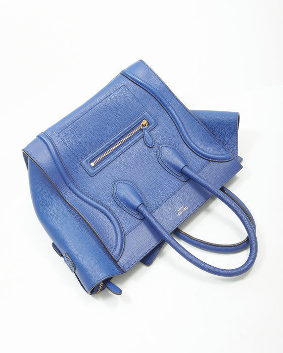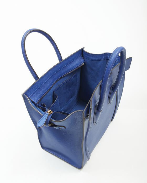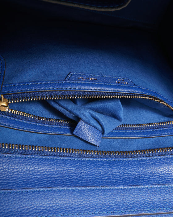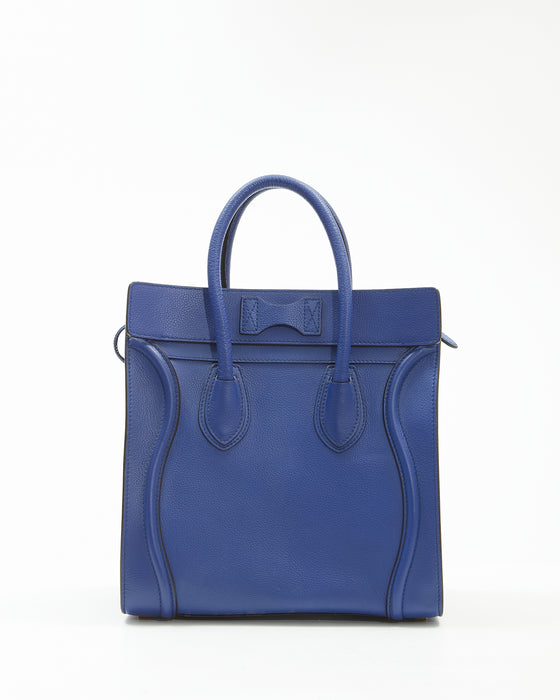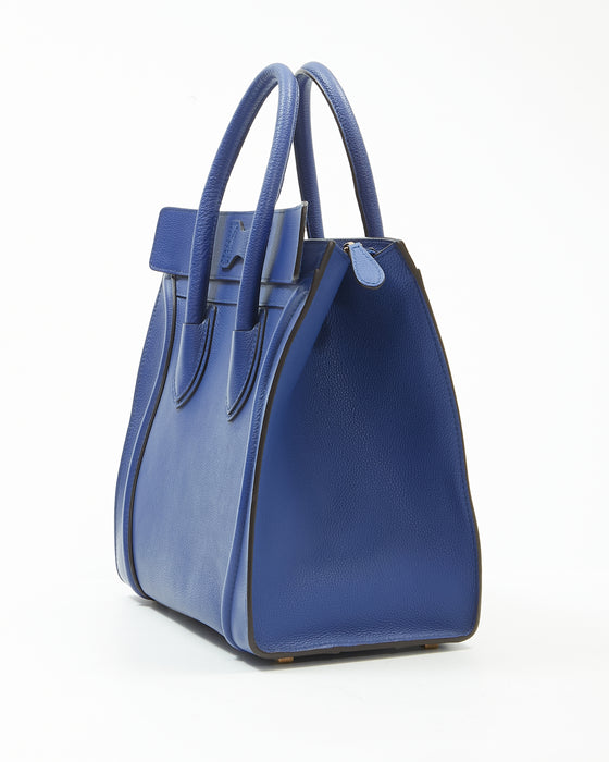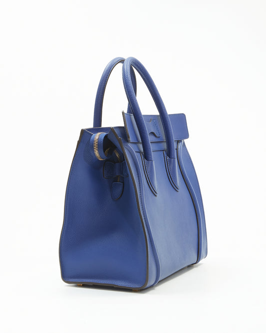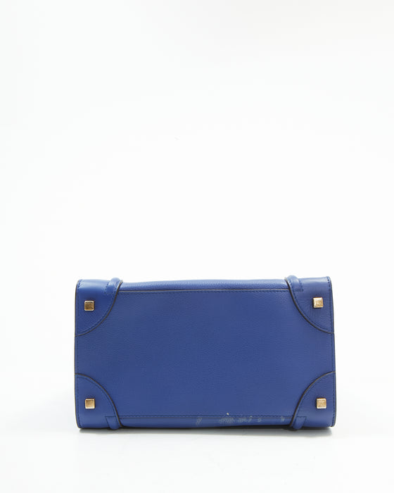 Royal Blue Leather Micro Luggage Tote Bag
