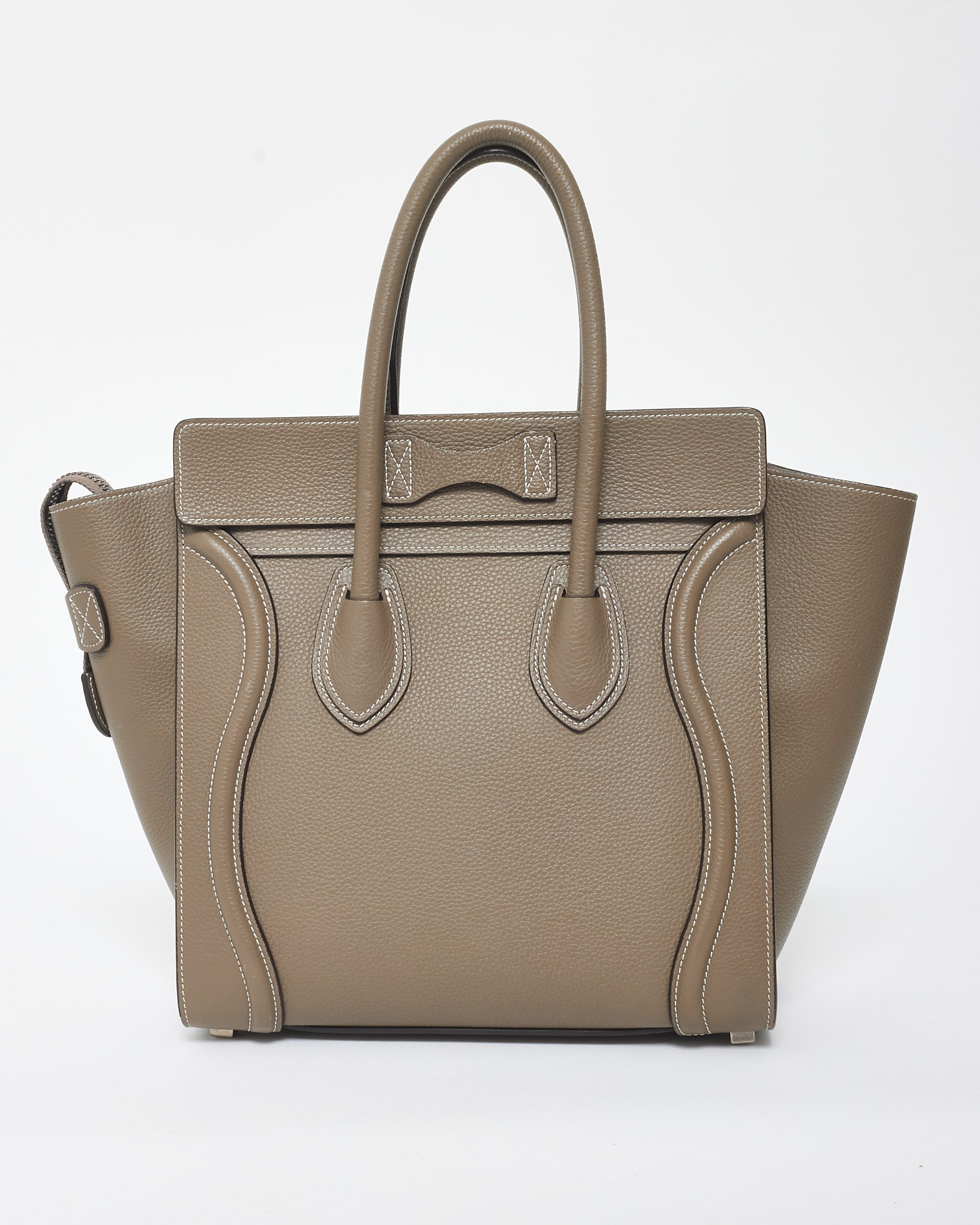 Explore Celine's exquisite collection of handbags, featuring this certified pre-owned Taupe (Souris) Leather Micro Luggage Tote. Embodying timeless elegance and modern sustainability, each piece, including favorites like this, is authenticated by Retyche. Discover sustainable luxury — shop our current treasures or find inspiration for your next coveted find.